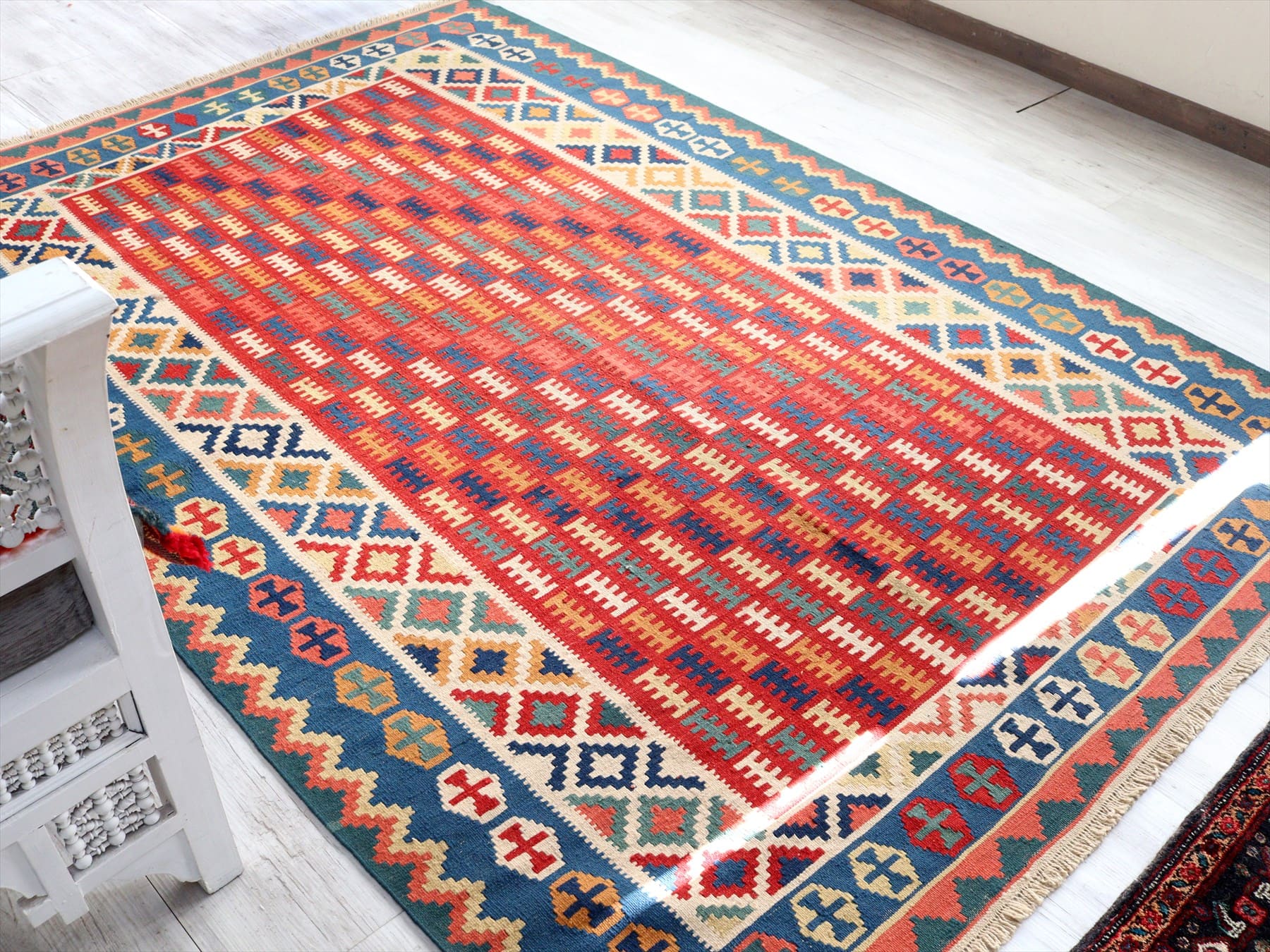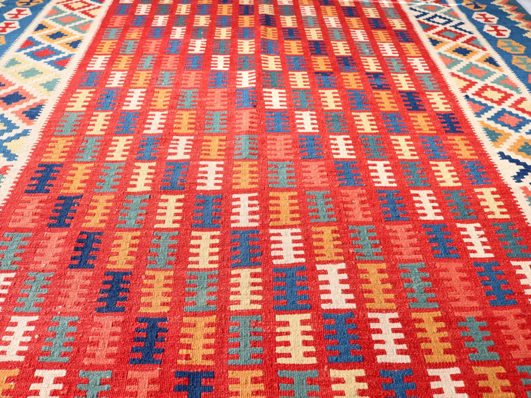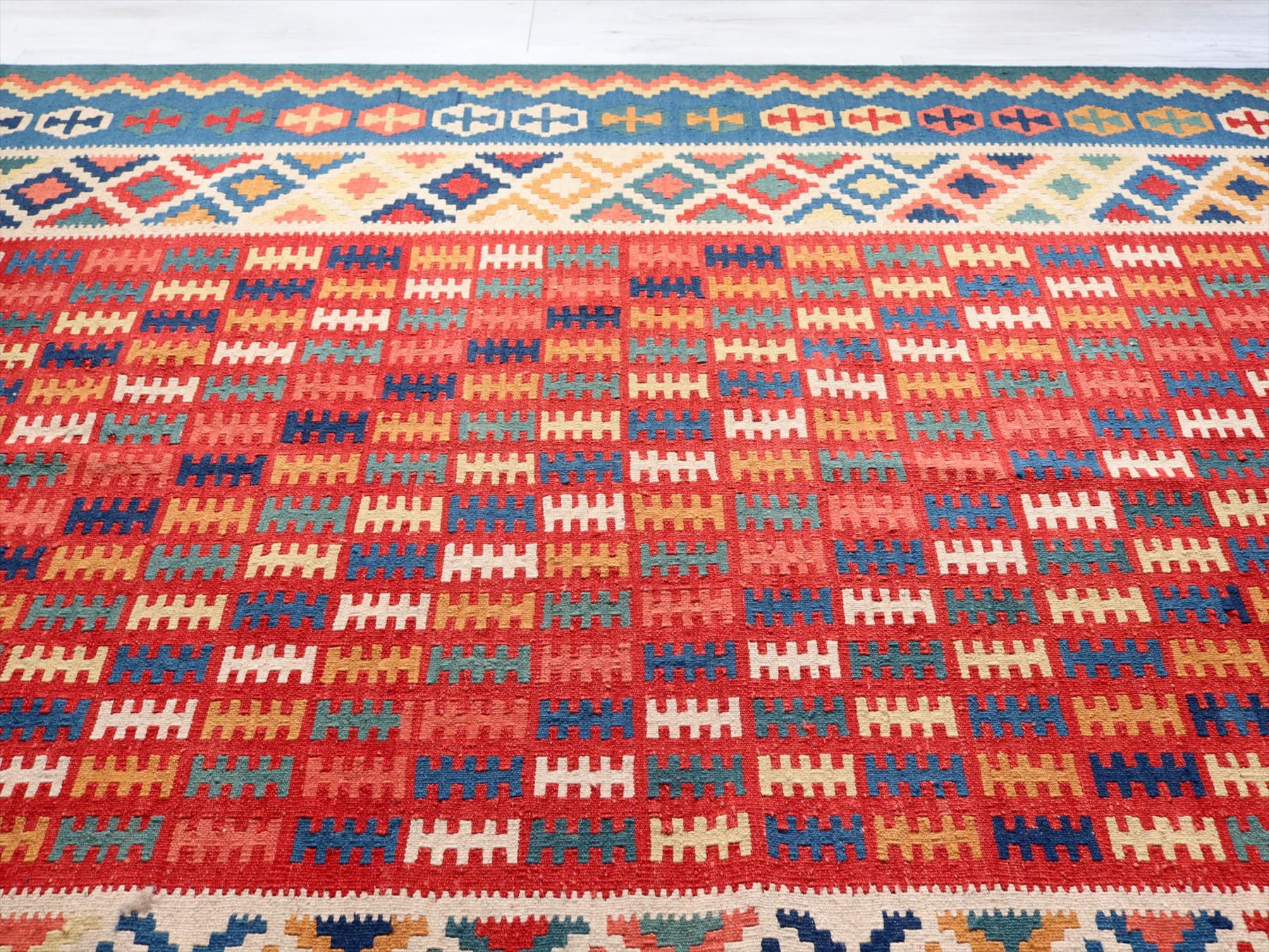 - キリム・カシュカイ族の手織りキリム234×157cm 小さなクシのモチーフ