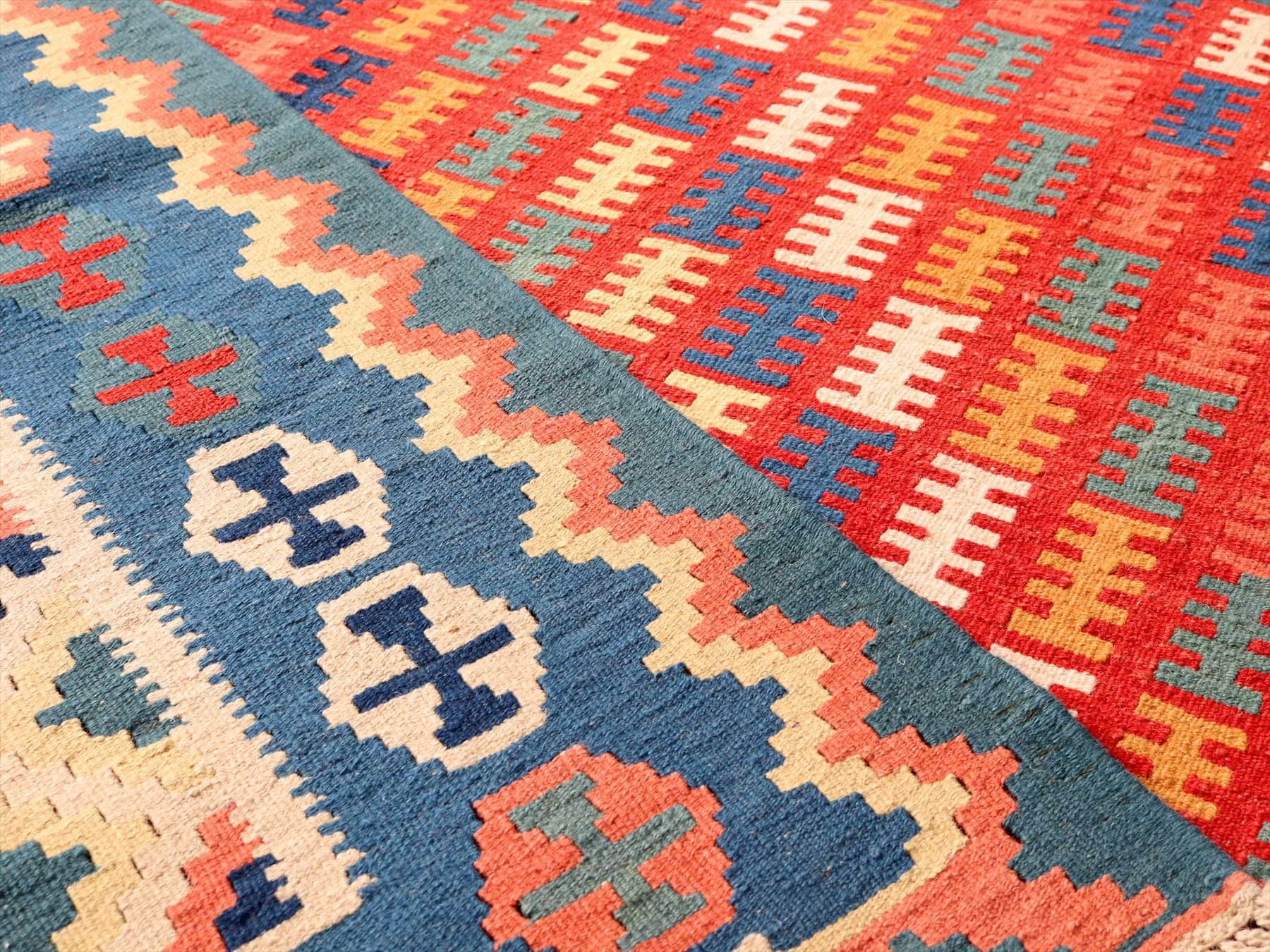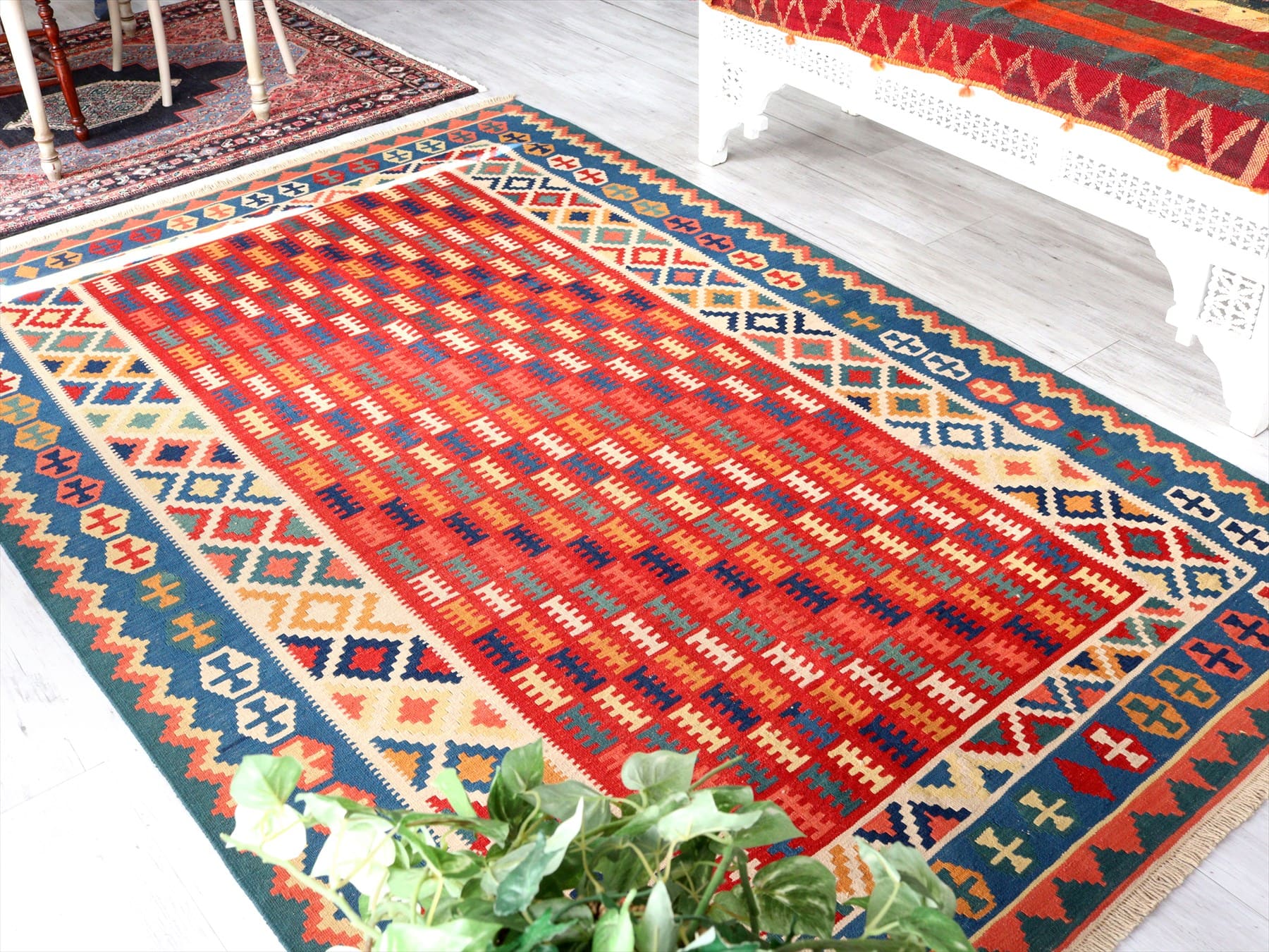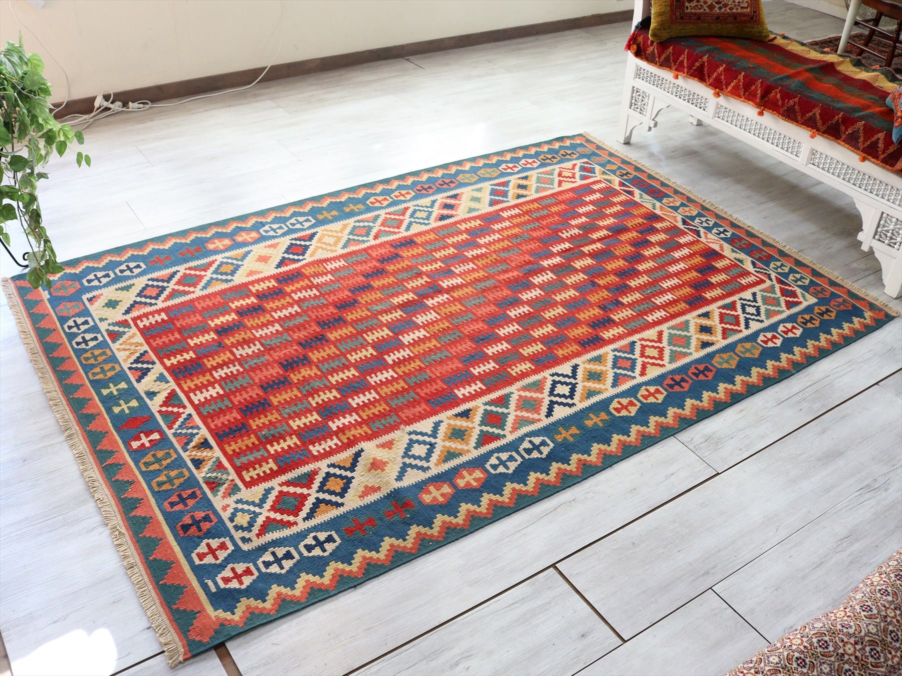 - キリム・カシュカイ族の手織りキリム234×157cm 小さなクシのモチーフ