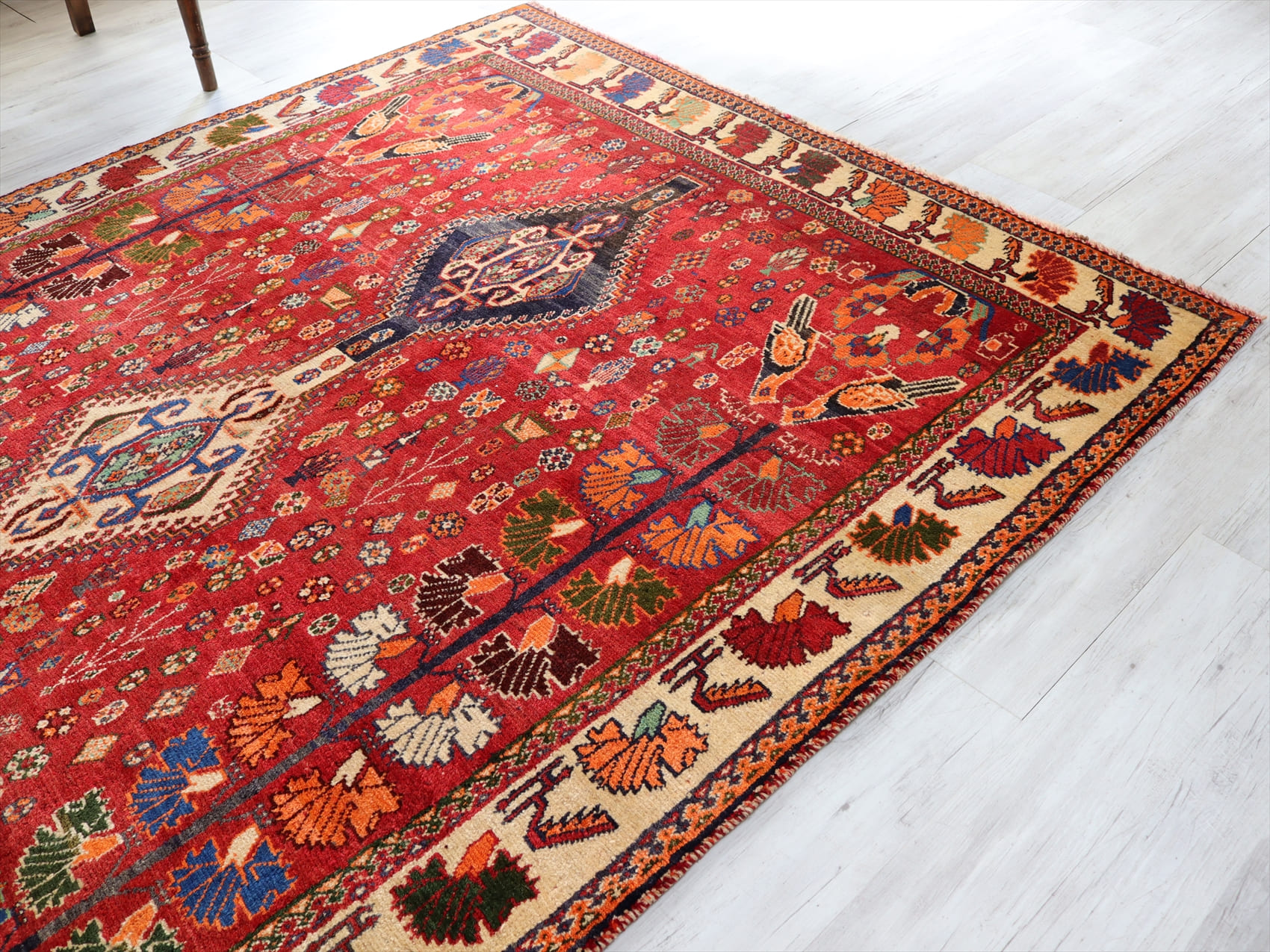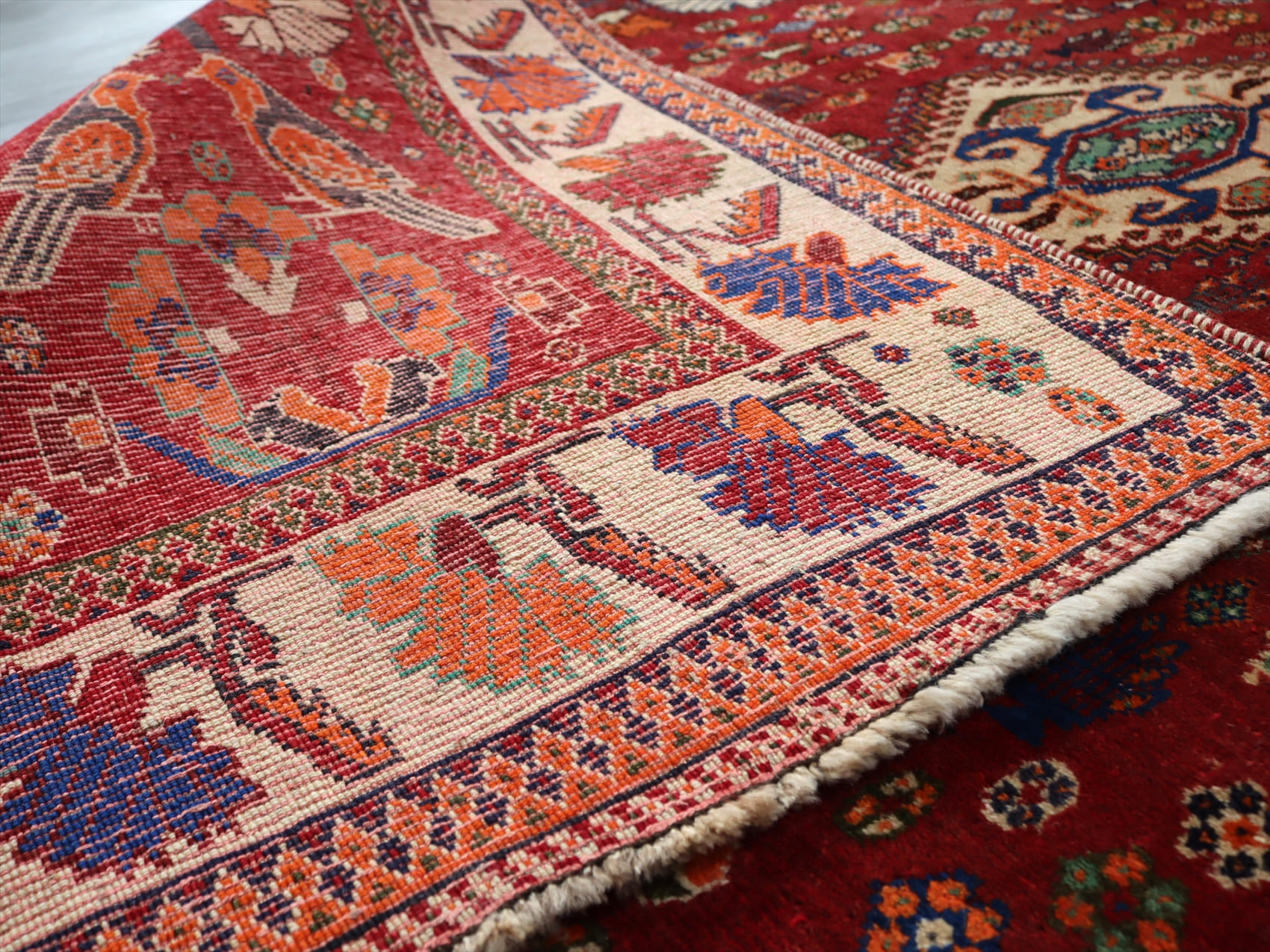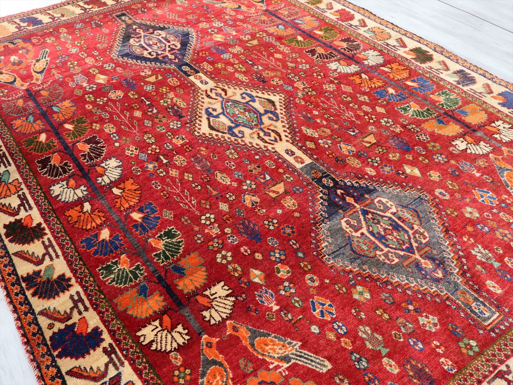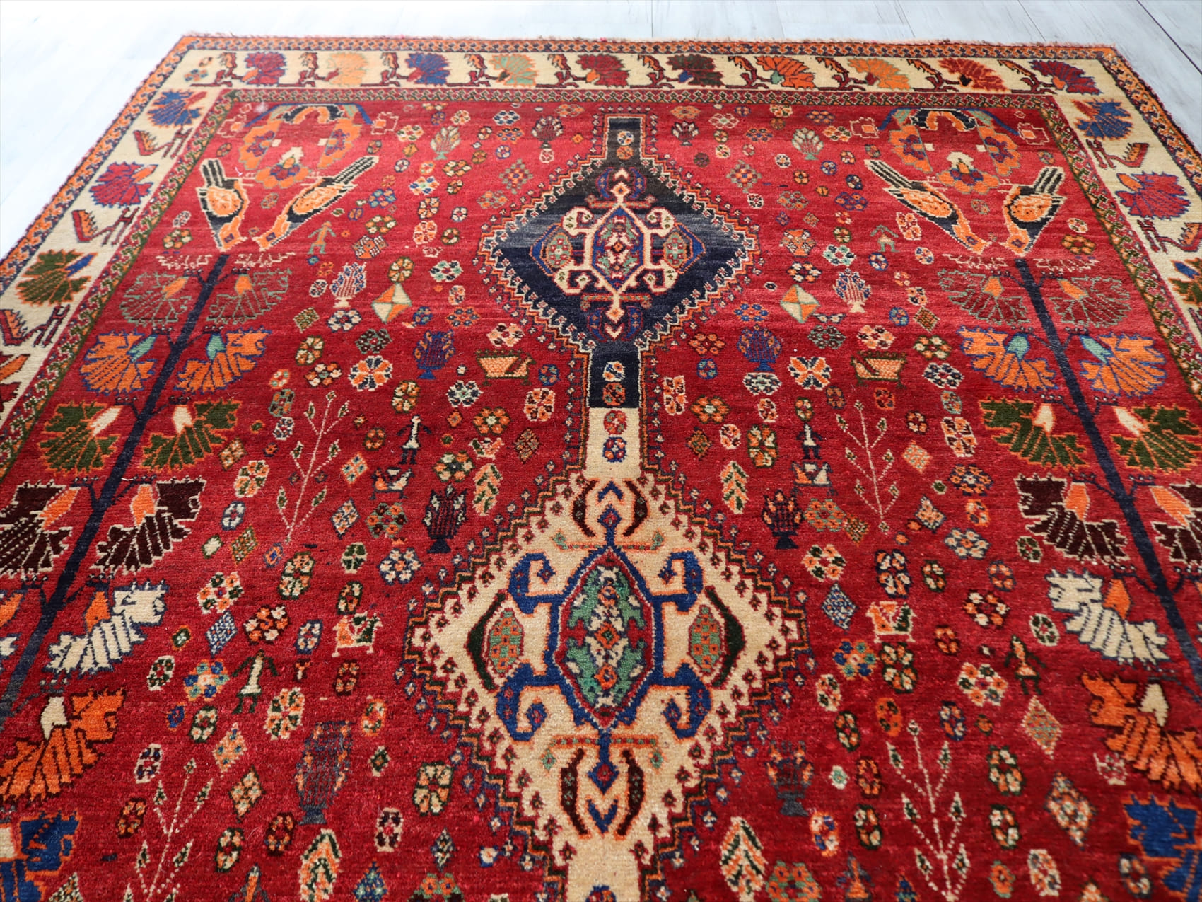 オールドギャッベ トライバルラグ Old Tribal rug, Shiraz, 247×164cm 3つのメダリオン 鳥と植物