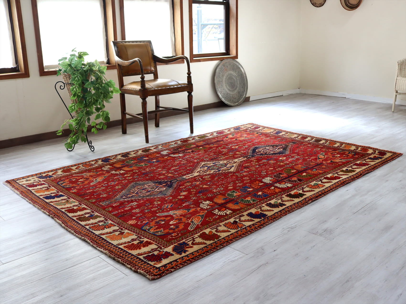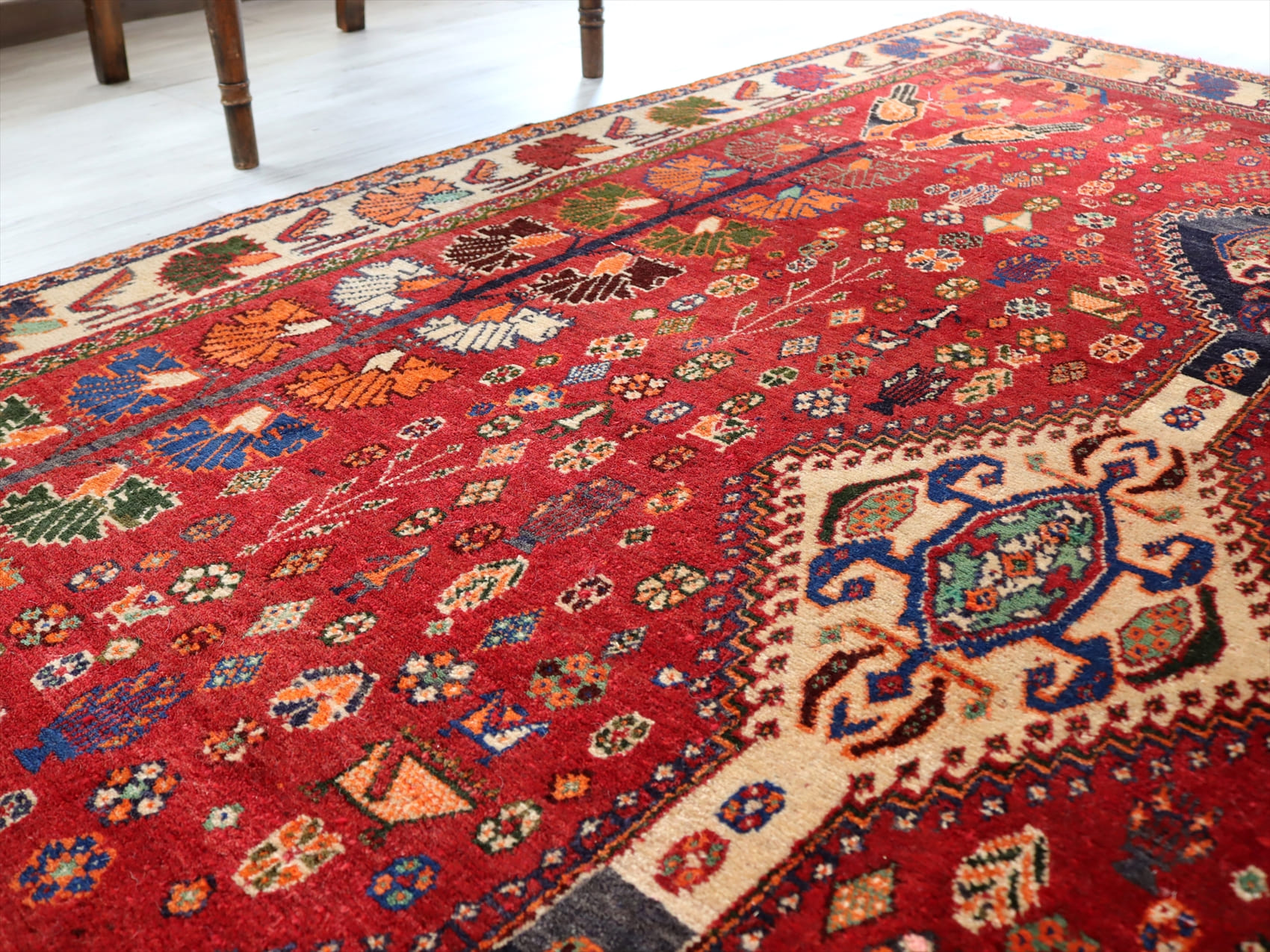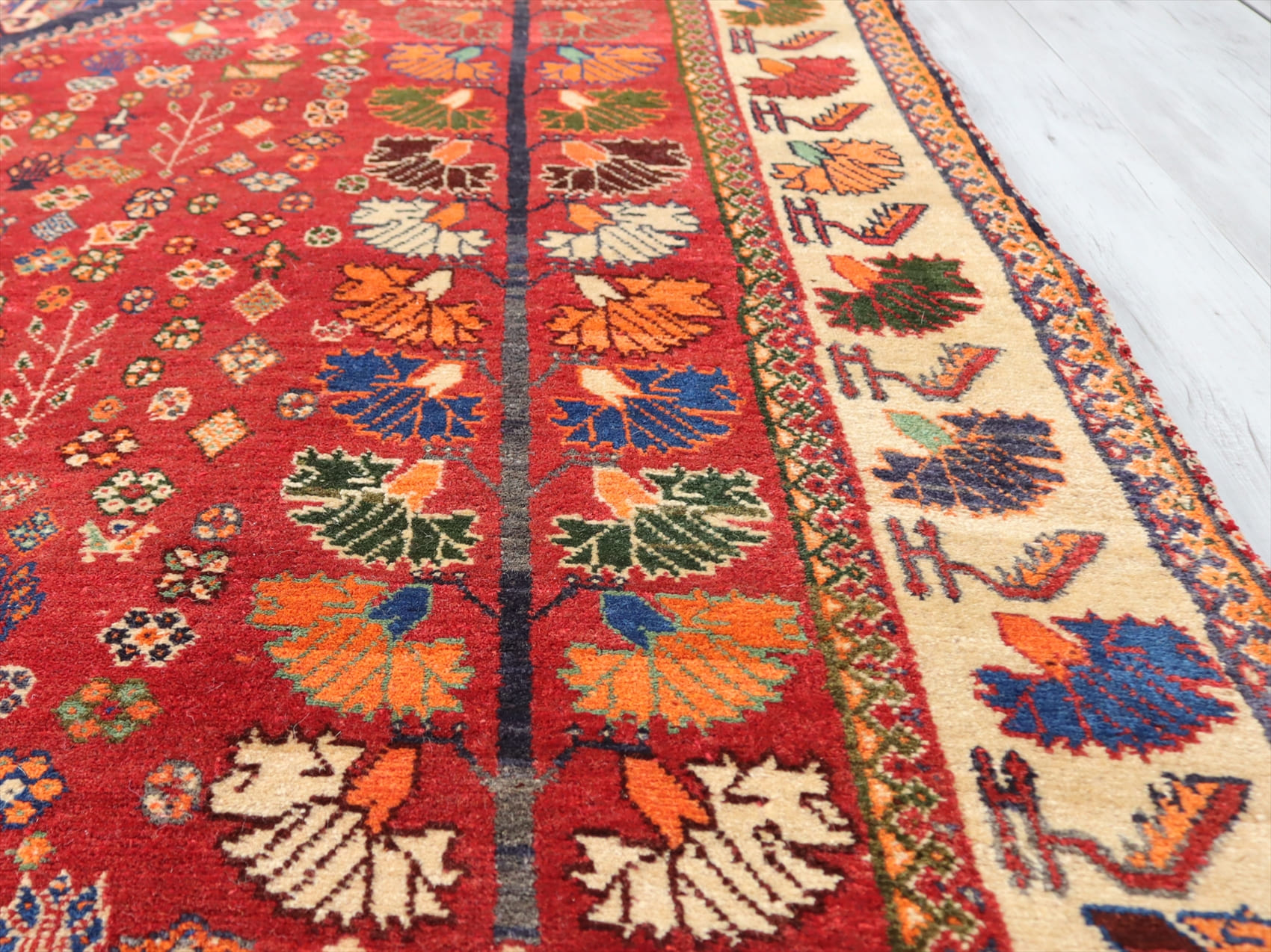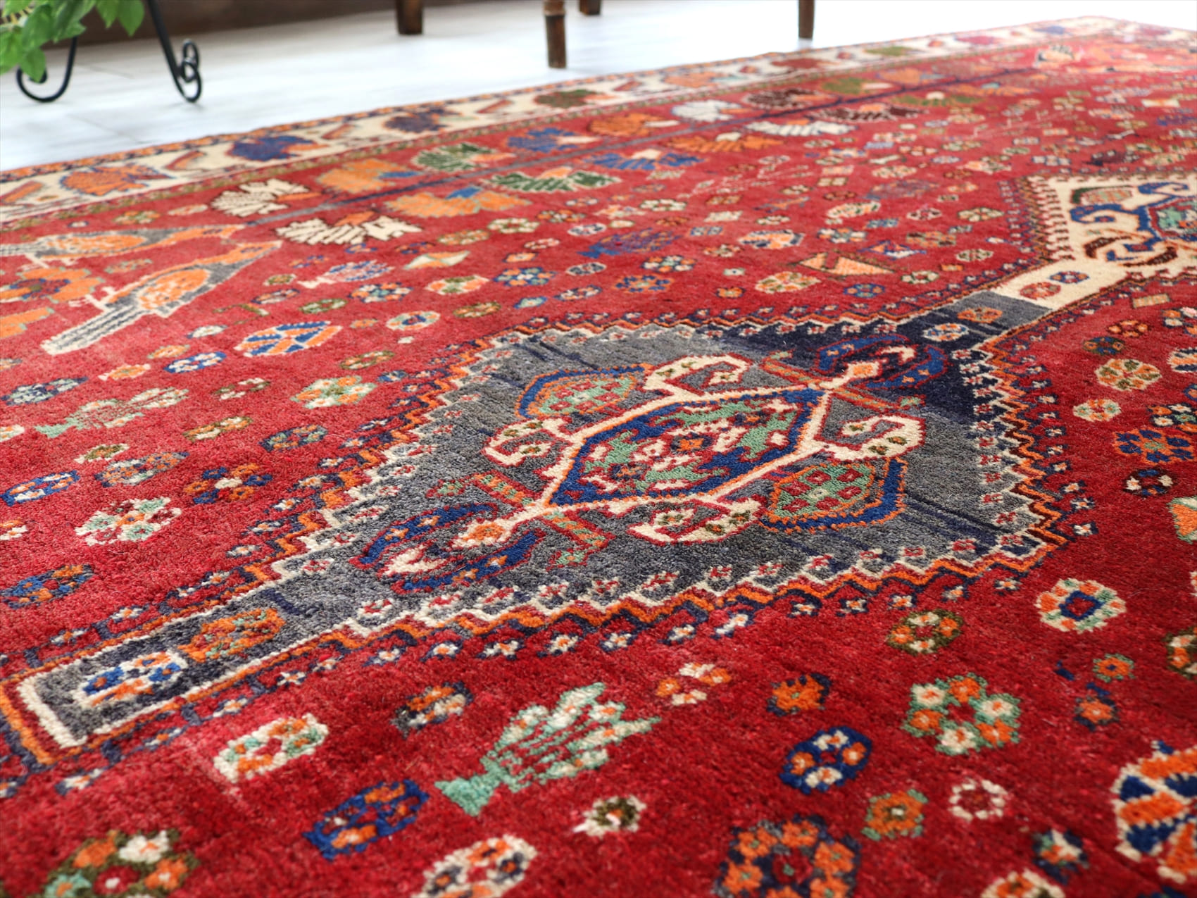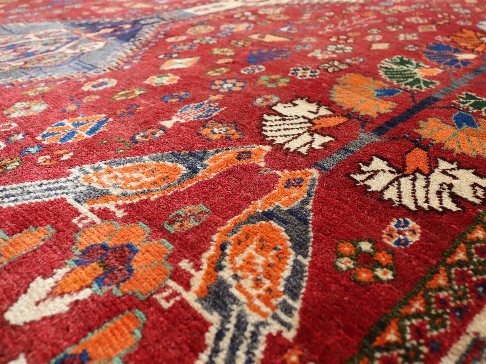オールドギャッベ トライバルラグ Old Tribal rug, Shiraz, 247×164cm 3つのメダリオン 鳥と植物