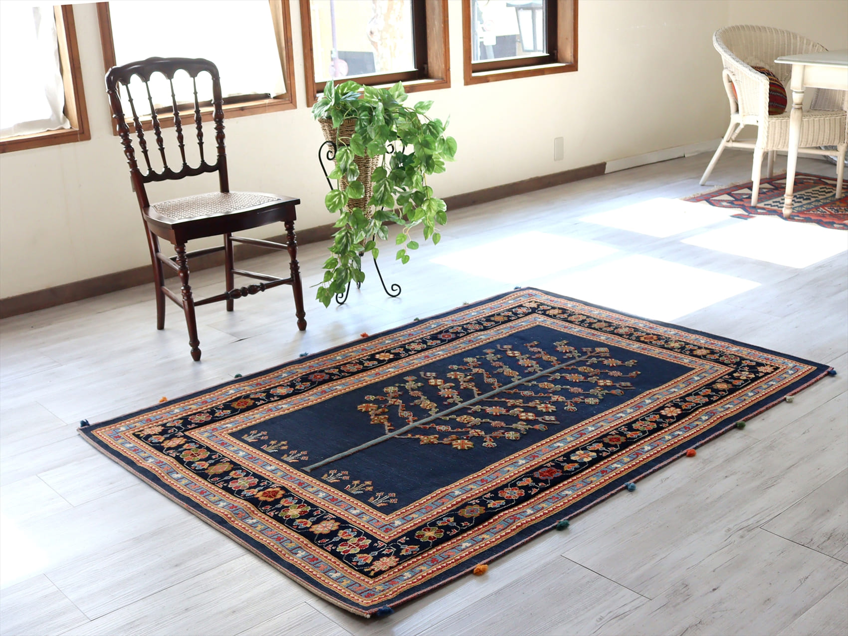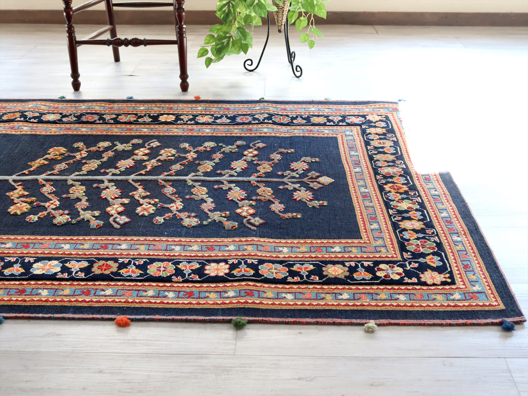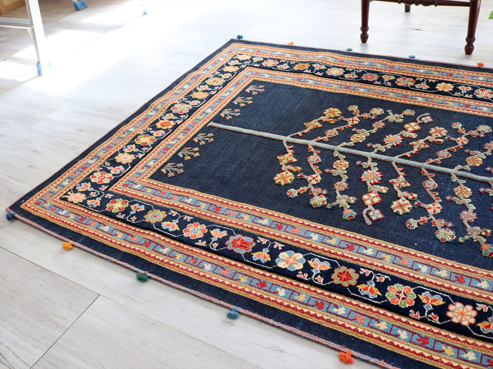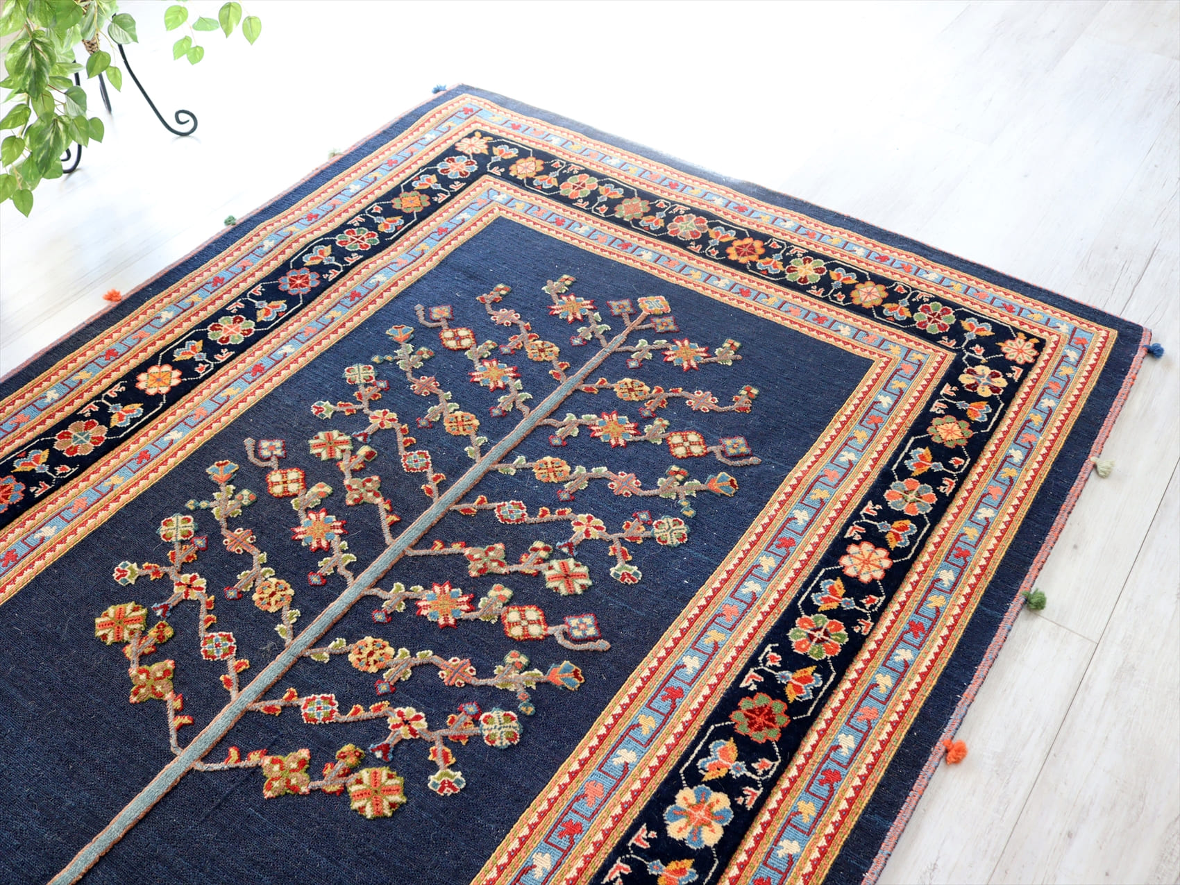 ゾランヴァリ社・バルーチスマック175×123cm 生命の樹と小花 ネイビー