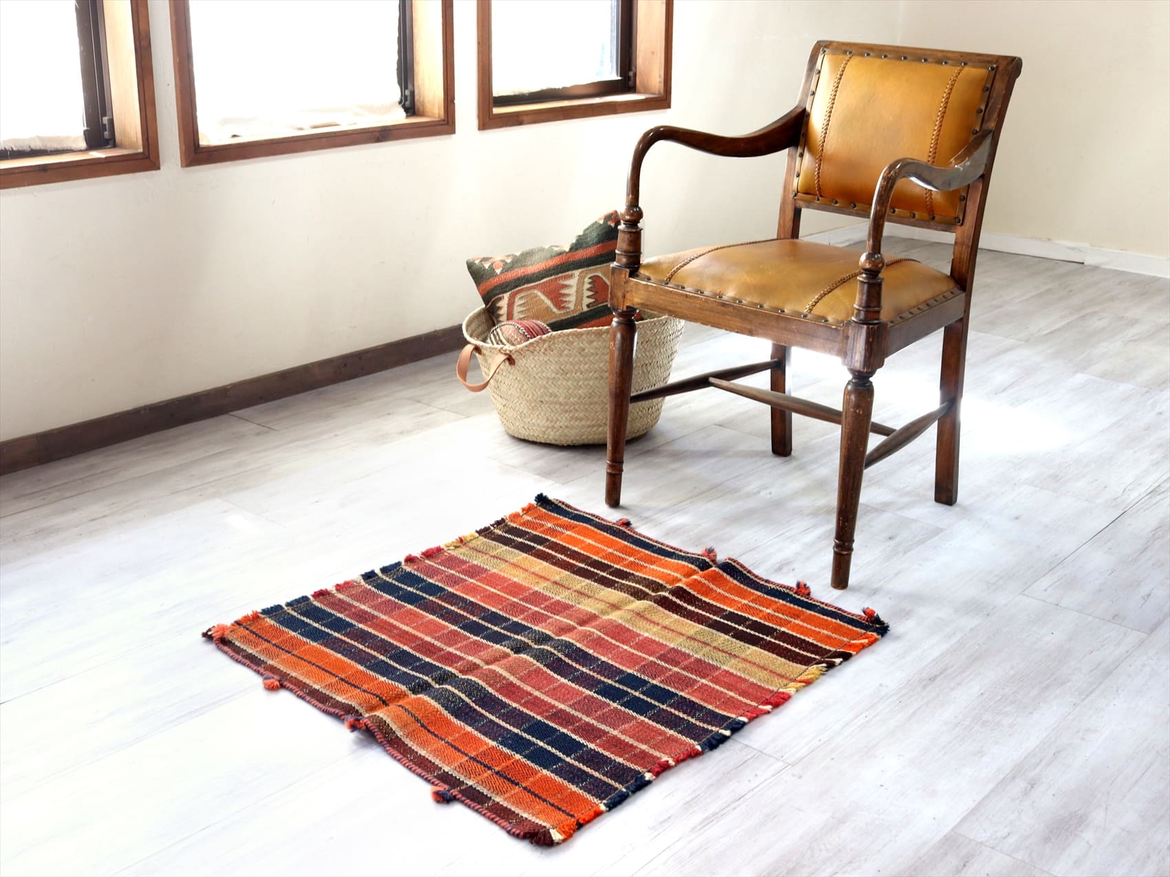 - オールドジャジム・オールドキリム72×80cm チェック柄