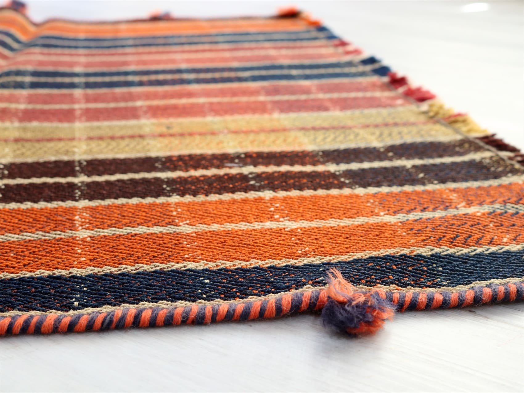 | カシュカイ族の織るキリムは一般的にトルコキリムより厚みがありがっちりとした質感です。織り地は厚みがあり、ぎゅっと目が詰まって、固くしっかりとしています。 |