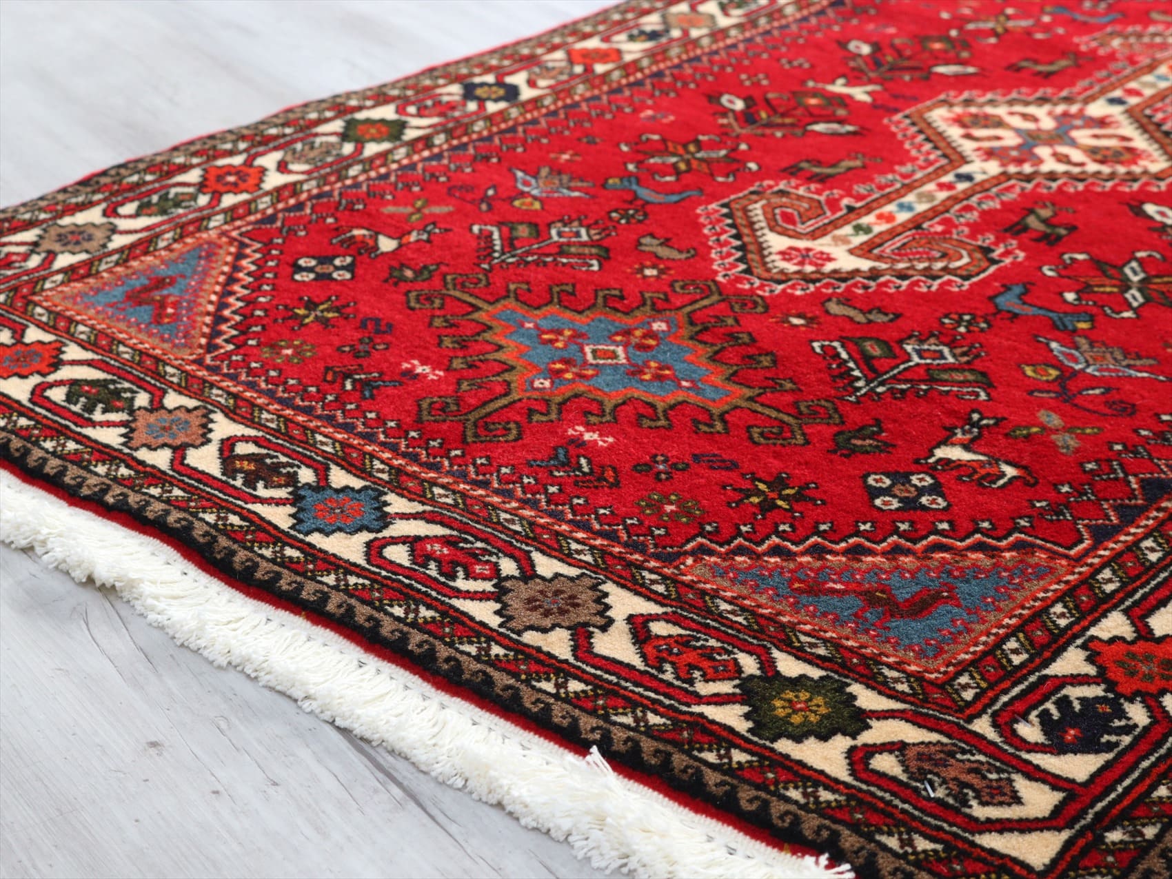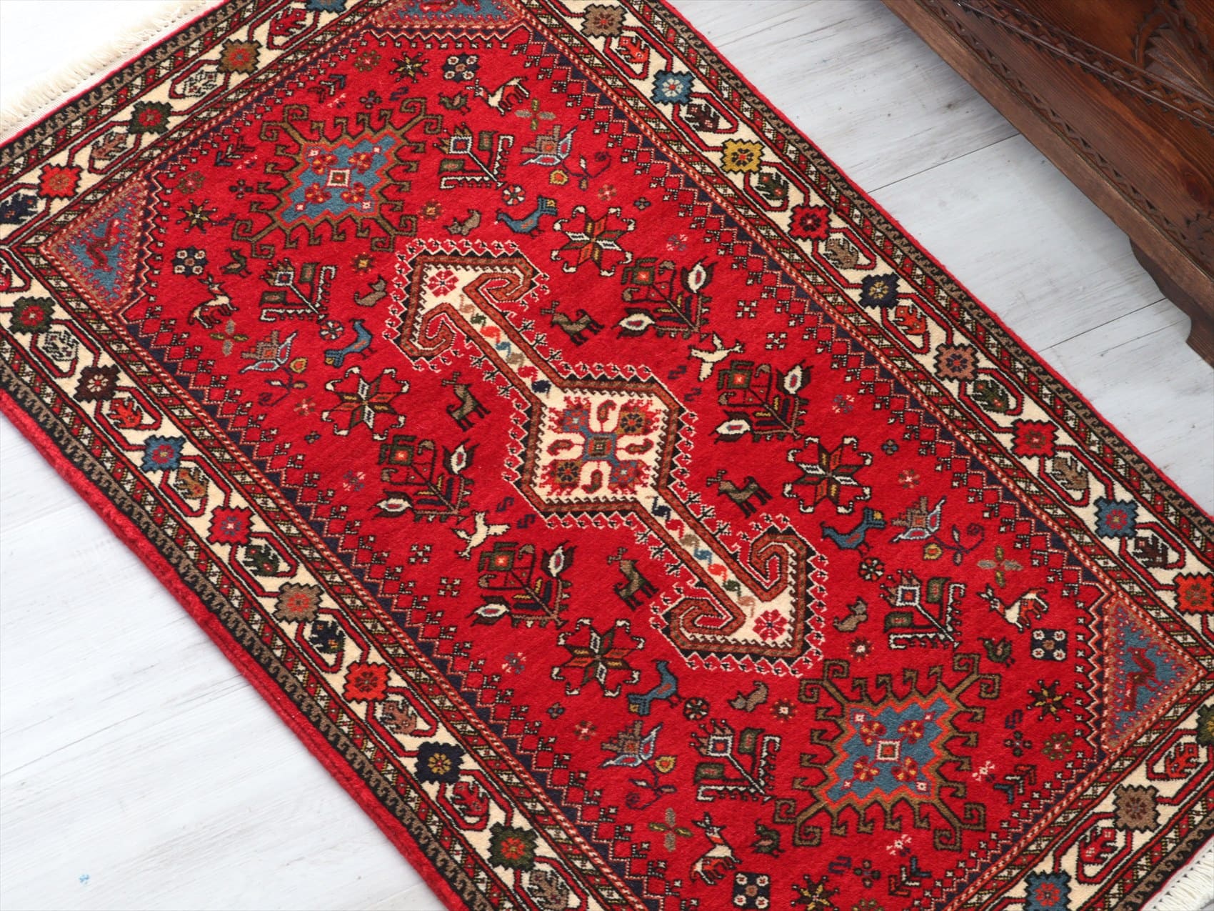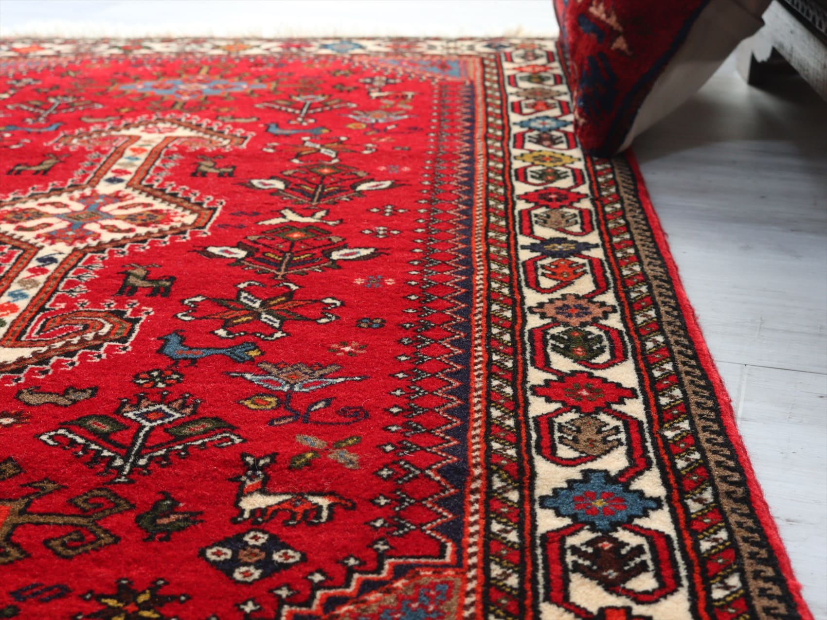 - 部族絨毯/トライバルラグ イラン南部126×80cm ドラゴンのモチーフと小さな動植物