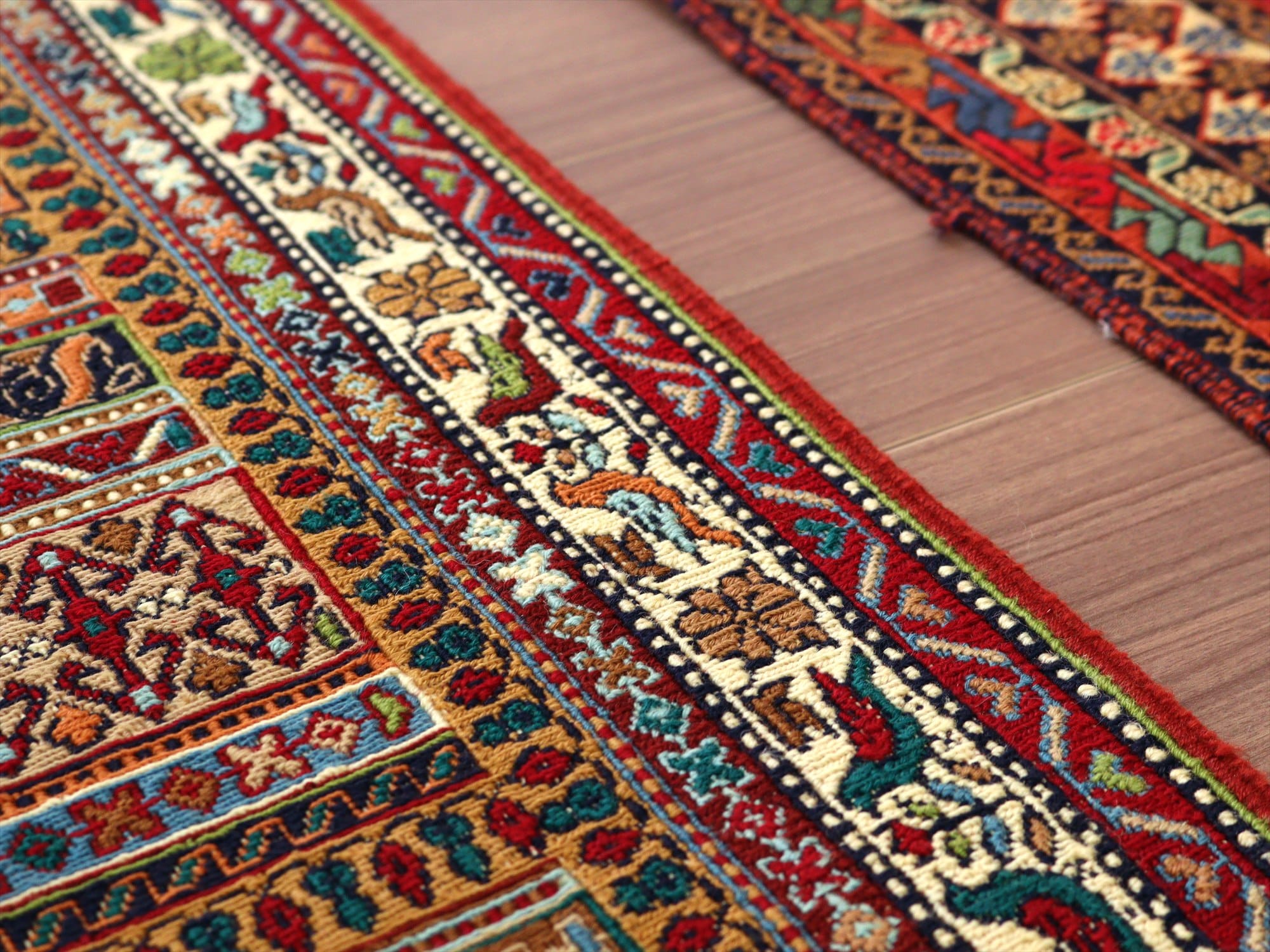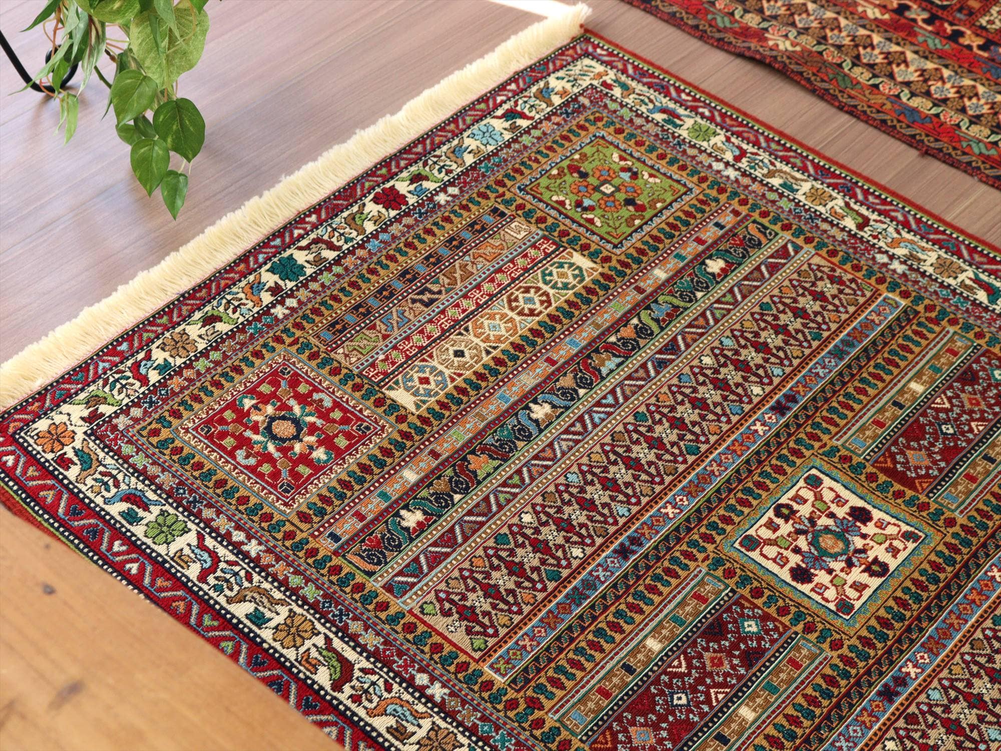 | がっしりと目のつまった織り地。全体の厚みは6-7mm前後で、平織りのキリムとしては厚みがあります。 |
