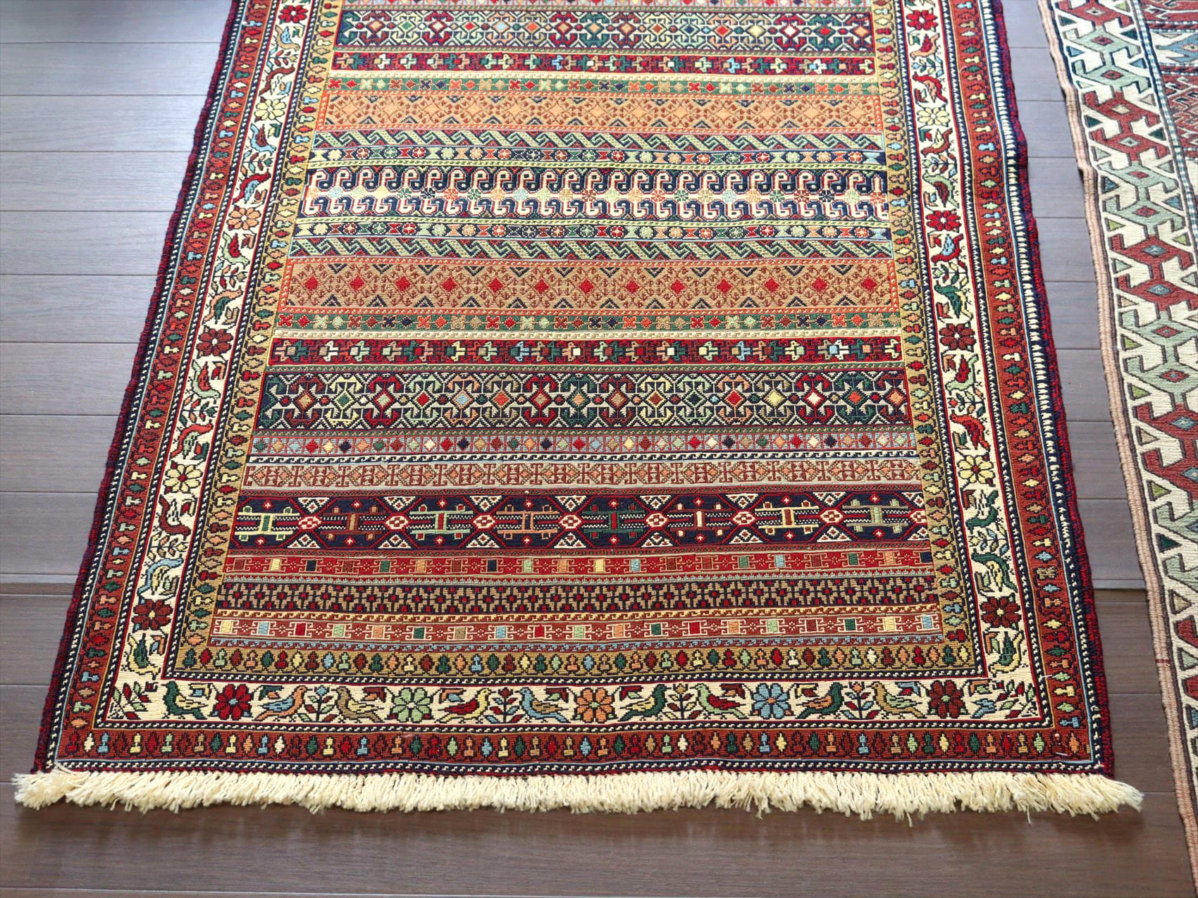 スマックキリム・シルジャン135×88cm ラフラ・幾何学模様のボーダー 刺繍のような細かな織り