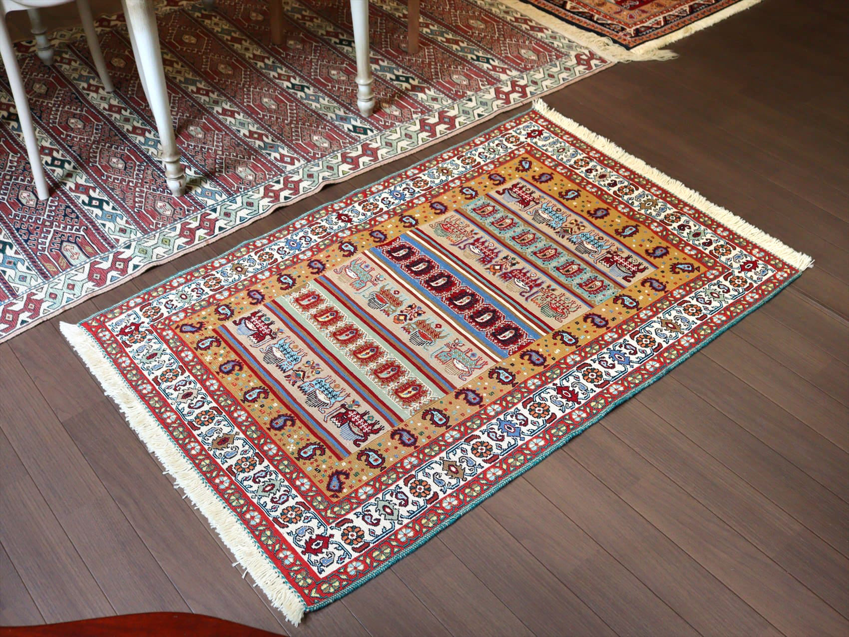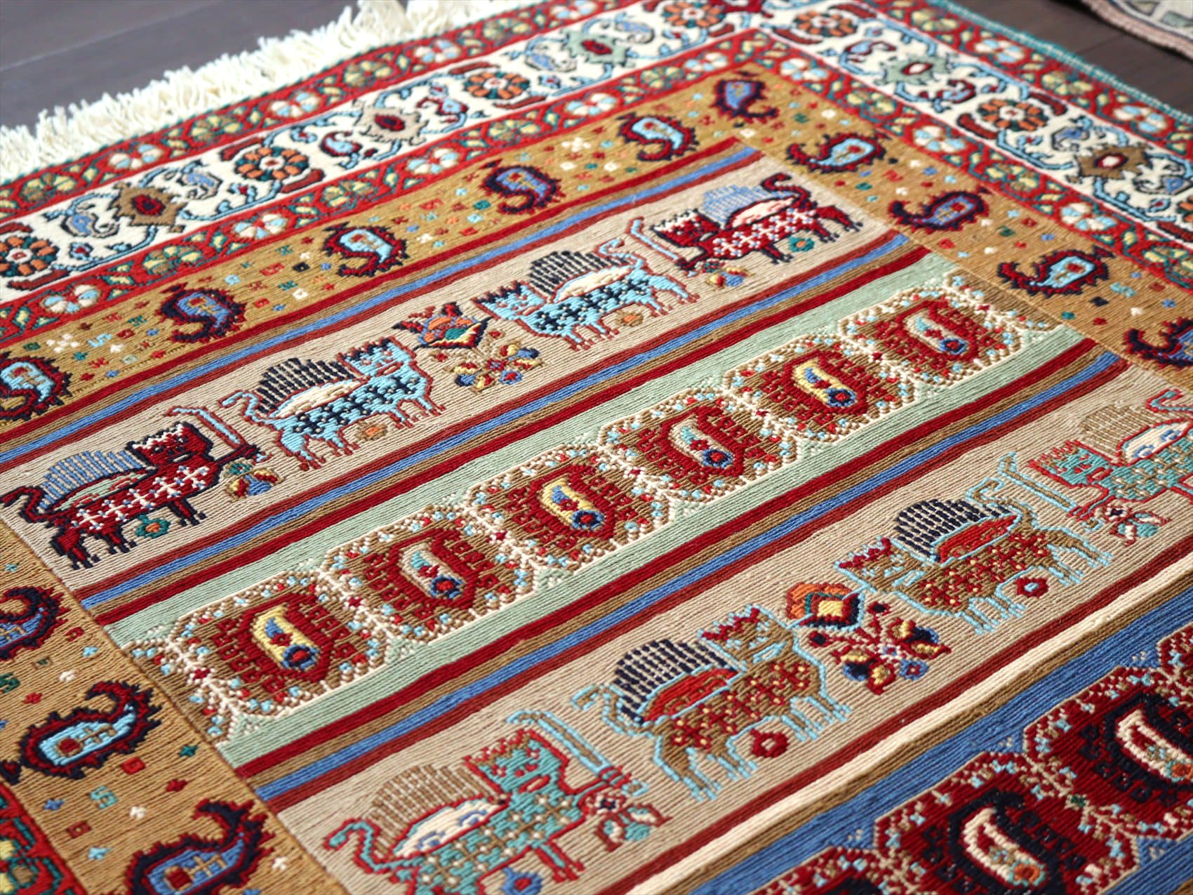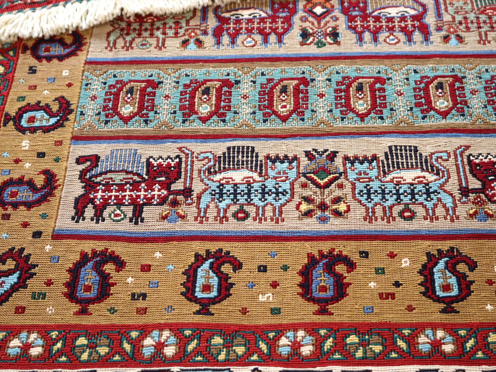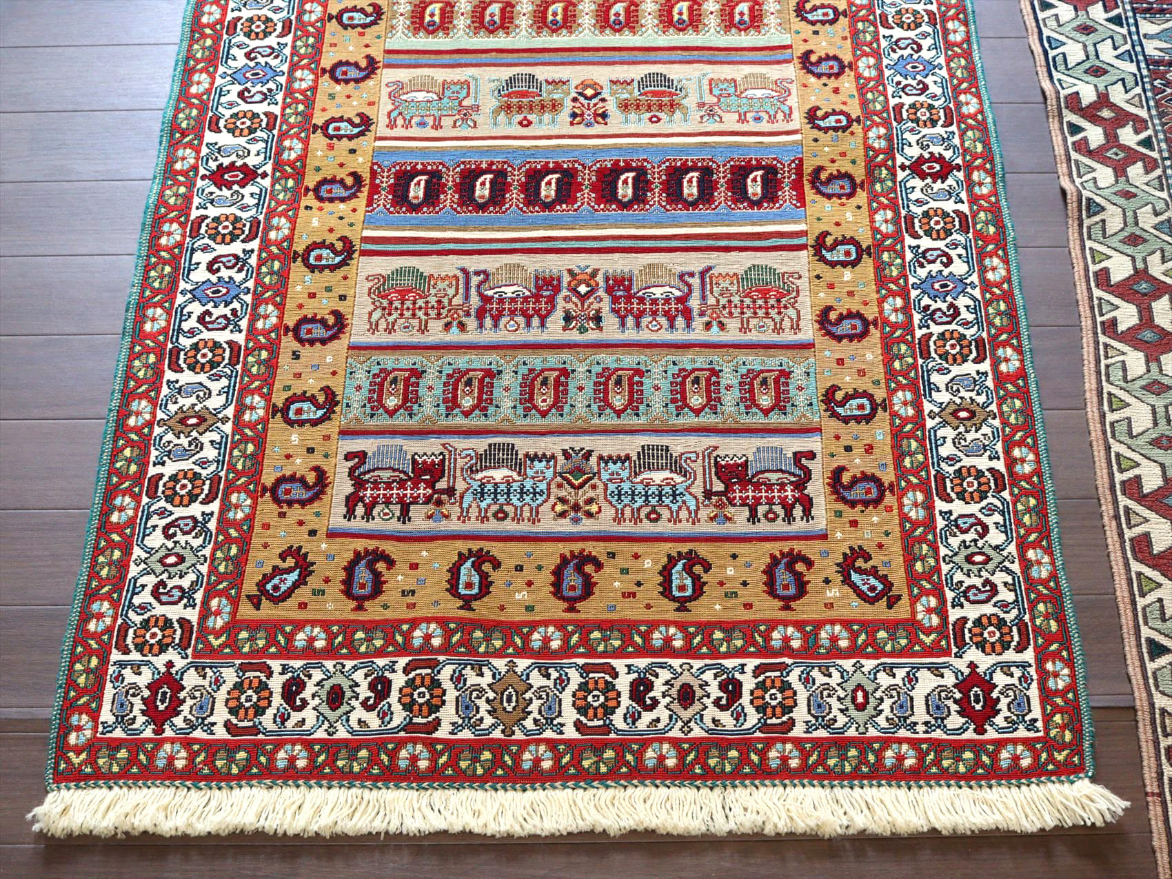 スマックキリム・シルジャン121×82cm サーベルを持ったライオン 刺繍のような細かな織り