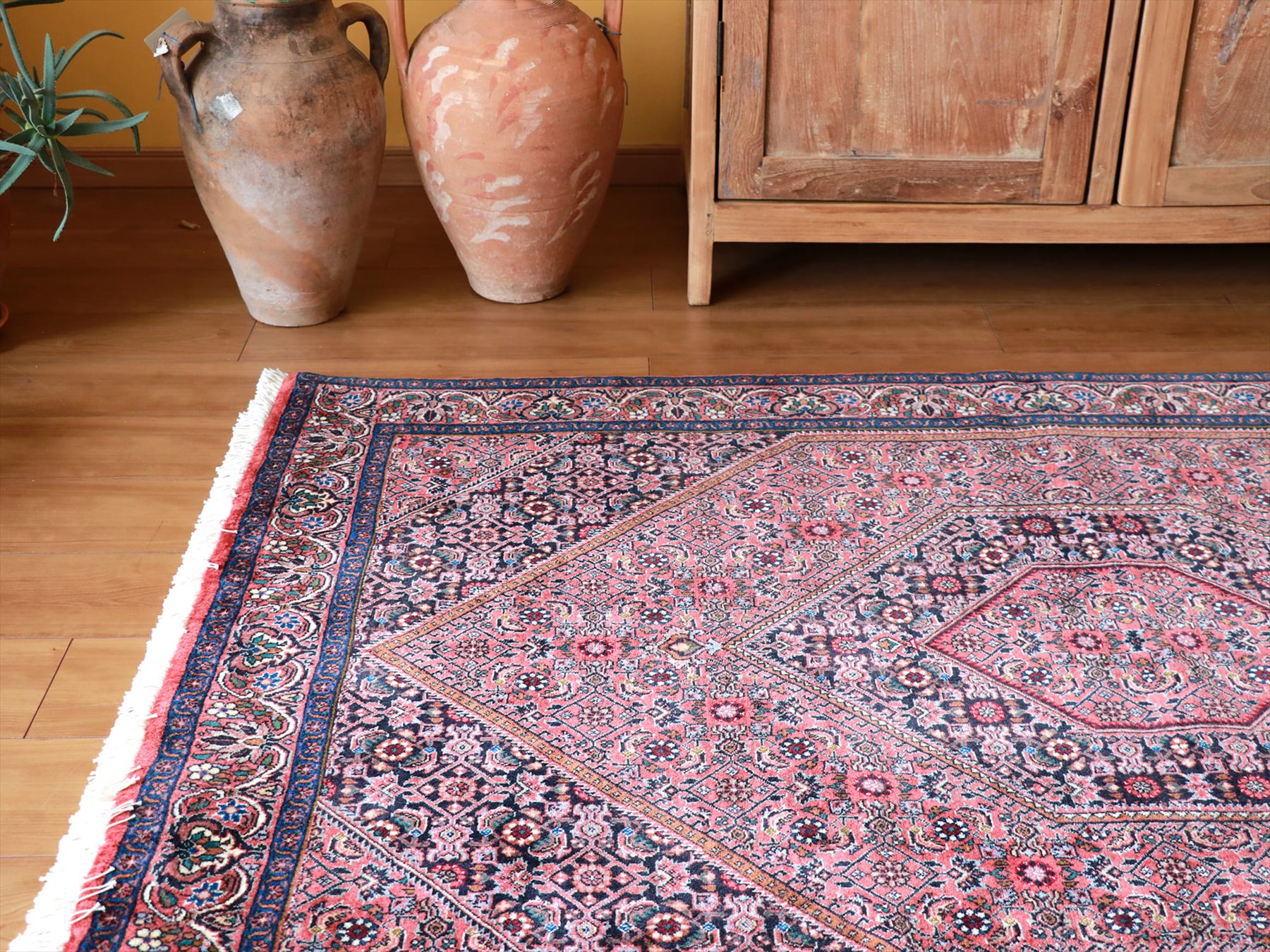 ペルシャ絨毯 ビジャール/六角メダリオン168×109cm ローズピンクとネイビーブルー