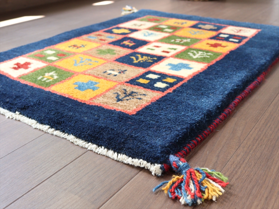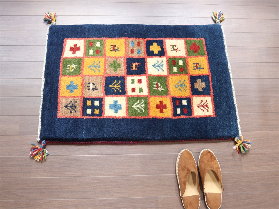 Key:ギャッベ, イラン, シラーズ, 手織り, 一点もの, 草木染, 玄関マット, バザールギャッベ, 厚手, 幾何学, ネイビー, ブルー