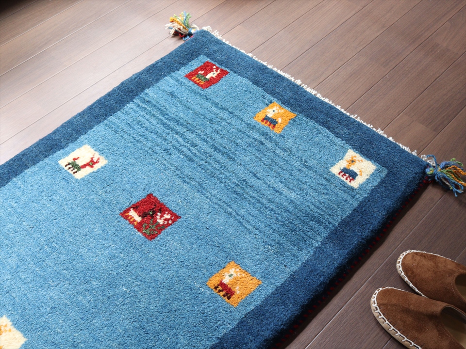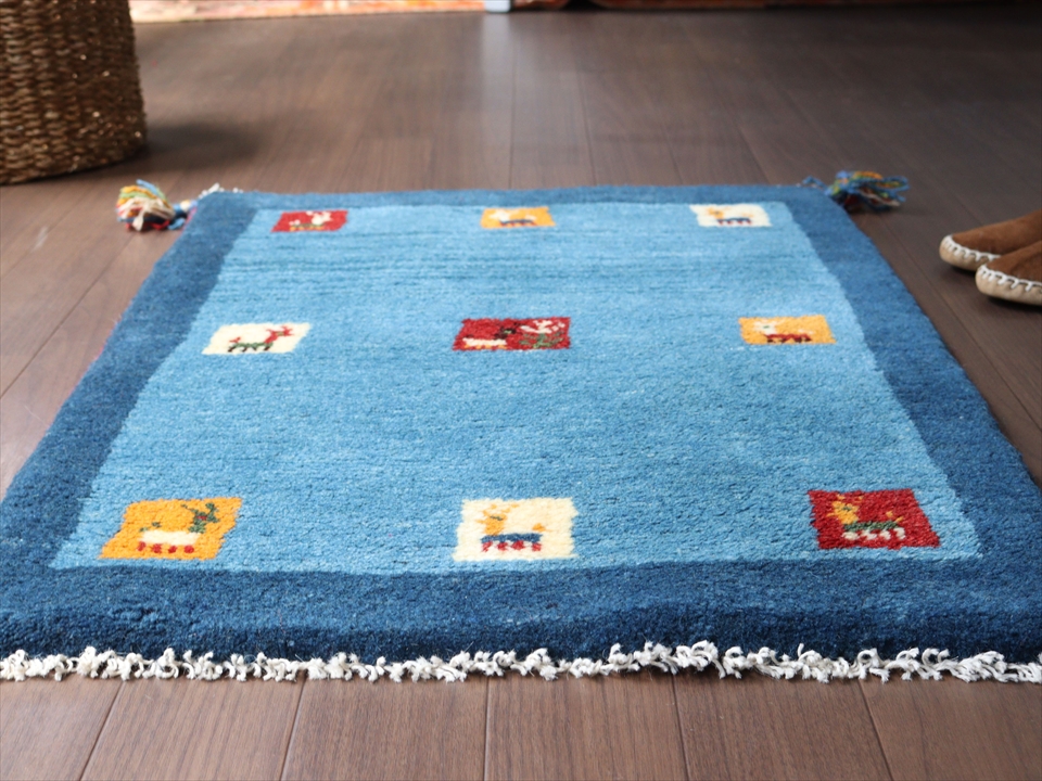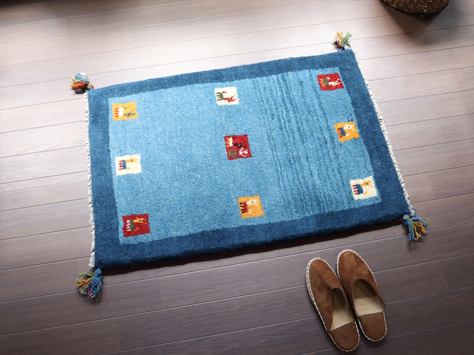 Key:ギャッベ, イラン, シラーズ, 手織り, 一点もの, 草木染, 玄関マット, バザールギャッベ, ライトブルー