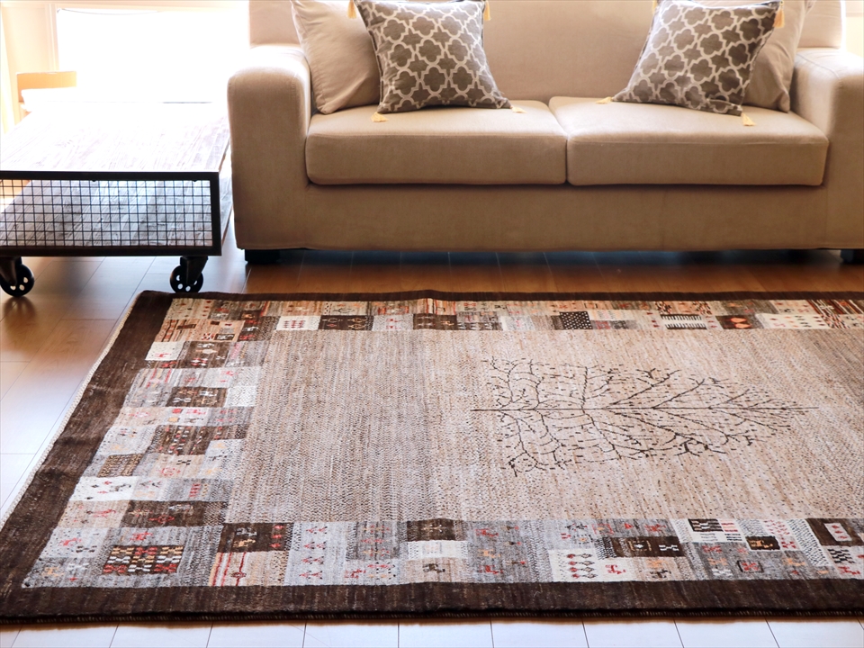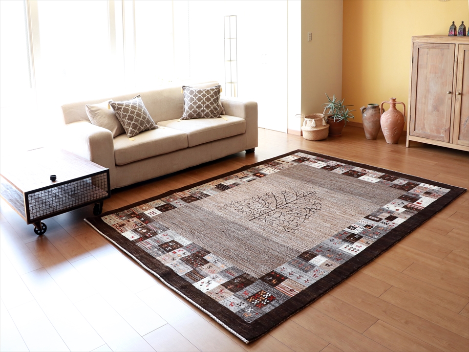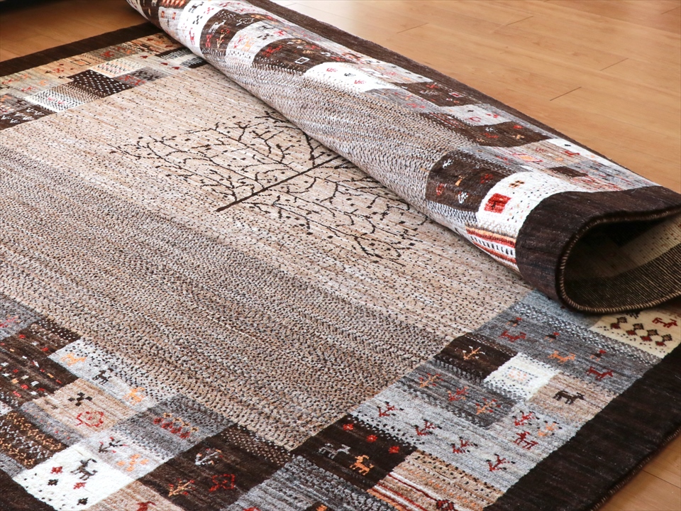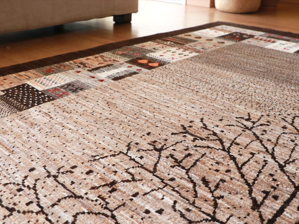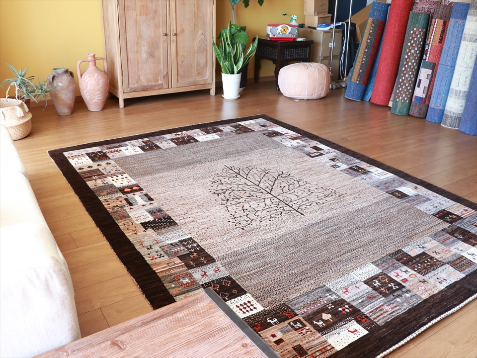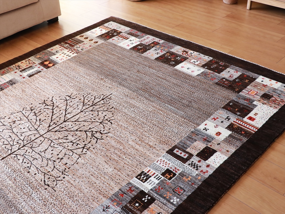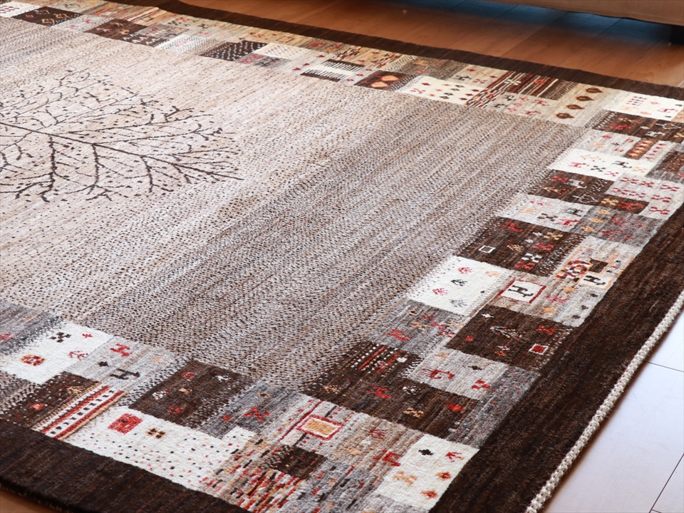 ギャッベ Gabbeh, Nowbaft 生命の樹245×183cm ナチュラルカラーのモノトーン