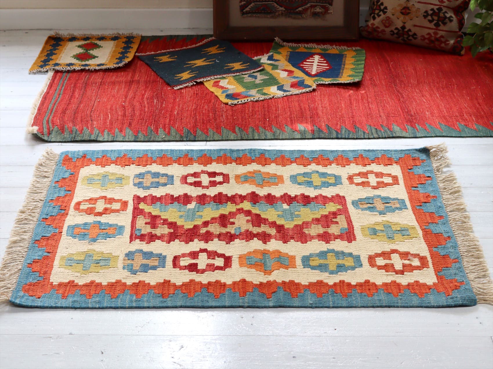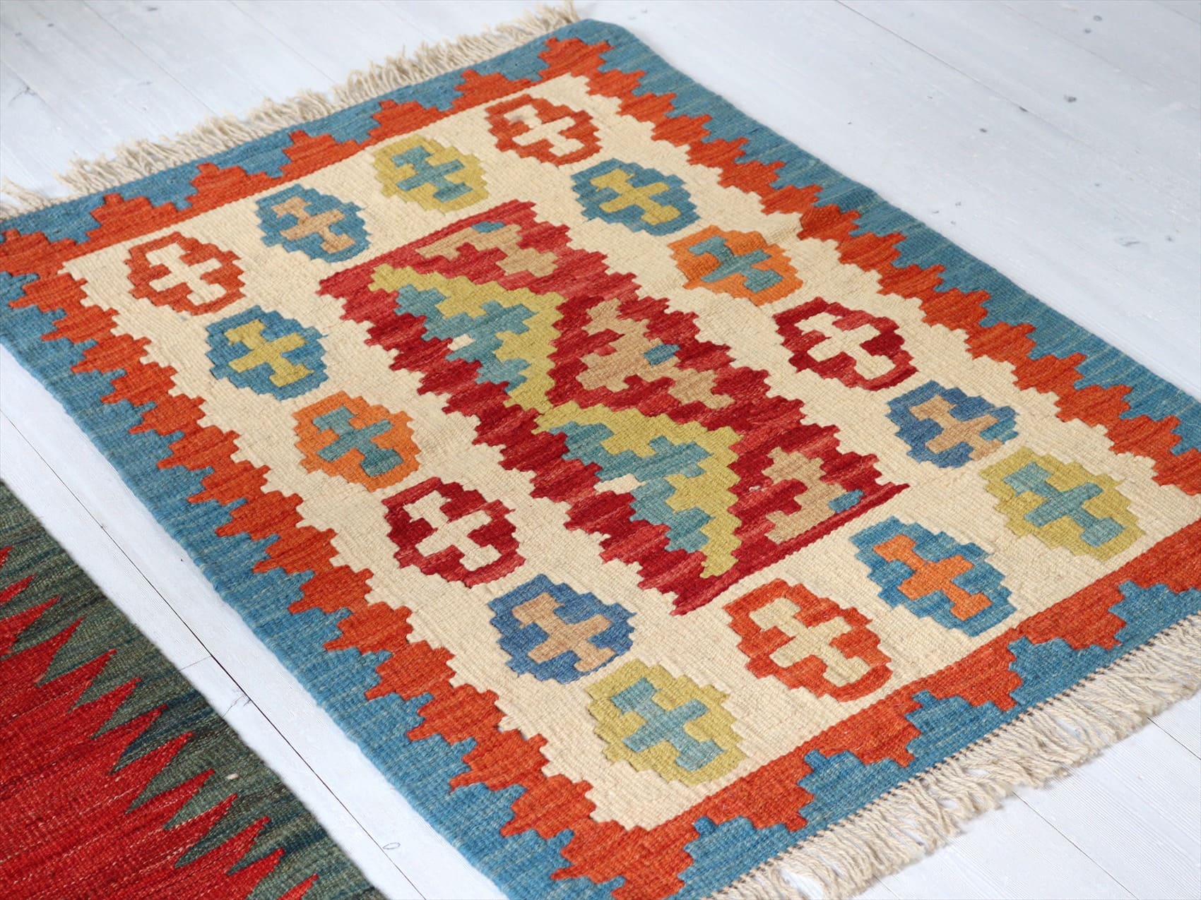 - カシュカイ族の手織りキリム94×66cm 発色のよいカラフルモチーフ