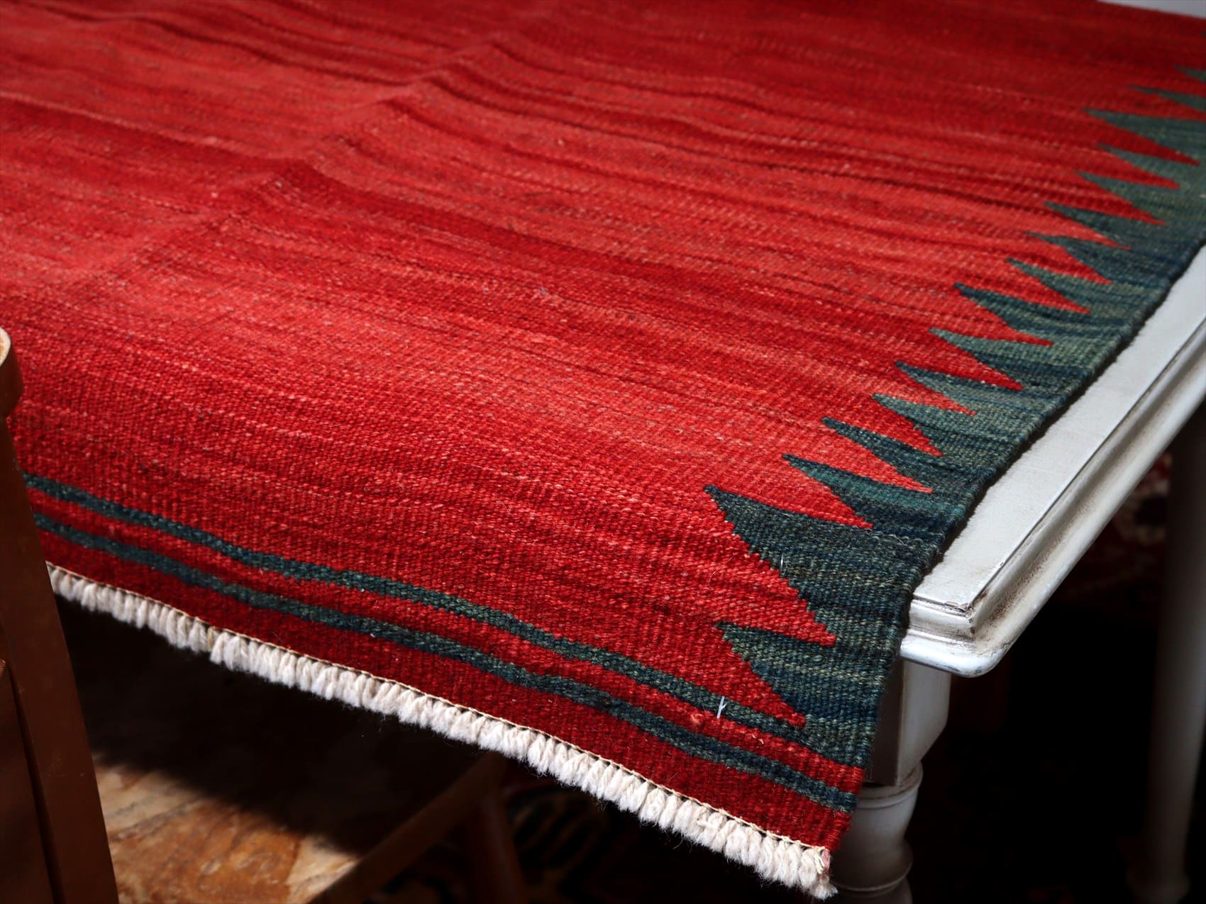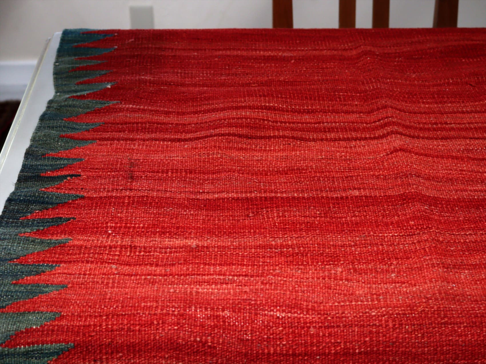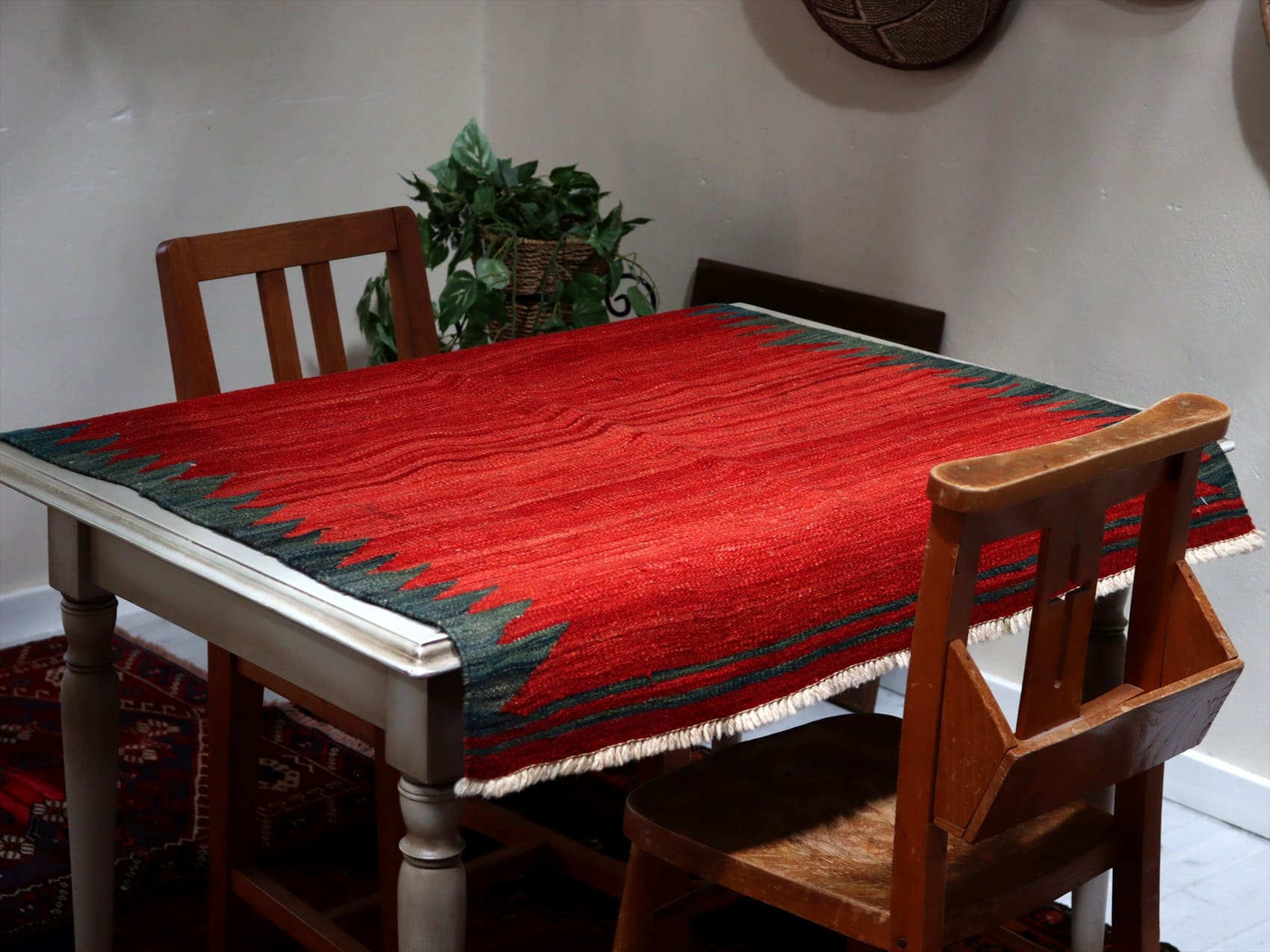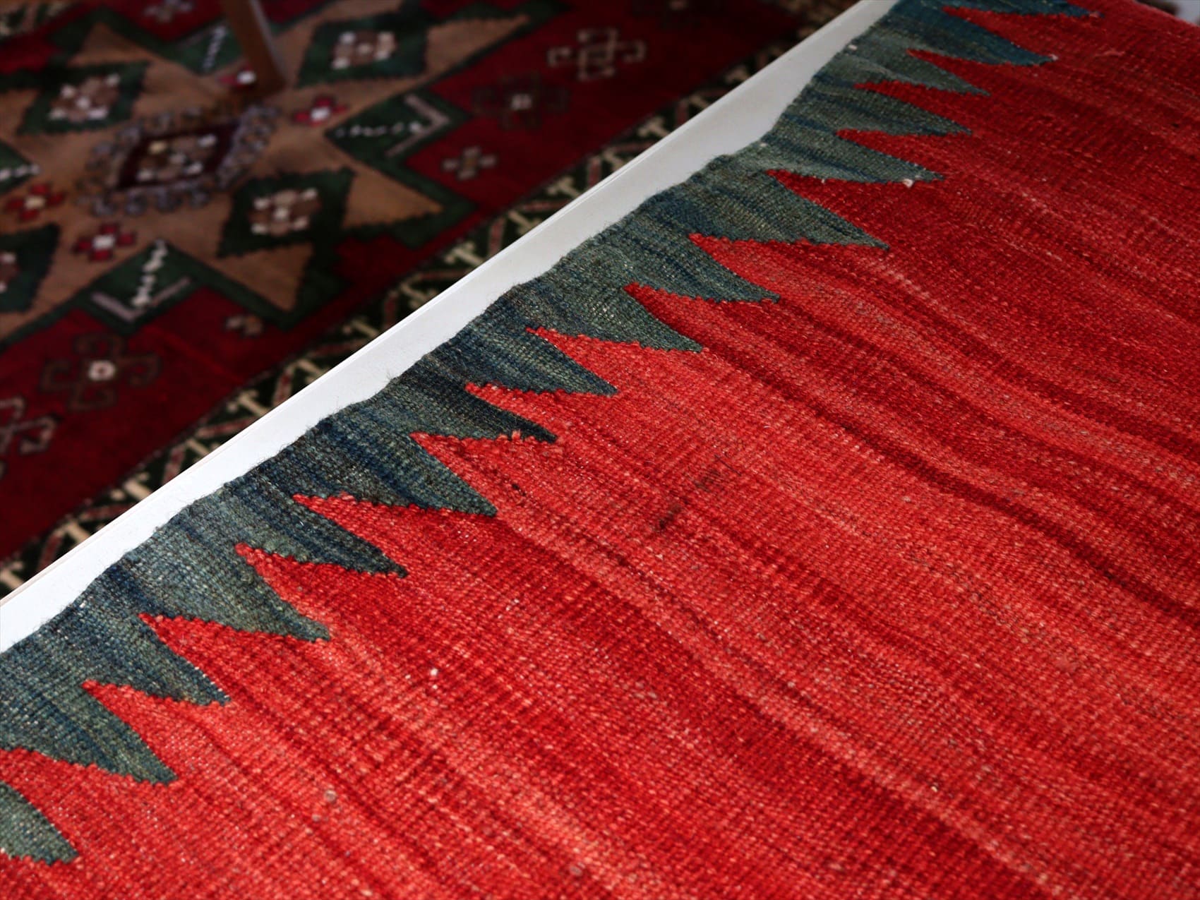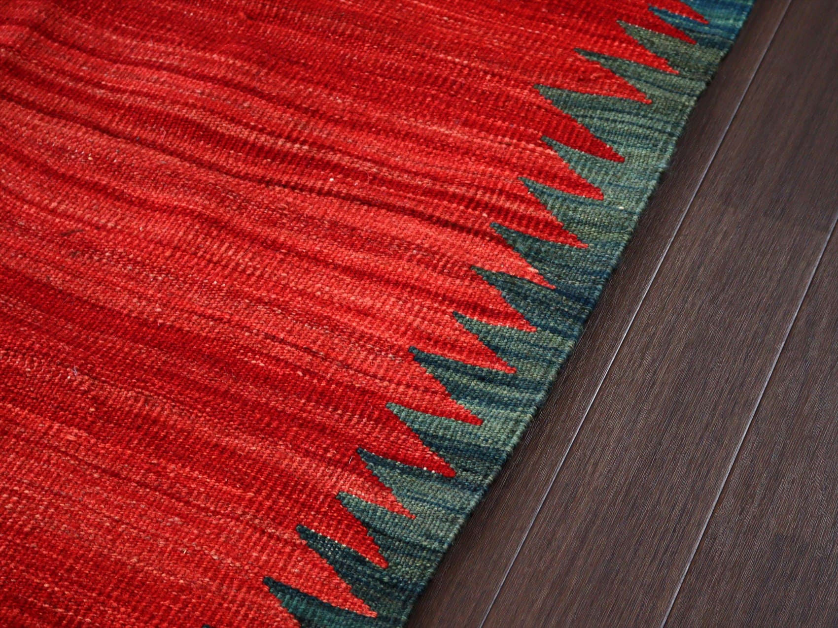 - カシュカイ族の草木染キリム 大きなランナー83×92cm シンプルなレッド&グリーン