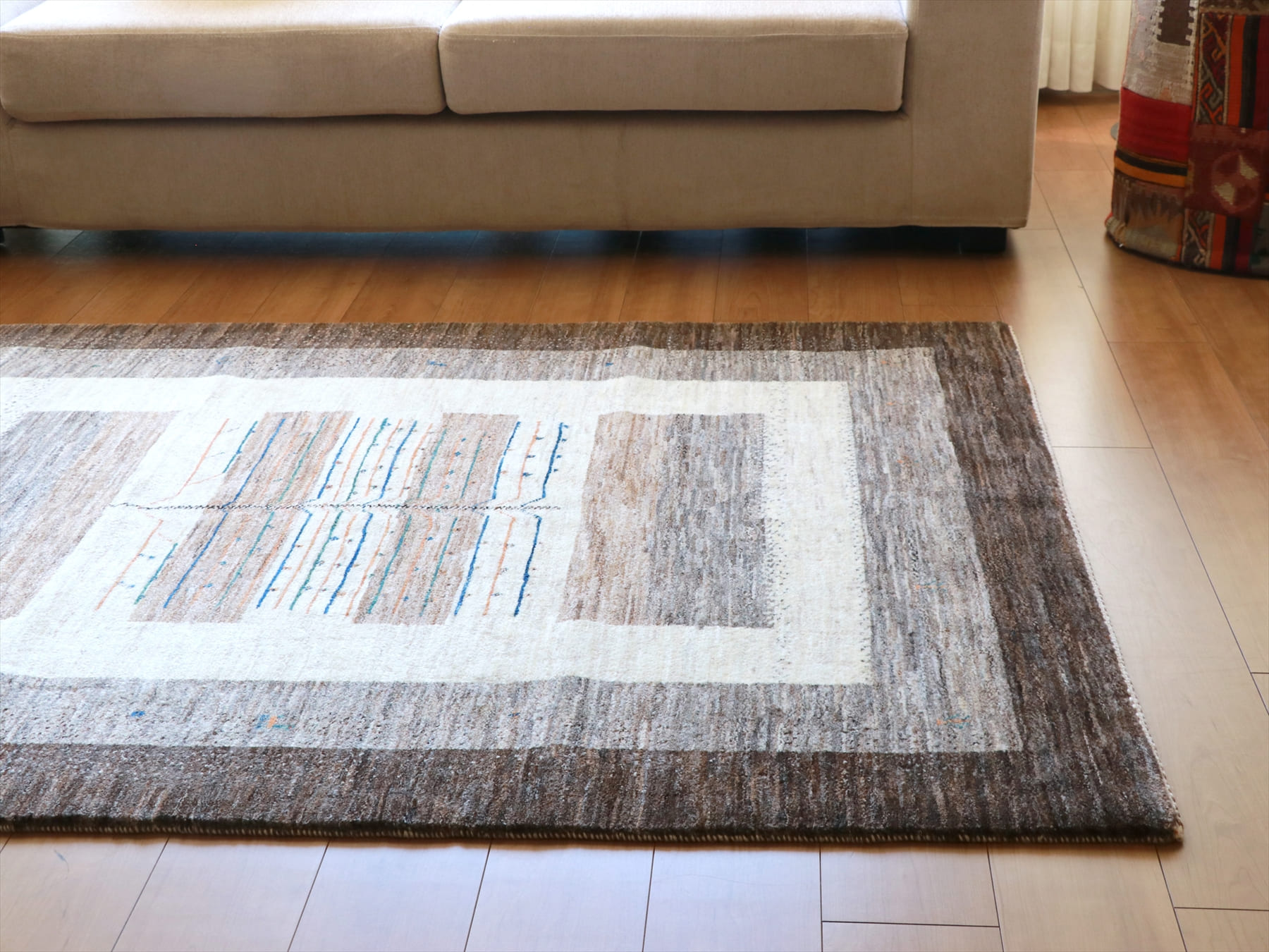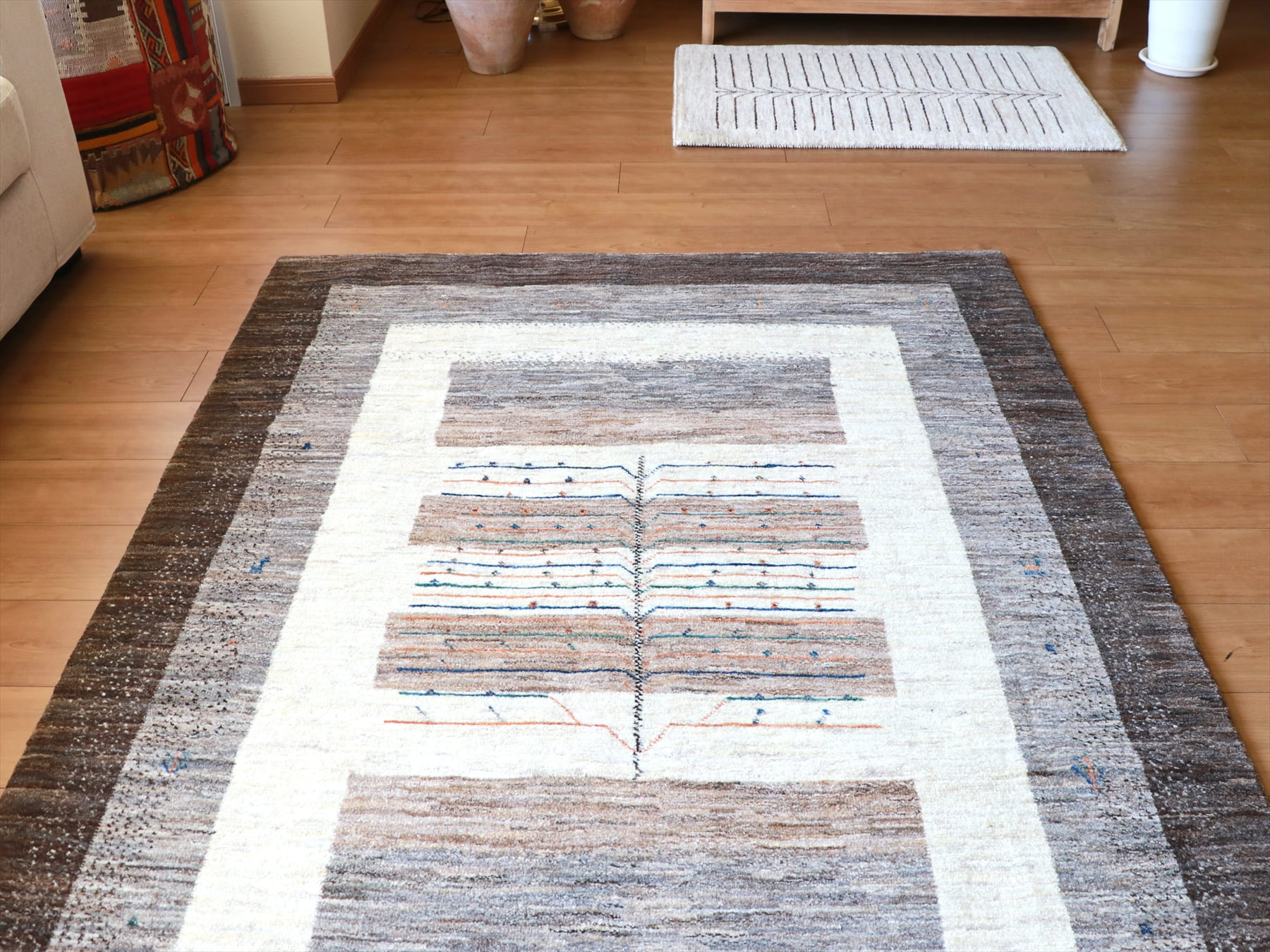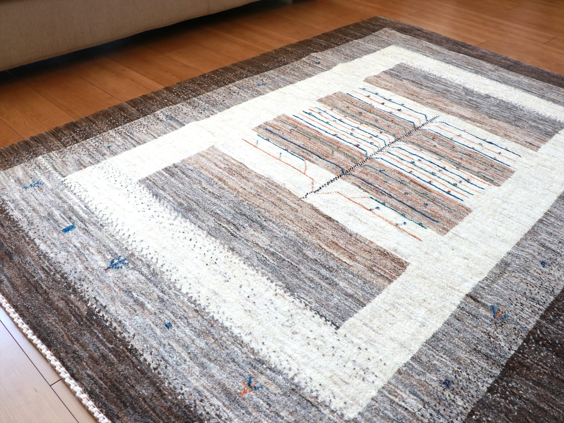 - ギャッベ/タビーバフ 171×125cm 無染色の羊毛の色を活かしたデザイン