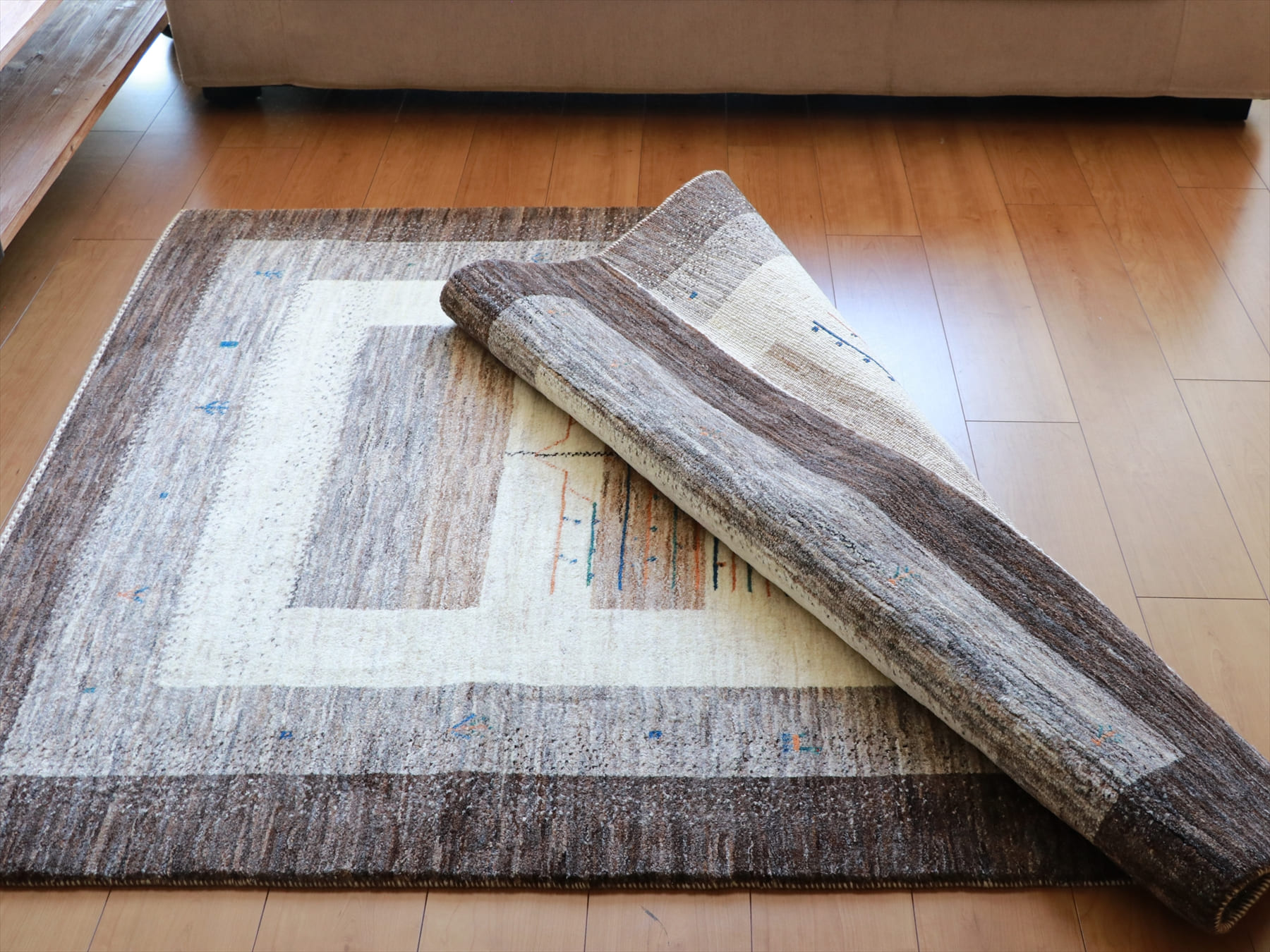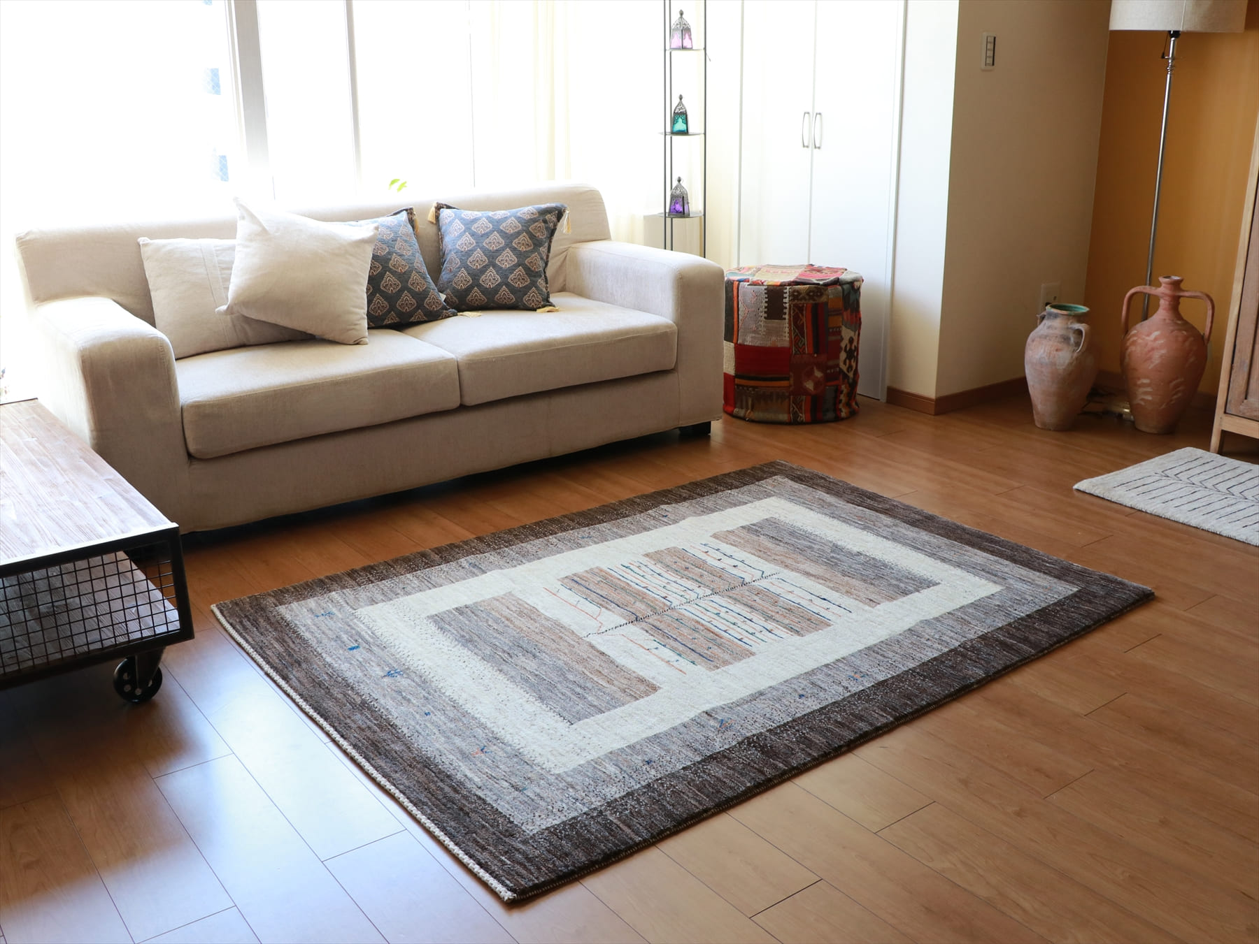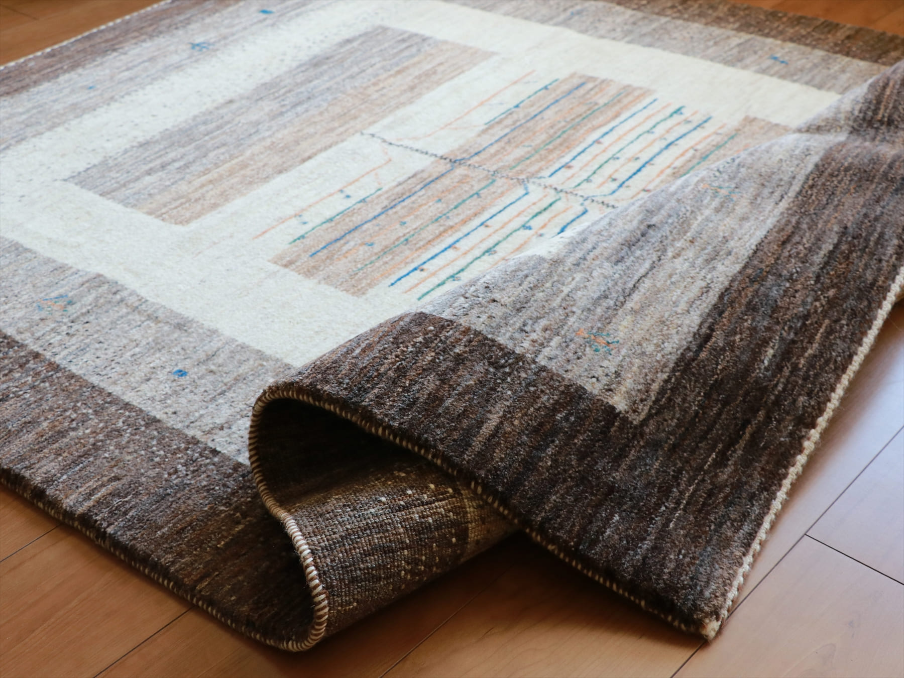 - ギャッベ/タビーバフ 171×125cm 無染色の羊毛の色を活かしたデザイン