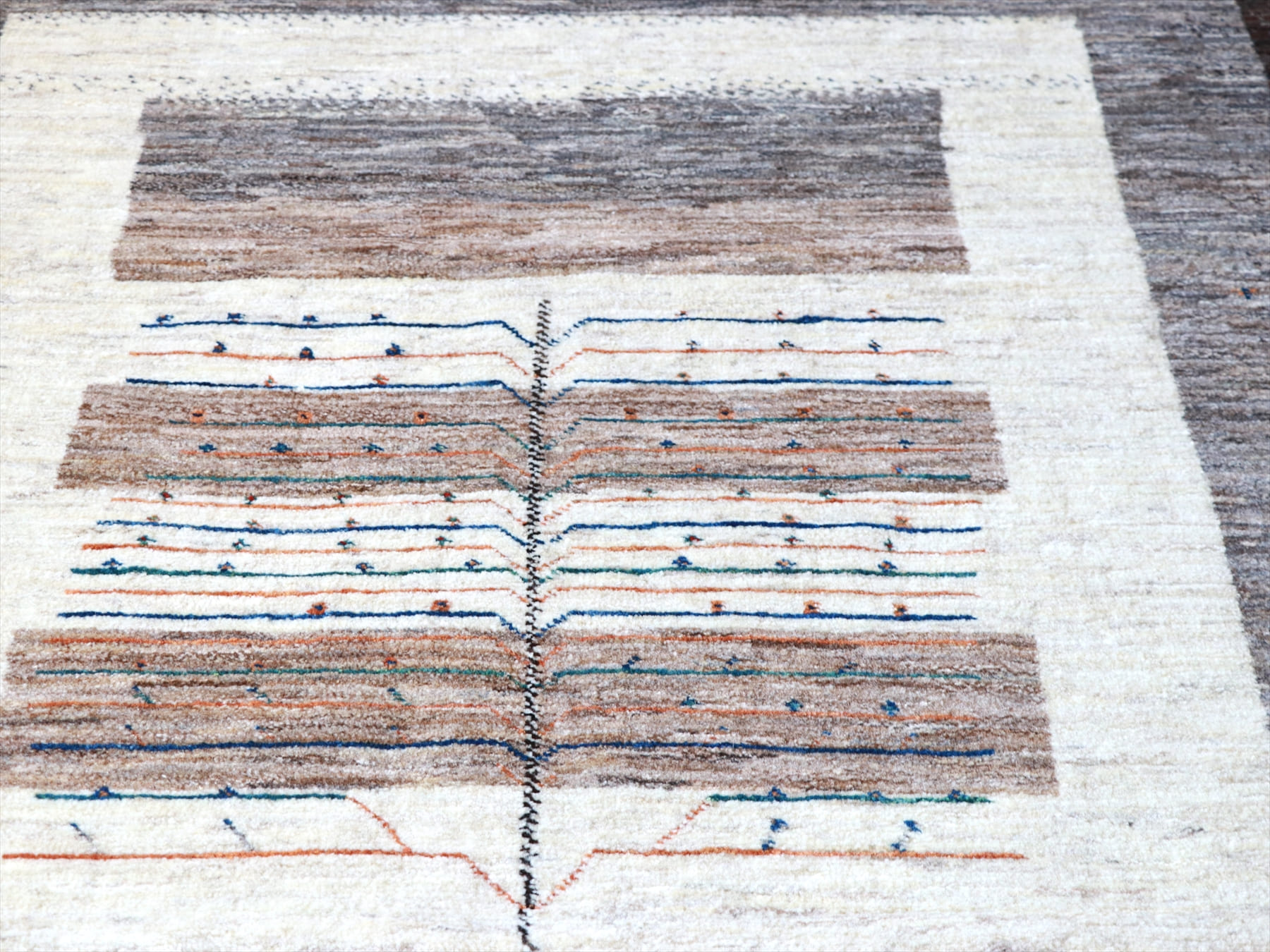 Key:Gabbeh,Tribal rug, Persian carpet,Iran,Shiraz, Quashkai,Farhadian, 手織りギャッベ, 細かい, イラン直輸入, ペルシャ絨毯, リビングサイズ, ソファ前, ブラウン, グレー, アイボリー, モノトーン, モダンデザイン, Tree Of Life, 生命の樹, 草木染, ウール100%, ガラタバザール, 東京, 中野区