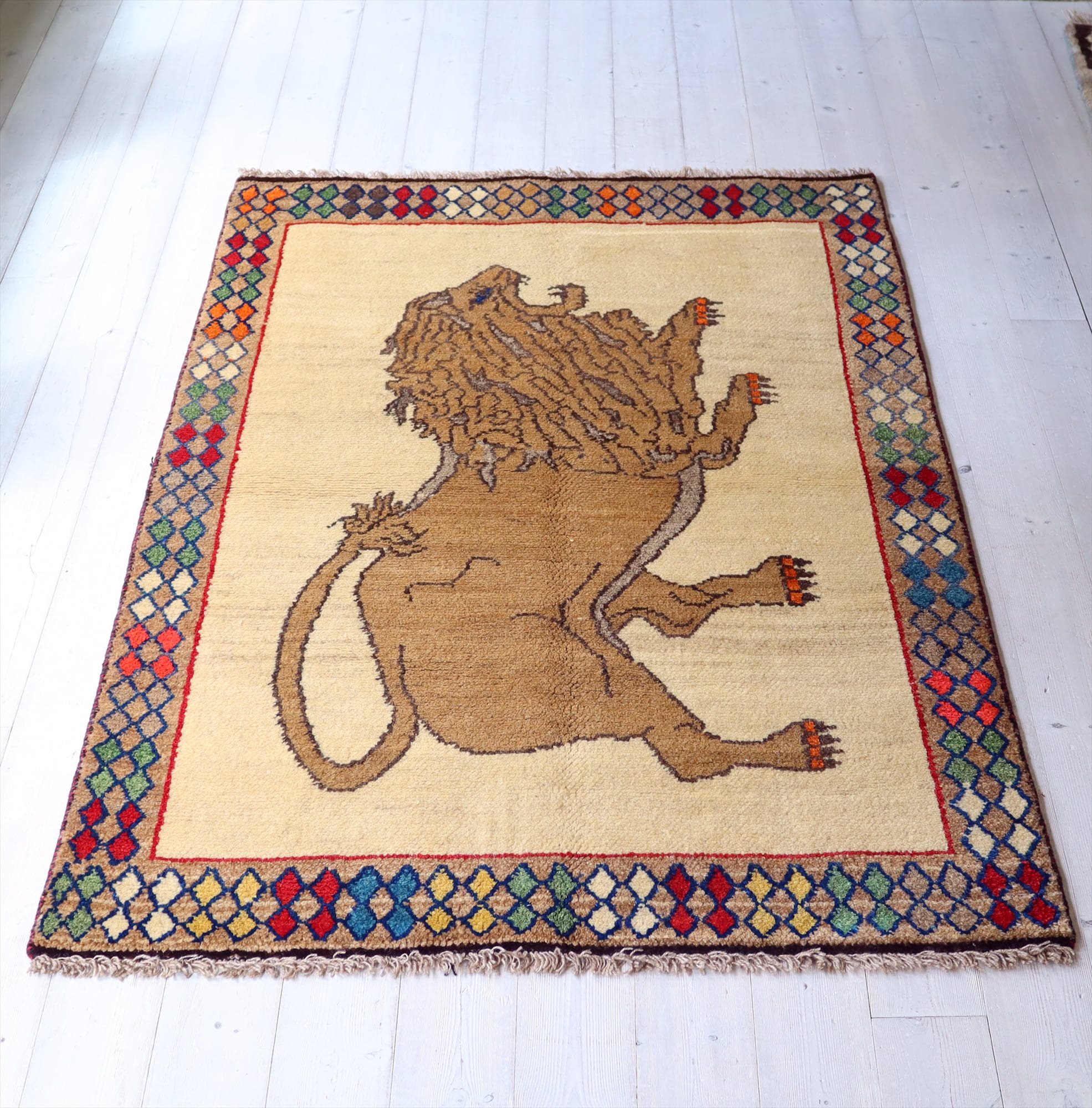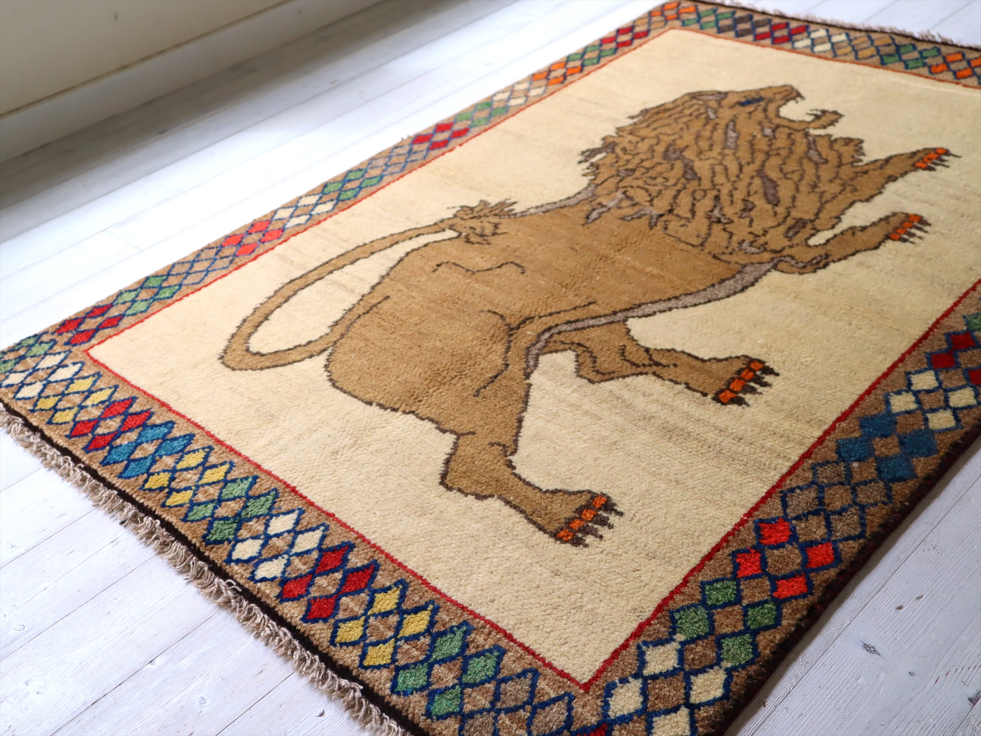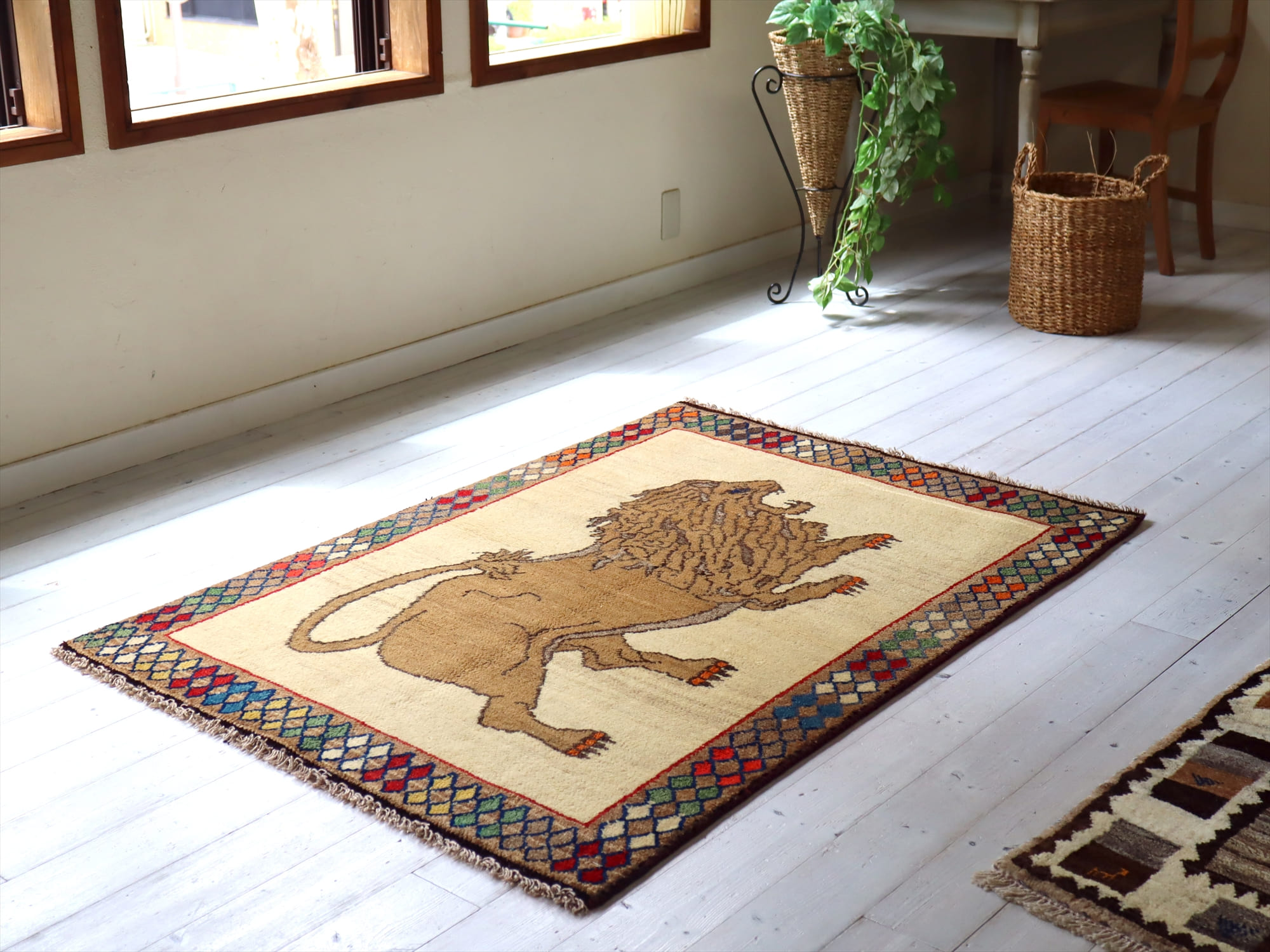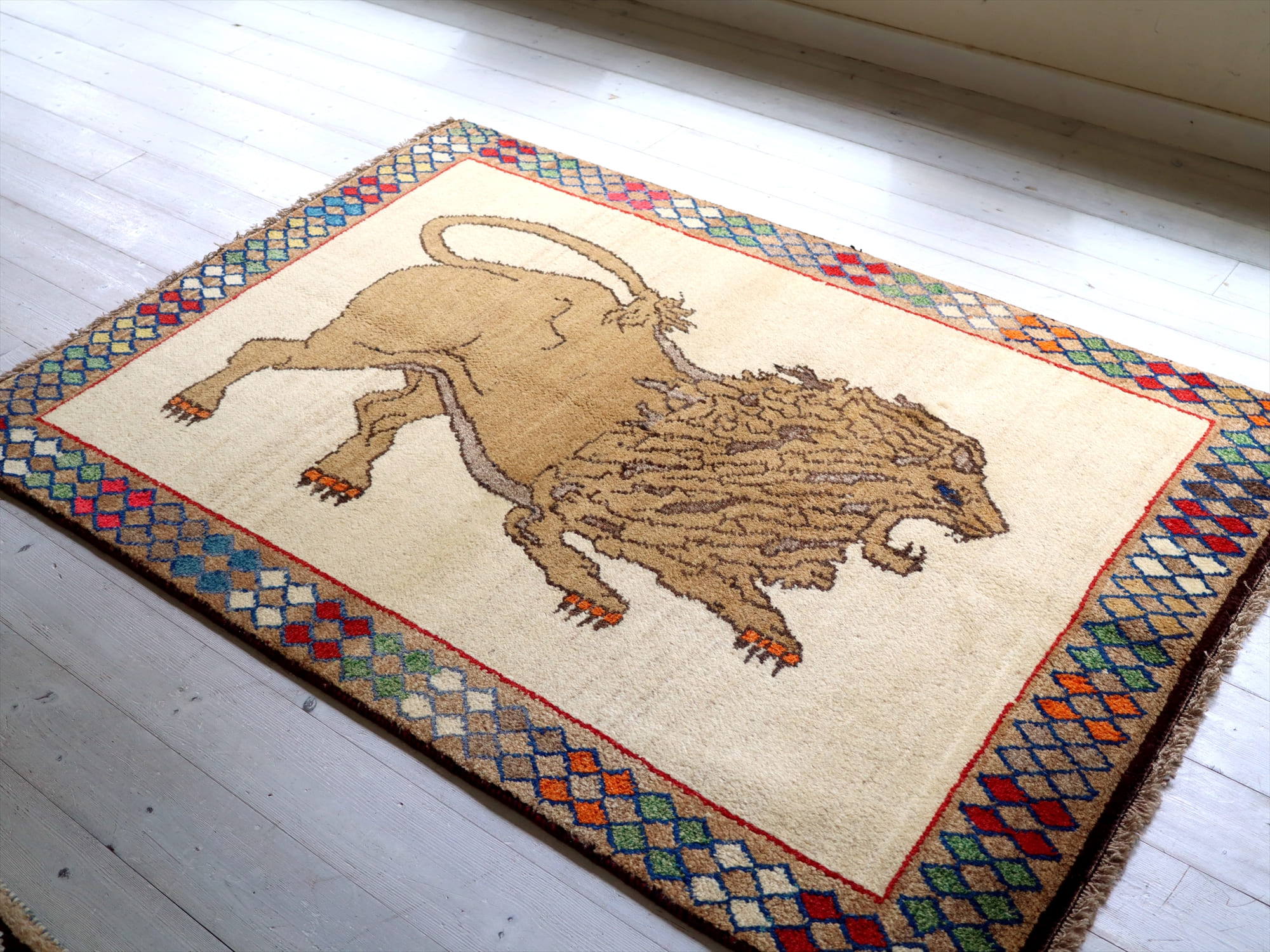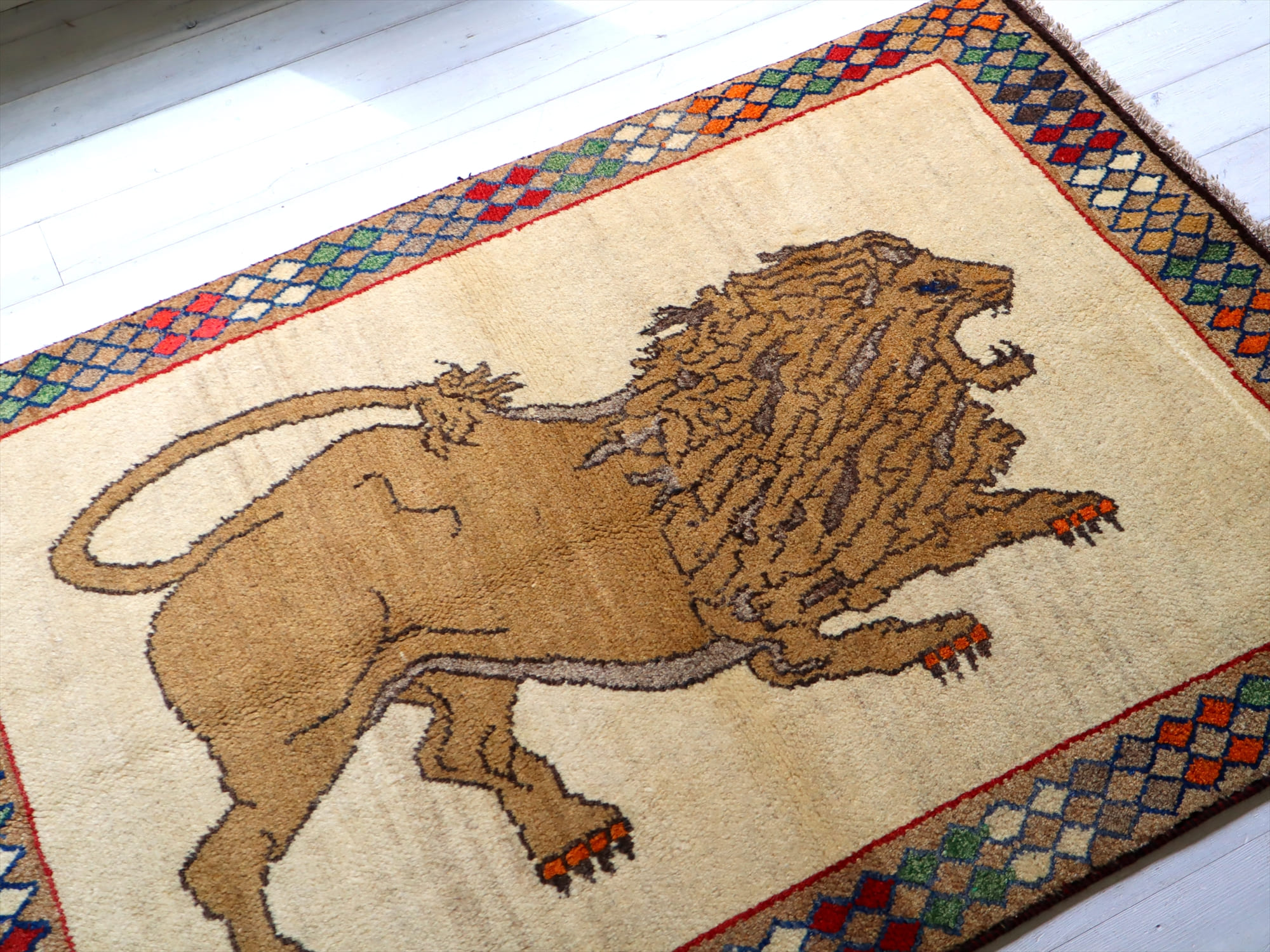 ライオンギャッベ147×101cm 吠えるライオン Old Gabbeh Lion