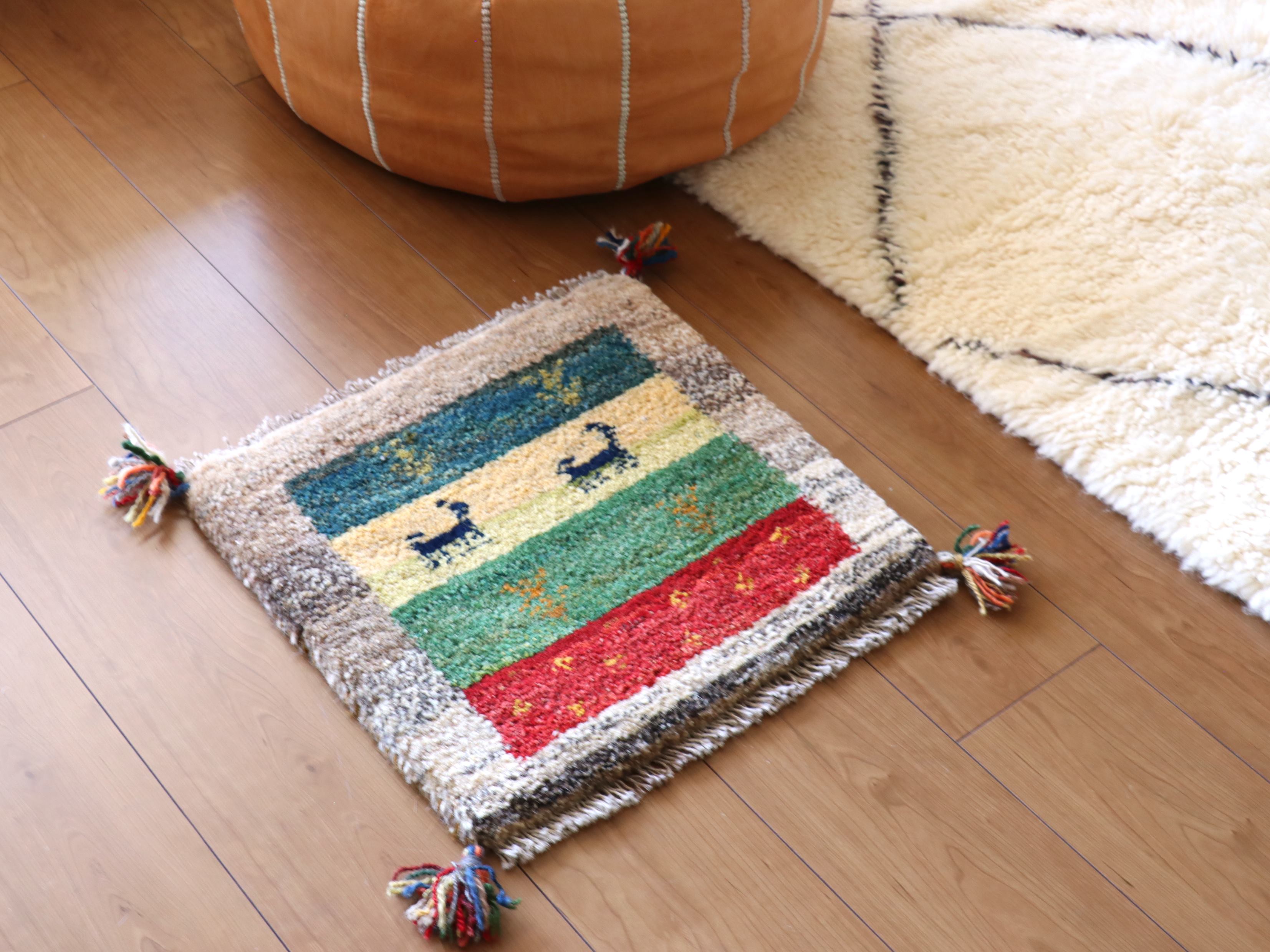 ギャッベ Gabbeh イラン南部の遊牧民・カシュカイ族の手織りラグ39×42cm 座布団サイズ