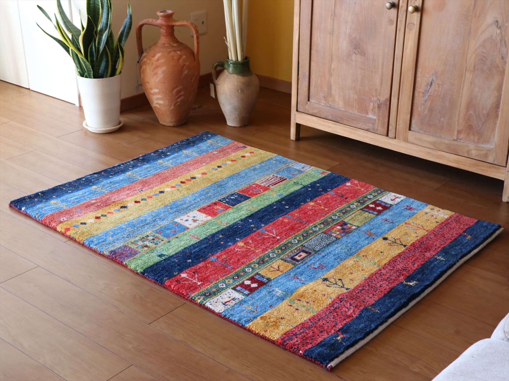 - ギャッベ・ノマド Gabbeh Nomad139×100cm 鮮やかなカラーストライプ