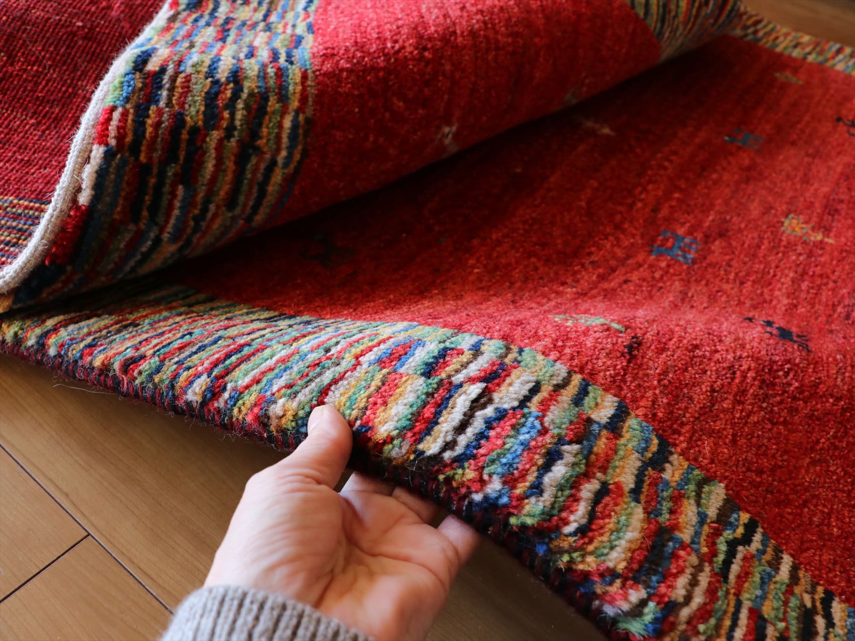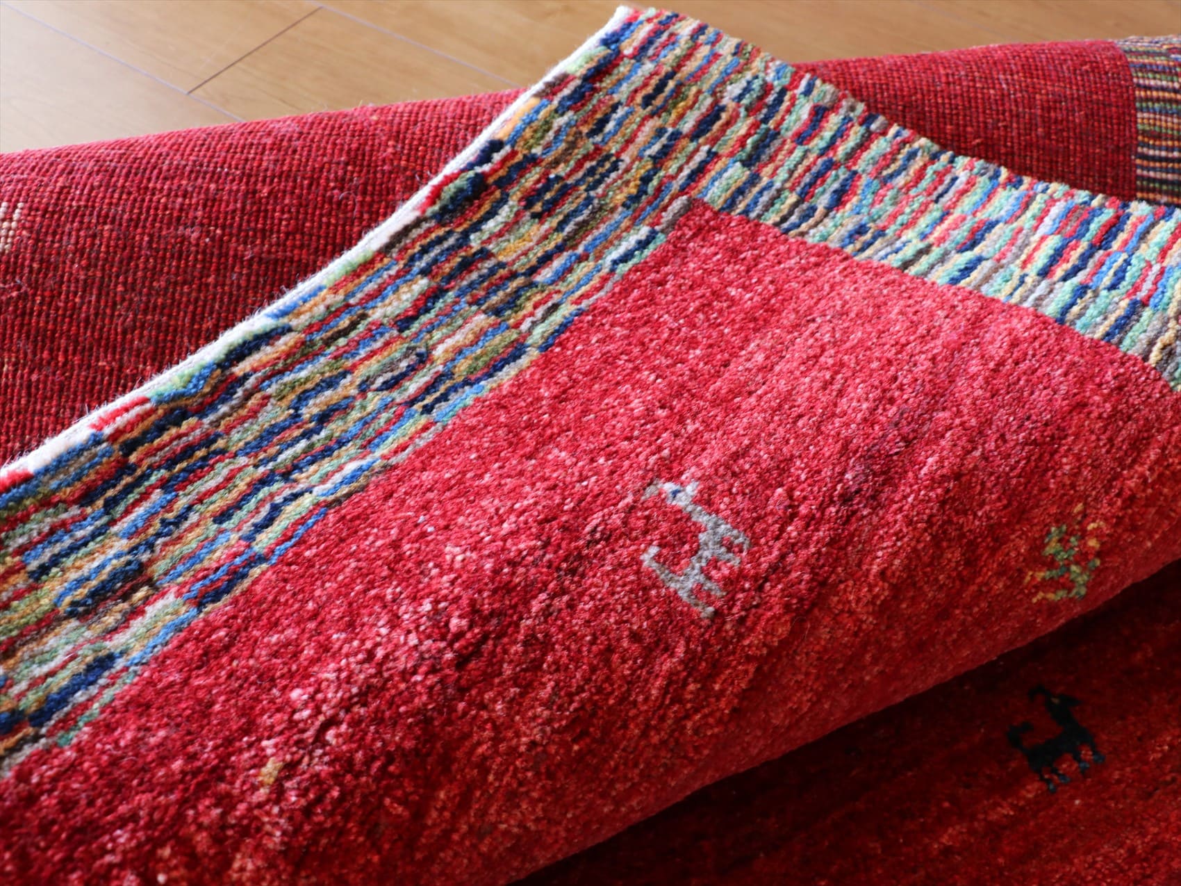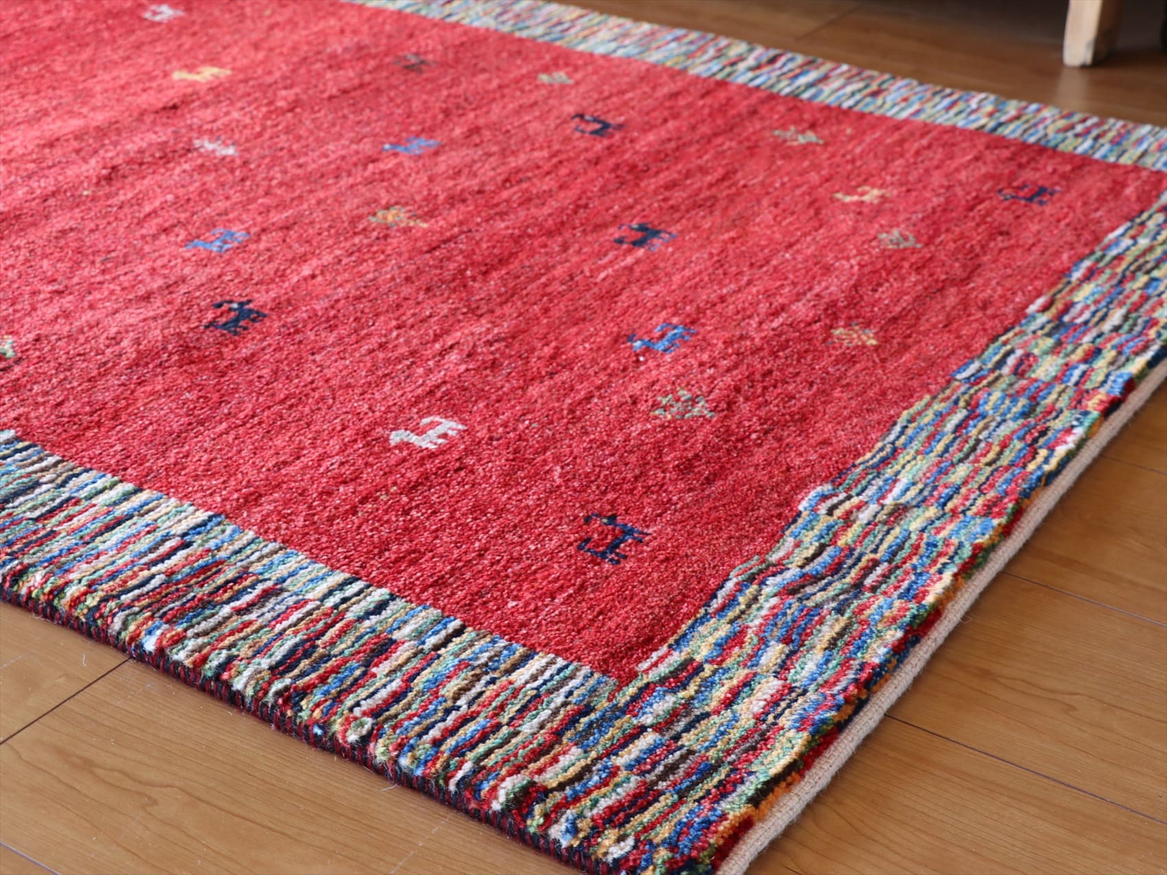 - ギャッベ・ノマド Gabbeh Nomad158×96cm レッド/ミックスカラーのボーダー