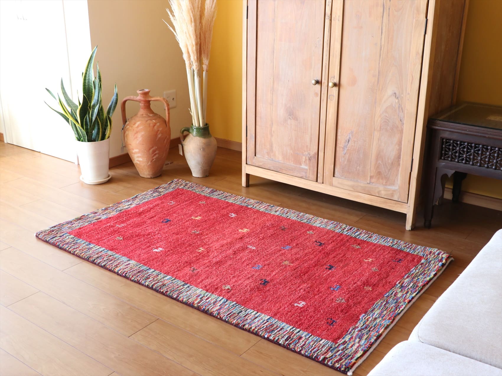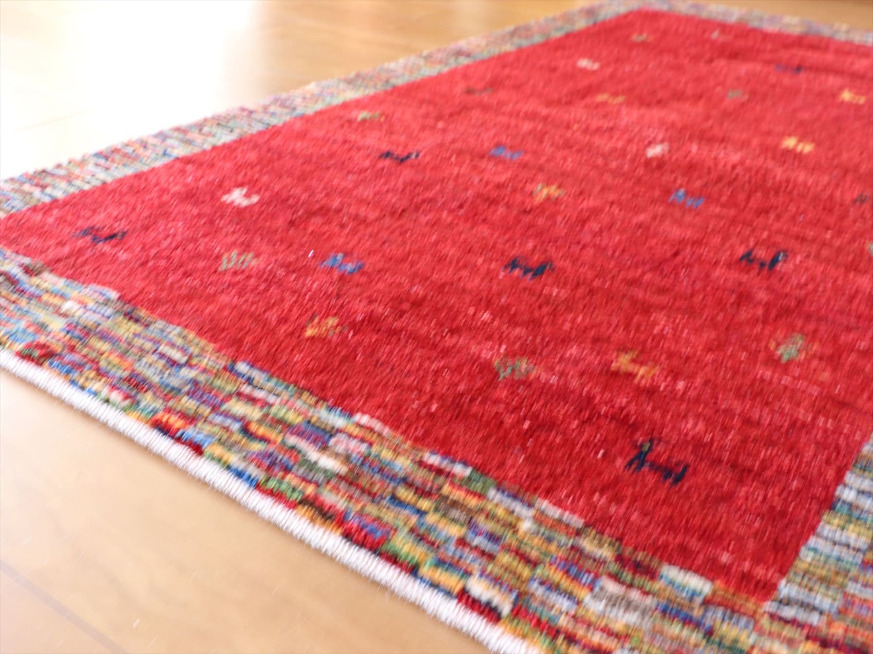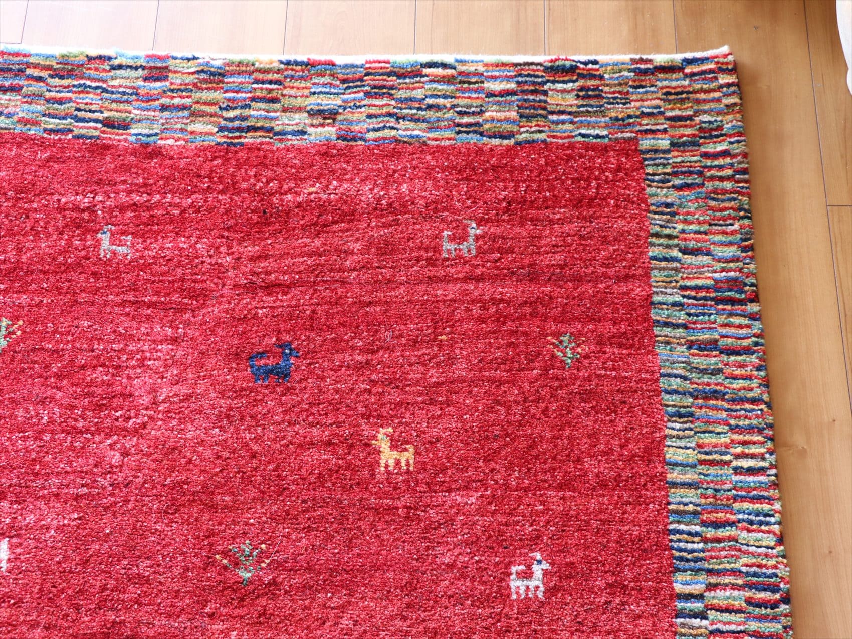 - ギャッベ・ノマド Gabbeh Nomad158×96cm レッド/ミックスカラーのボーダー