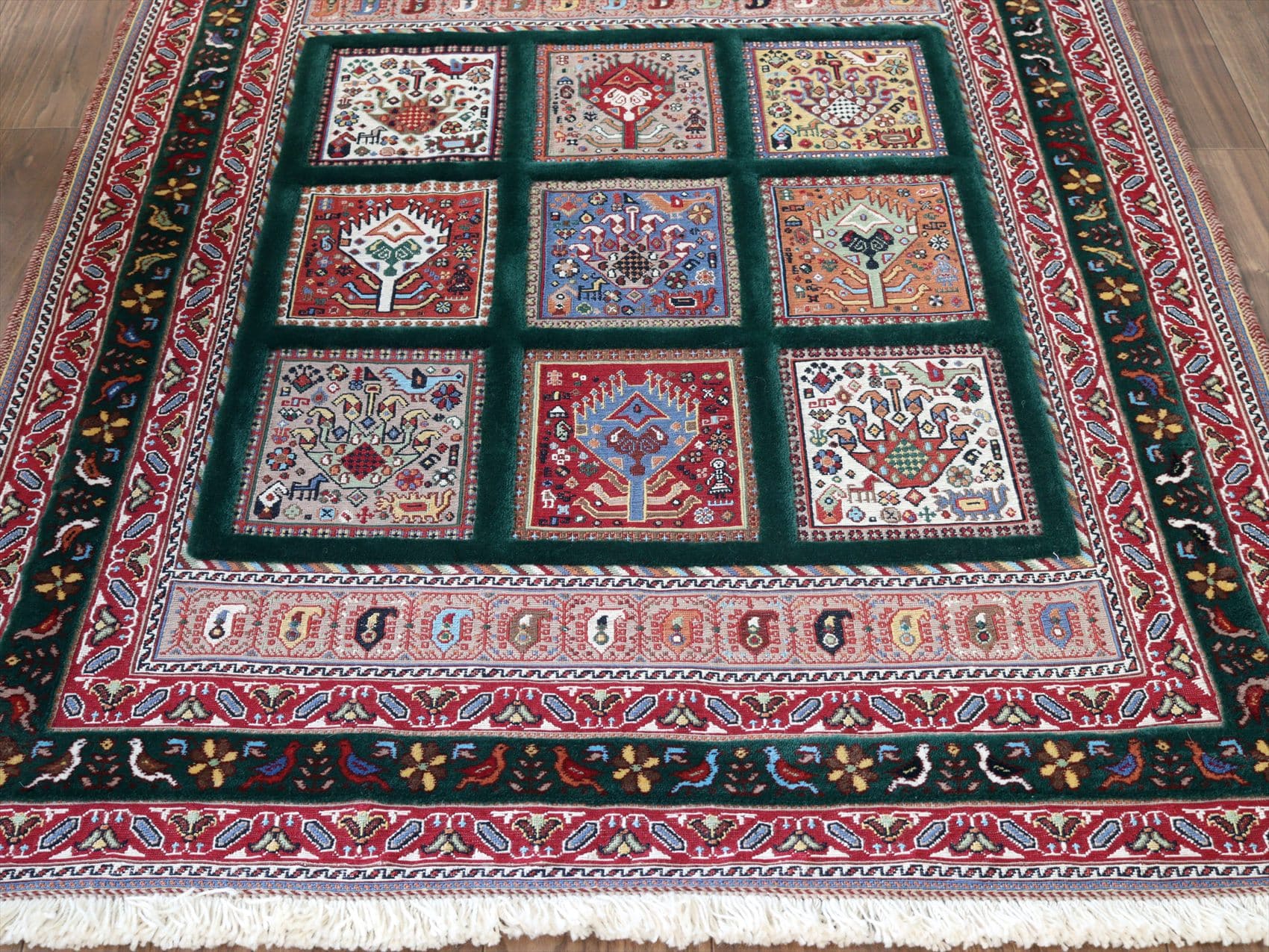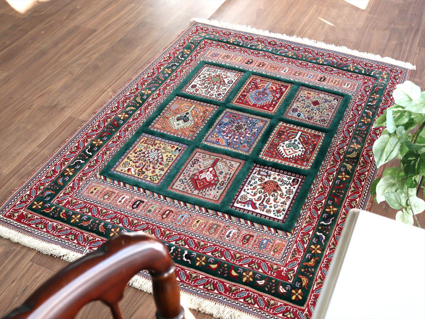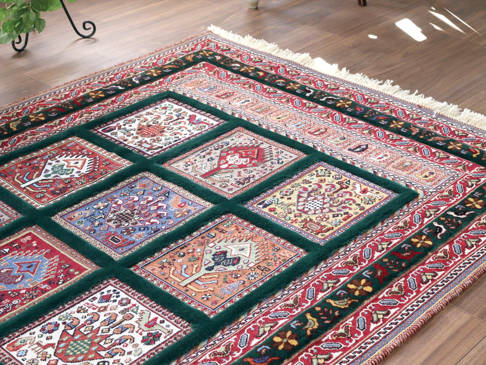バルーチスマック・シルジャンキリム153×115cm グリーンのトレリス・ガーデンデザイン