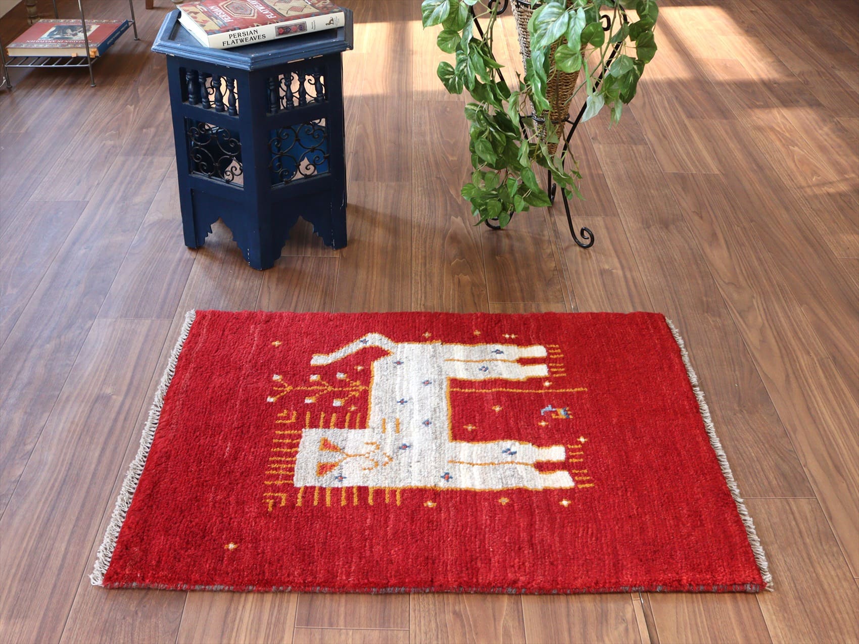 Key:Gabbeh, Lion Gabbeh, Persian, Iran, カシュカイ, ギャッベ, ギャッベ, イラン, 手織り, ウール100%, ライオン, レッド, 赤, 草木染, 玄関マット, Shiraz, Area Rug, Carpet, Handmade, Hand weaven、東京、中野区