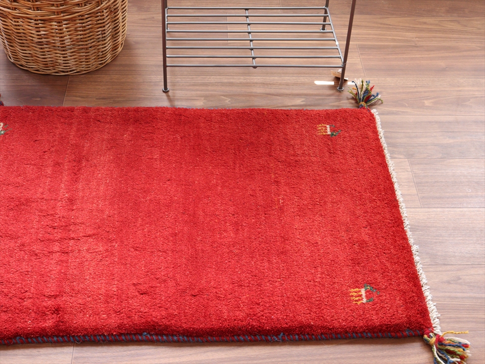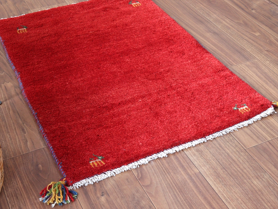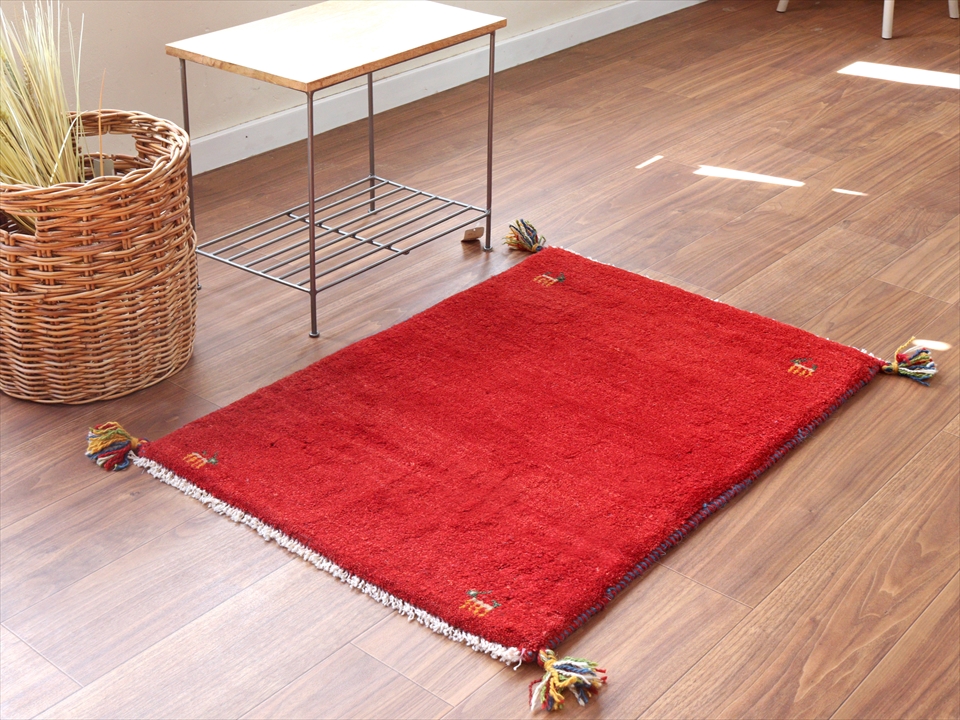 Key:ギャッベ, ギャベ, ラグ, 絨毯, イラン, シラーズ, ペルシャ, バザールギャッベ, ポンポン, 手織り, 一点もの, 玄関マット, レッド, シンプル