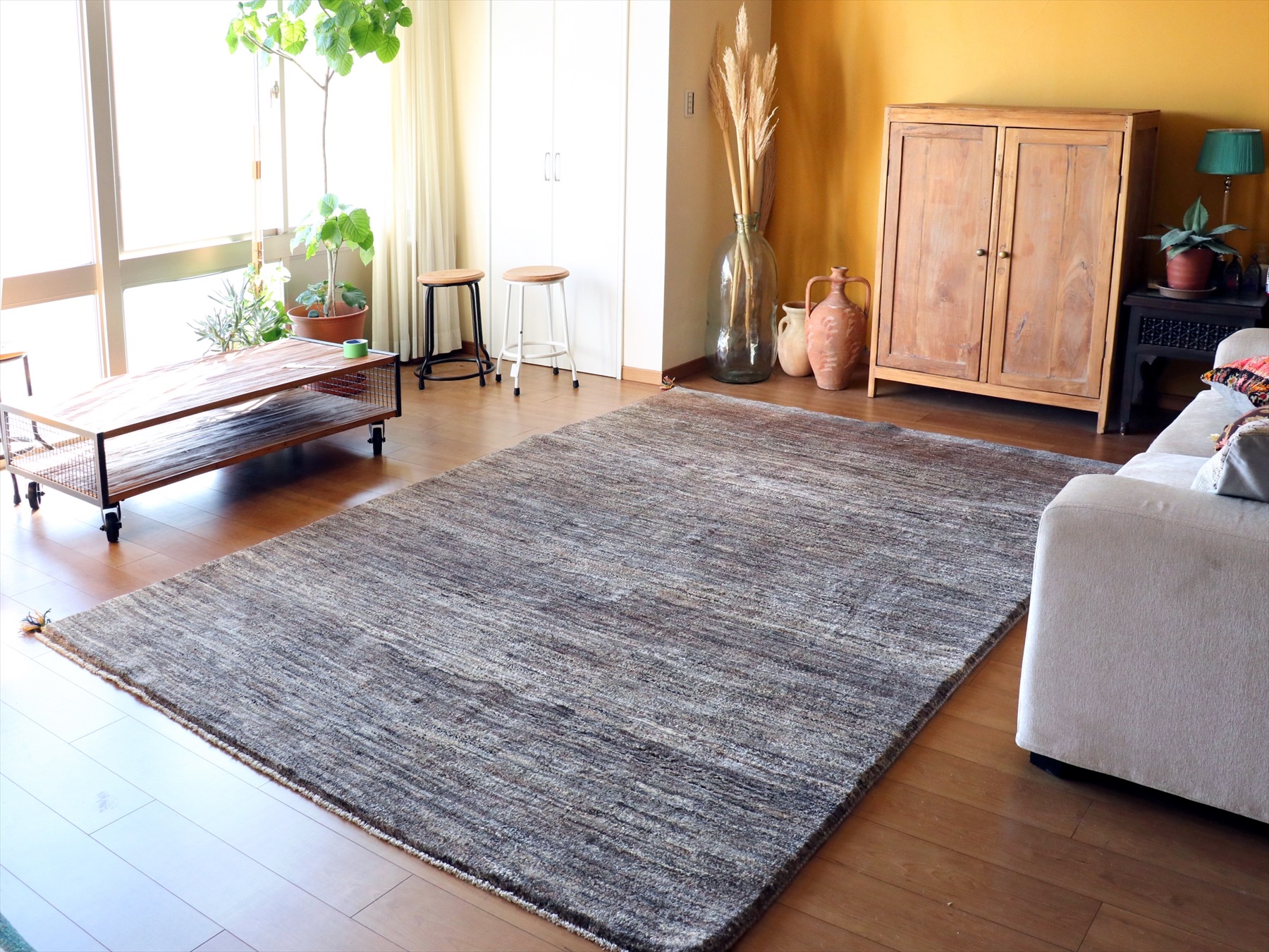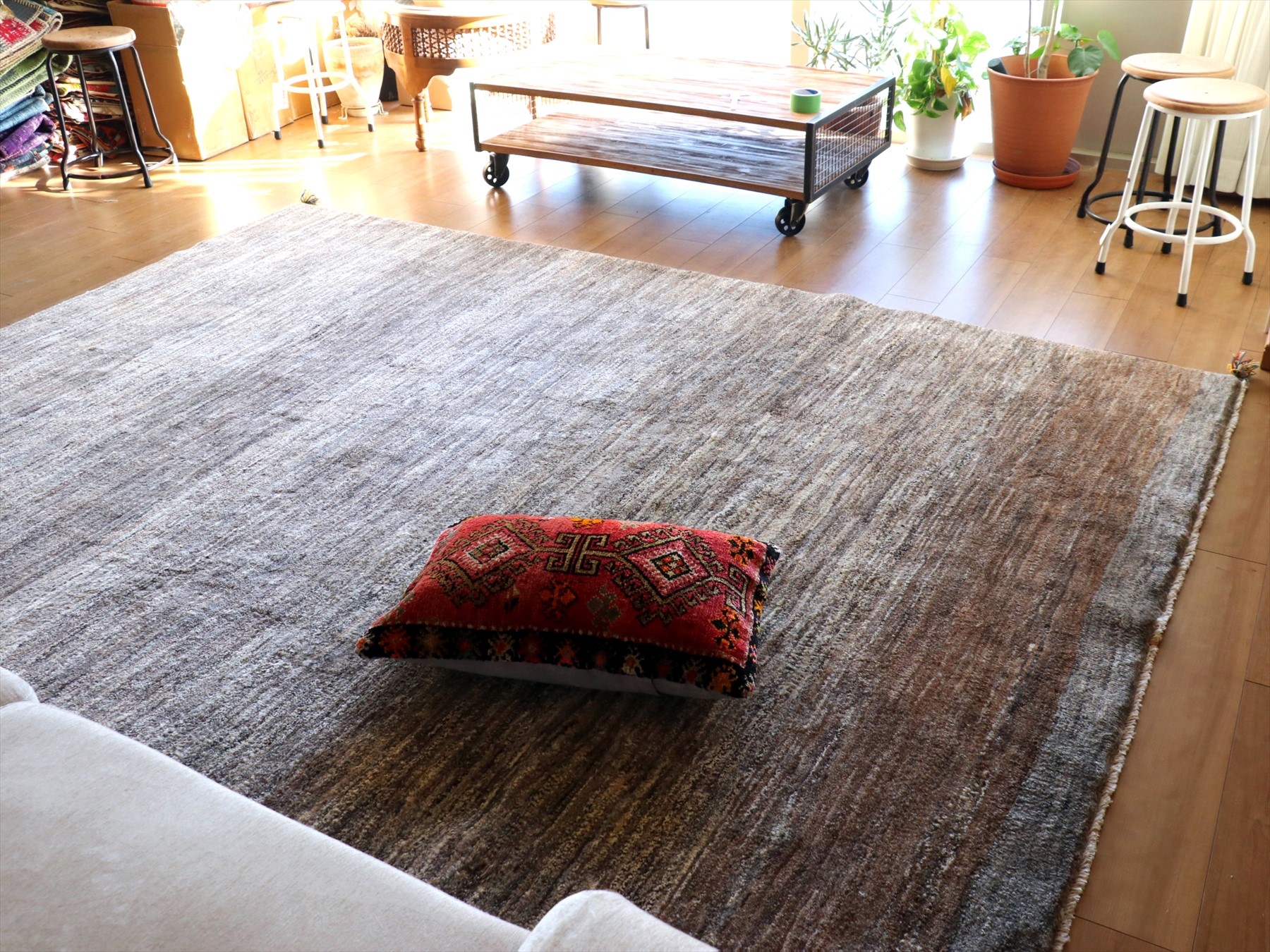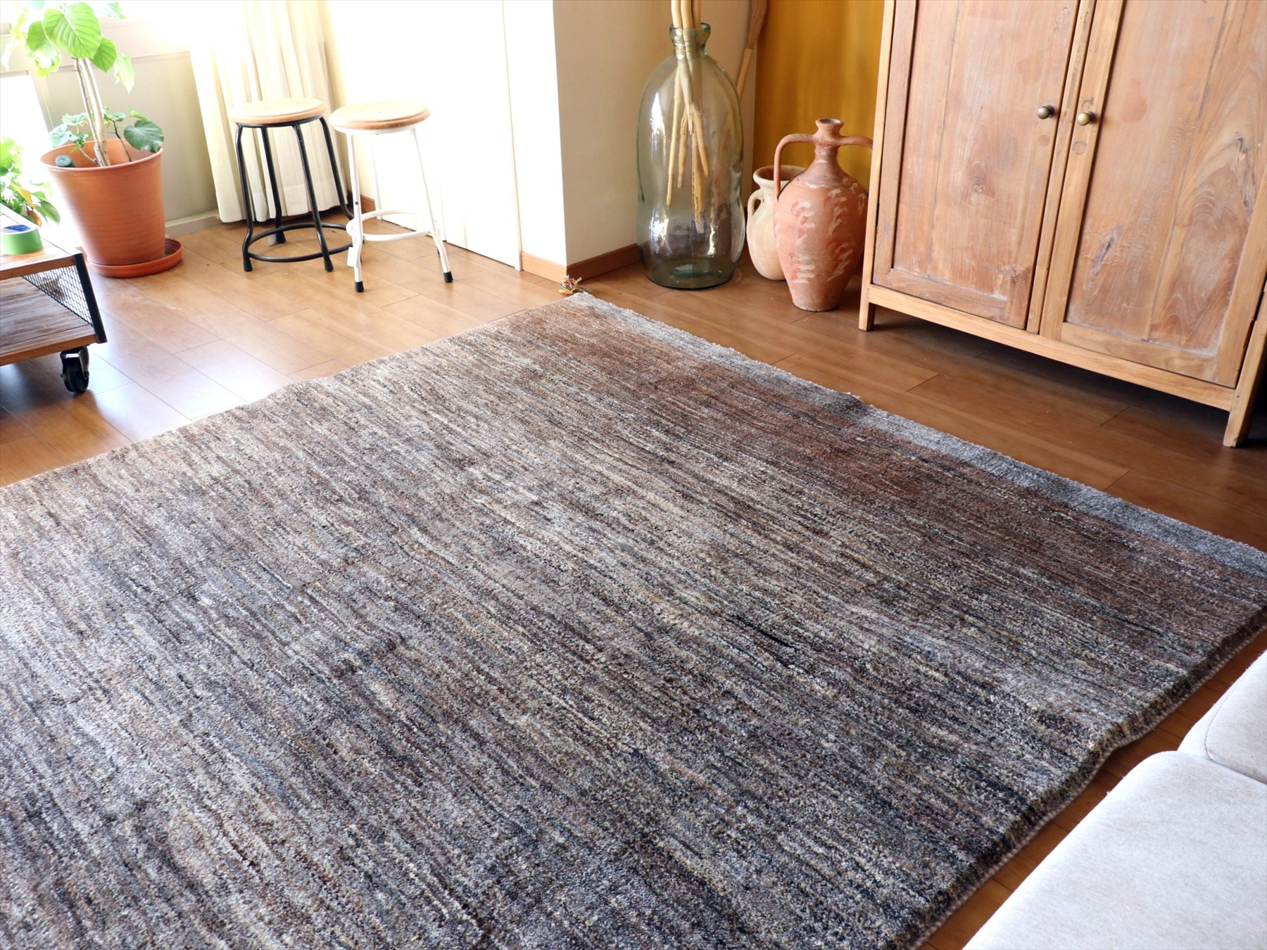 Key:Gabbeh, Persian, Iran, カシュカイ, 遊牧民, ギャッベ, ギャッベ, ラグ, イラン, 手織り, ウール100%, シンプル, リビング, ソファ前, モダン, 無染色, グラデーション, ブラウン, リビング, ダイニング, ソファ前, Shiraz, Area Rug, Carpet, Handmade, Hand weaven、東京、中野区