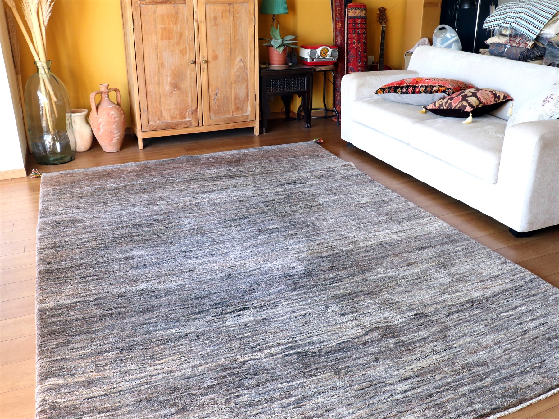 - ギャッベ 厚みのある織り284×202cm ナチュラルブラウン グラデーション