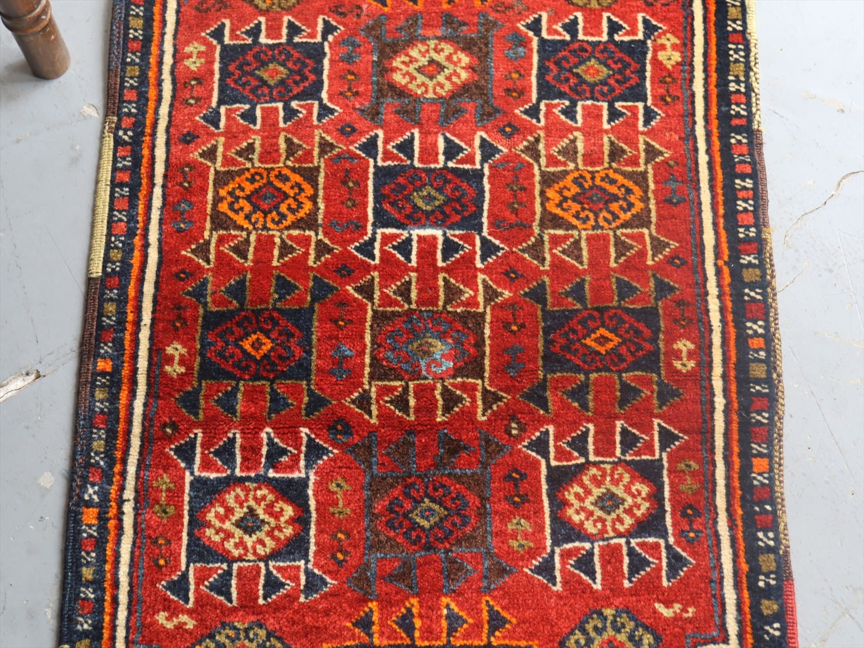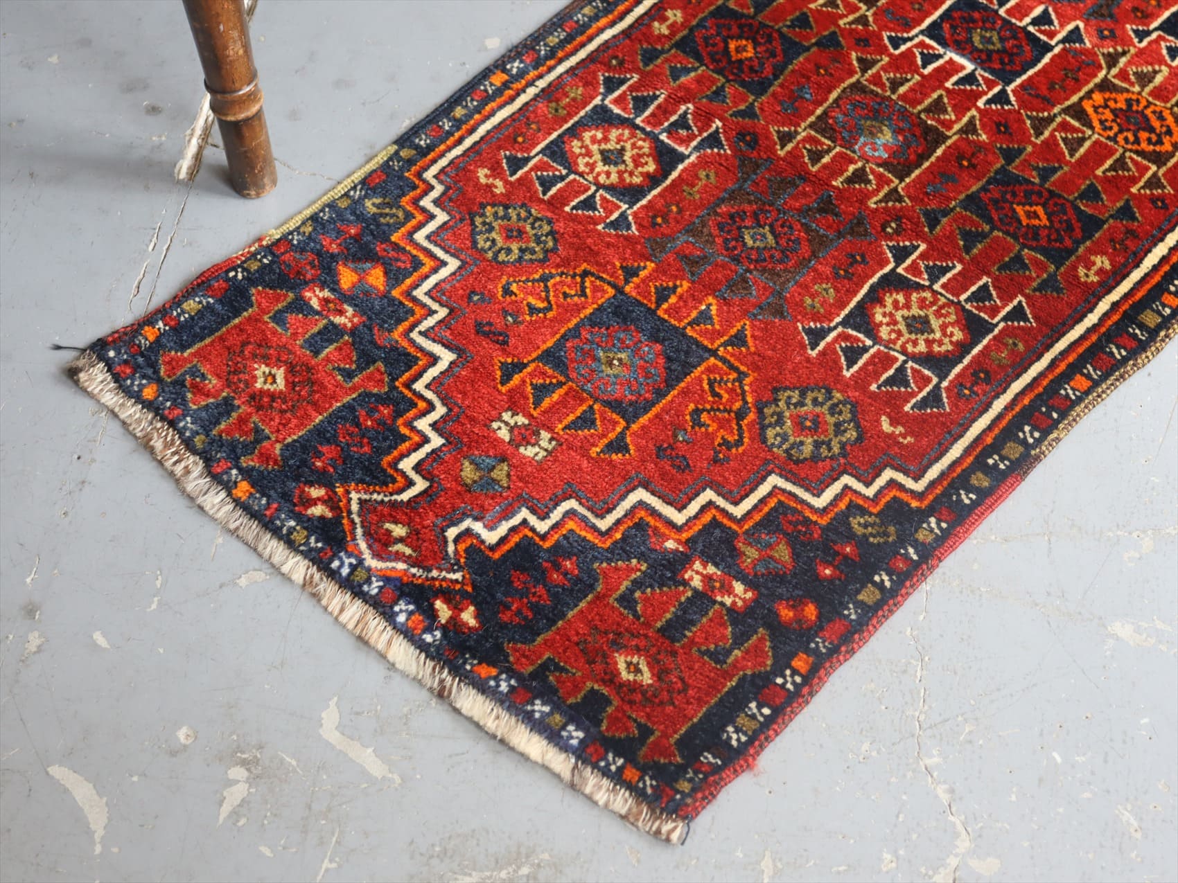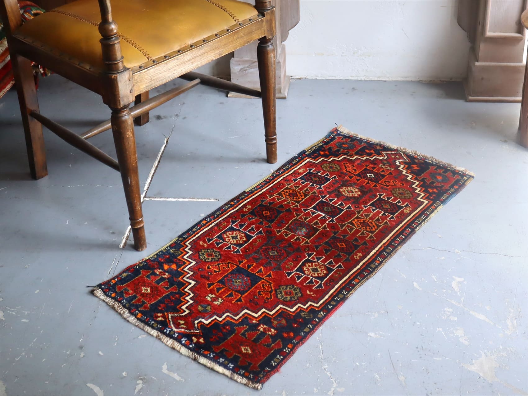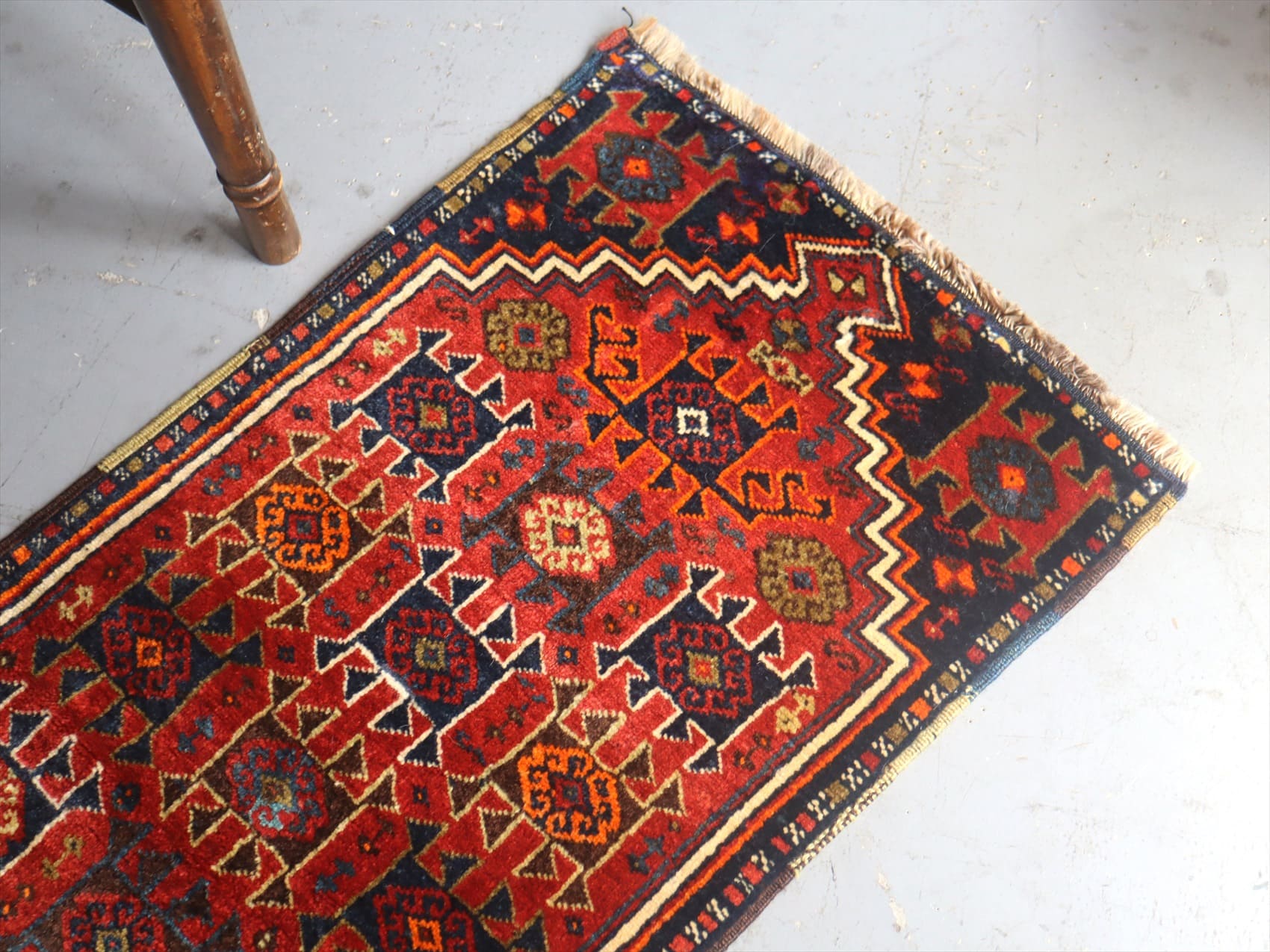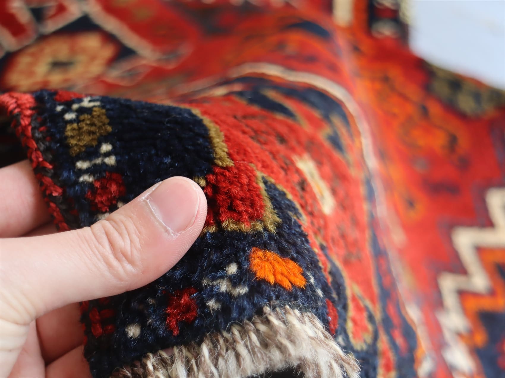 | レンガ色のような赤と、深い紺色がきれいなマラテヤ地方のじゅうたん。織り目はとても細かく表面にはツヤがあります。 |