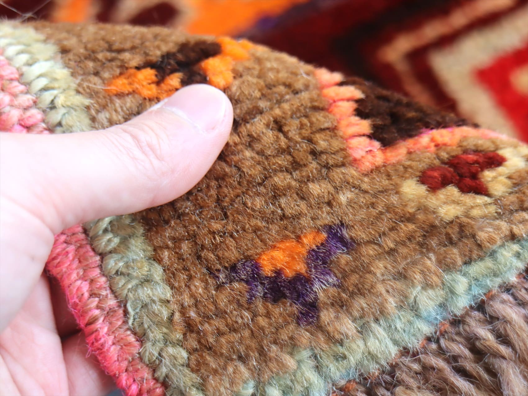 | 毛足はやや長めでふかふかした踏み心地。織りは(トルコ絨毯のなかでは)厚みがありやわらかくしなやか。大きなダメージはなく、きれいな状態です。 |