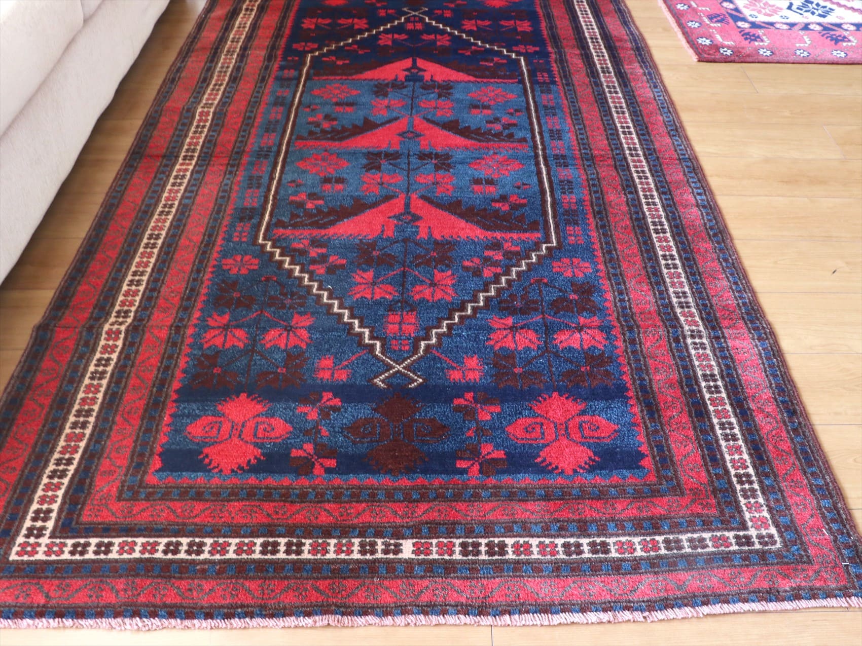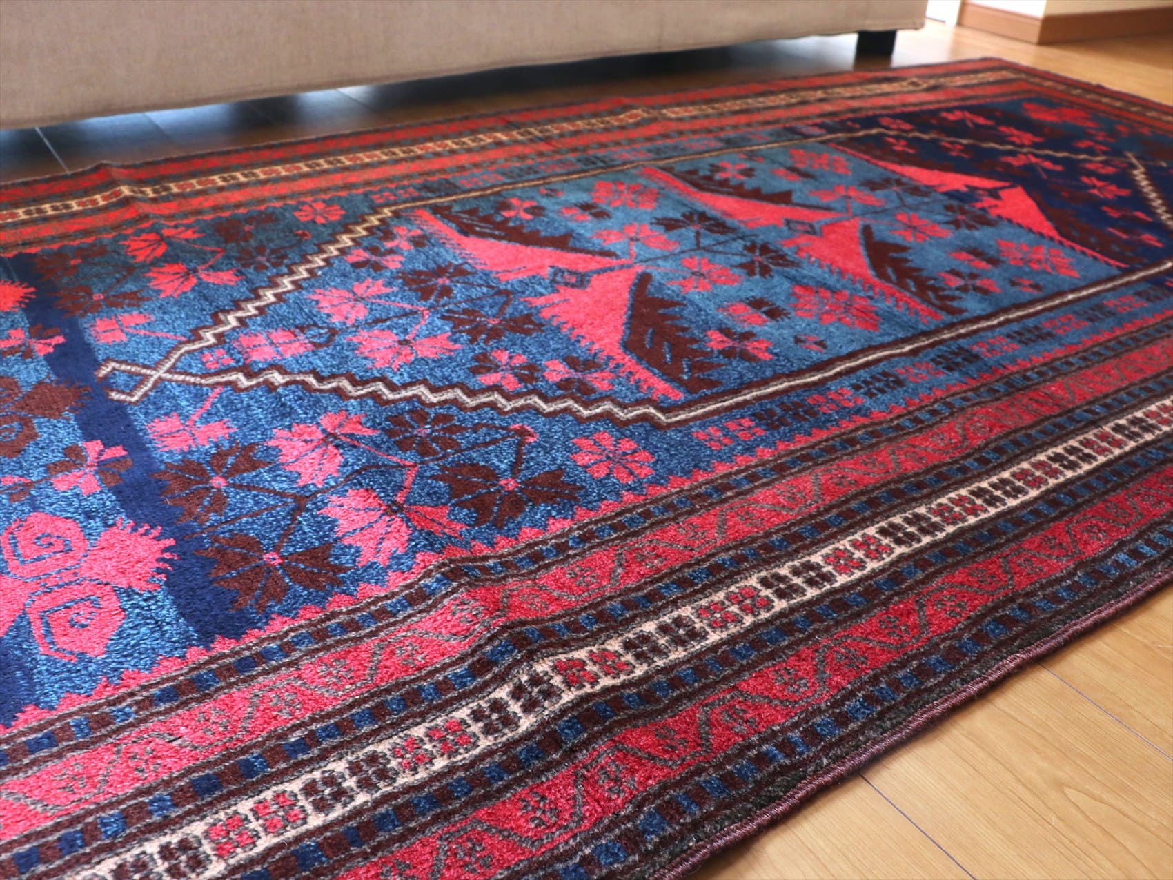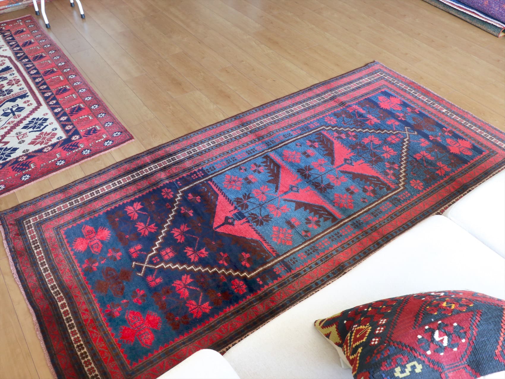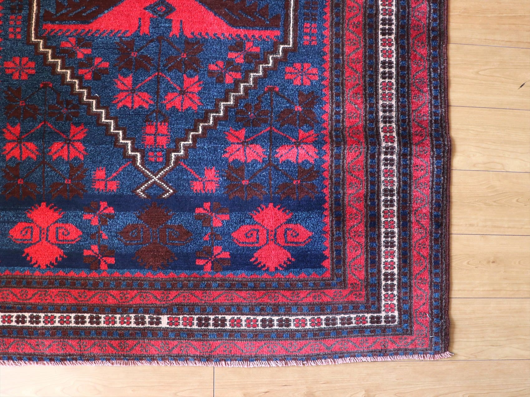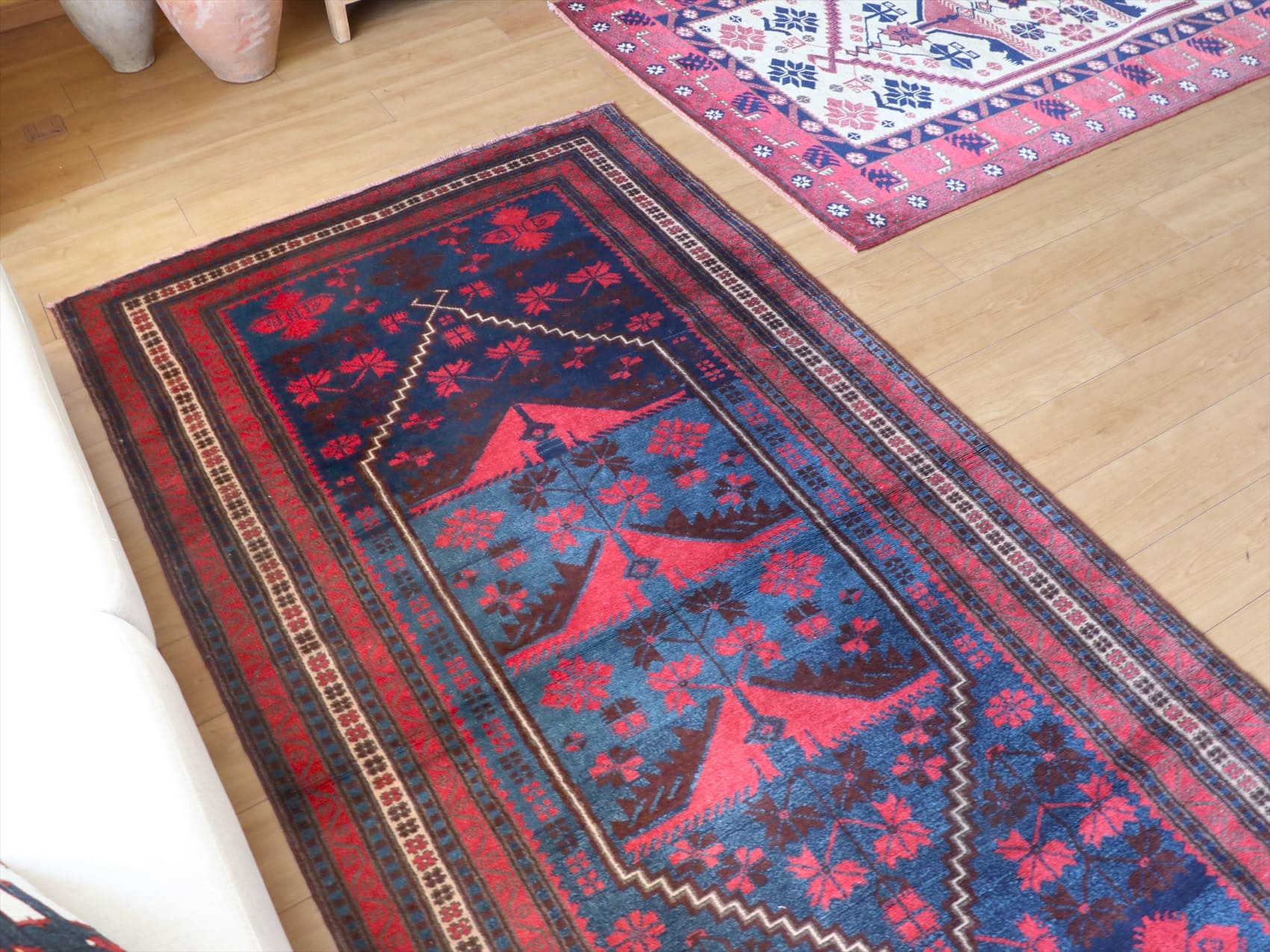 トルコじゅうたん エリアラグ ヤージベディル212×113cm ネイビー&レッド