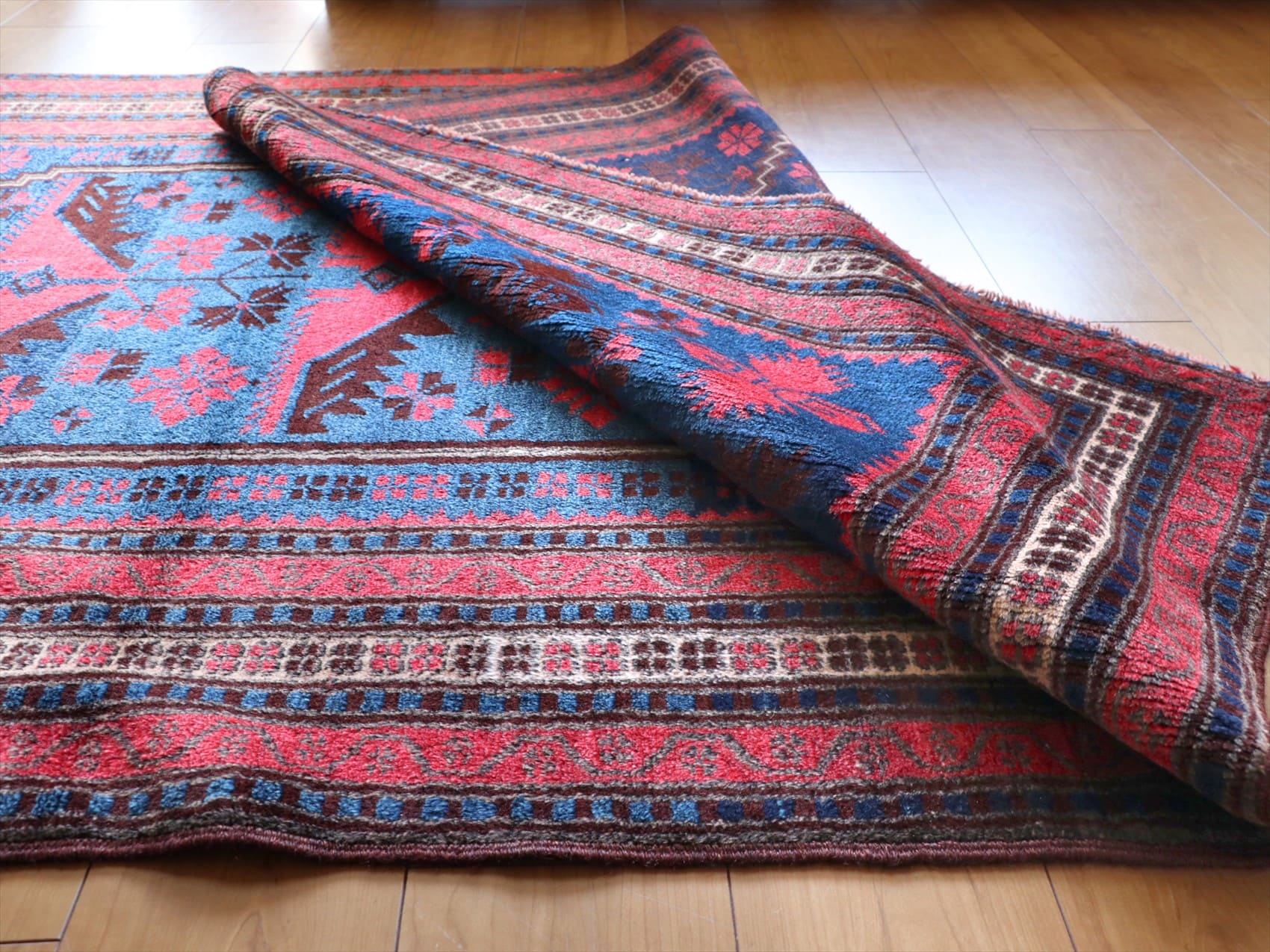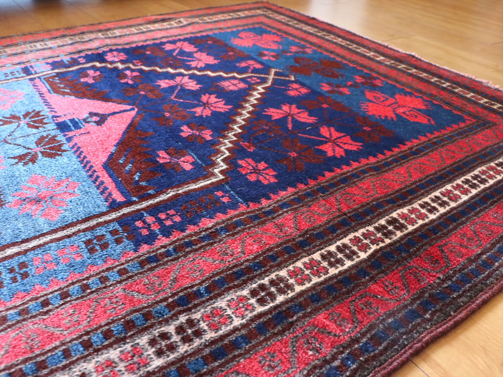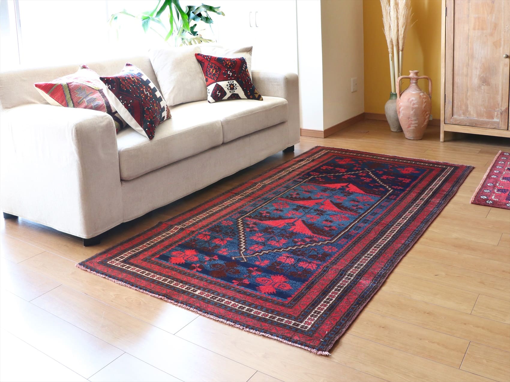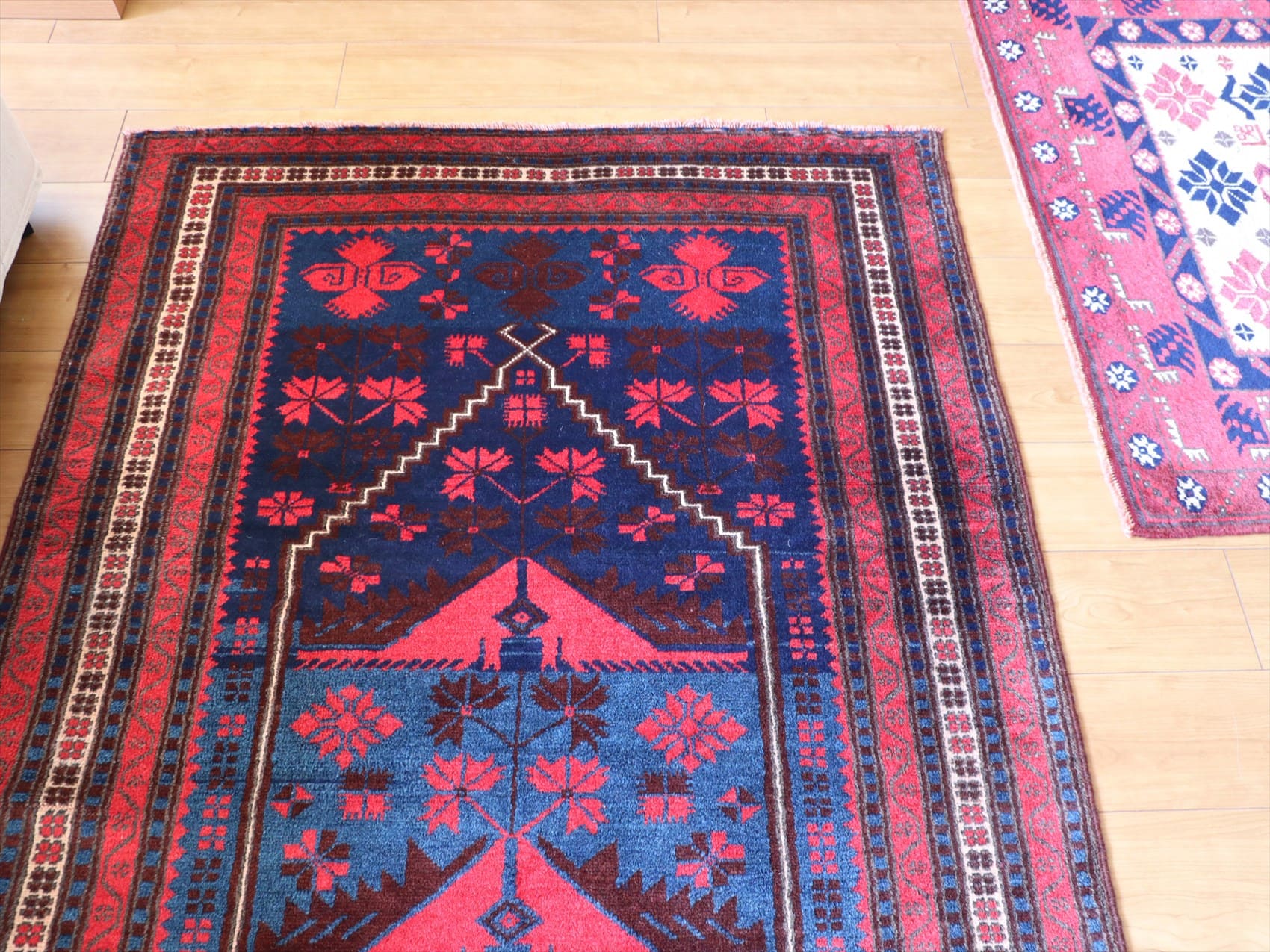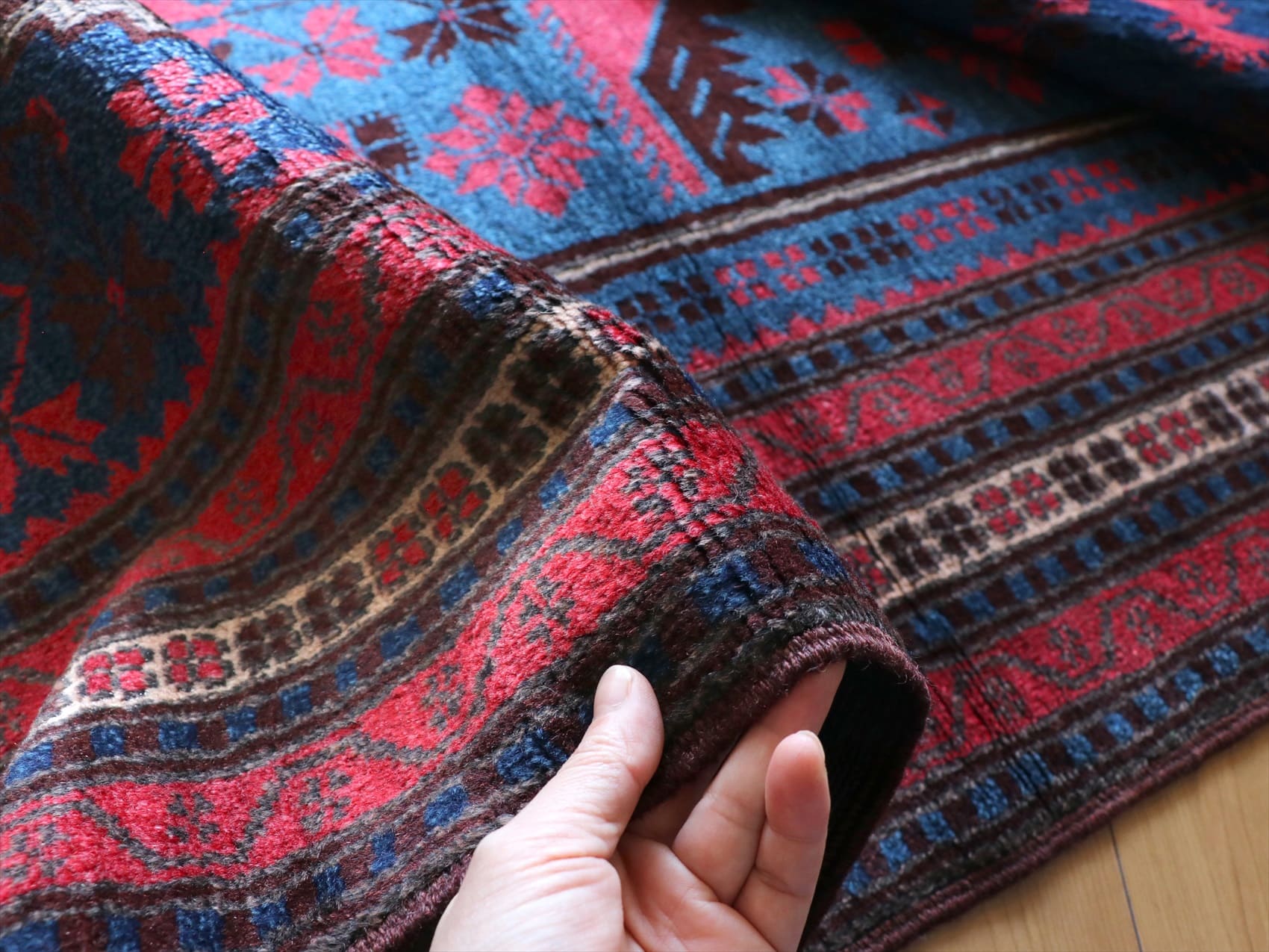 トルコじゅうたん エリアラグ ヤージベディル212×113cm ネイビー&レッド