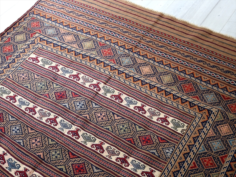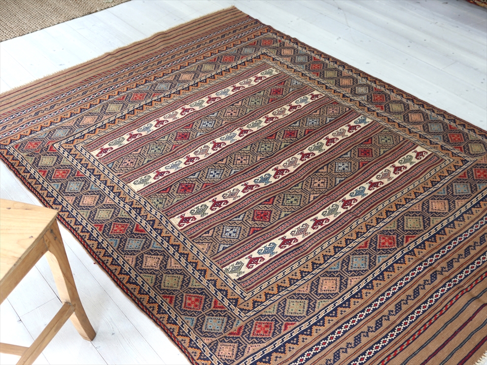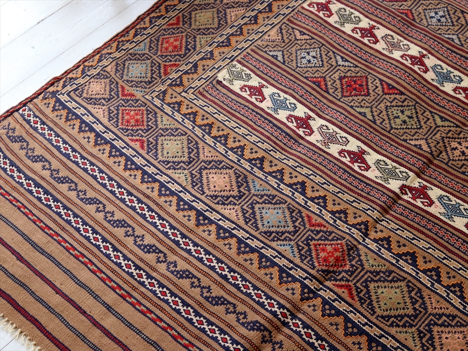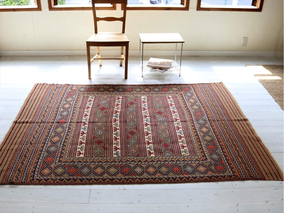 Key:イランキリム,オールドキリム, トライバルラグ, 部族絨毯, 民藝, 平織り, Iranian kilim, Turkish kilim, Tribal rug, Area rug, Handmade, Antique, Collectable, Anatolia, BO-HO, Bohemian, one of kind, アフガニスタン