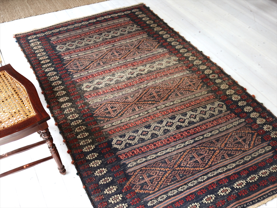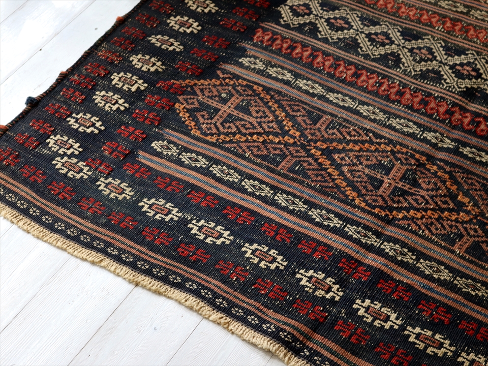 オールドキリム・アフシャール族207×120cm 濃紺と赤/スザンニ織りスマック