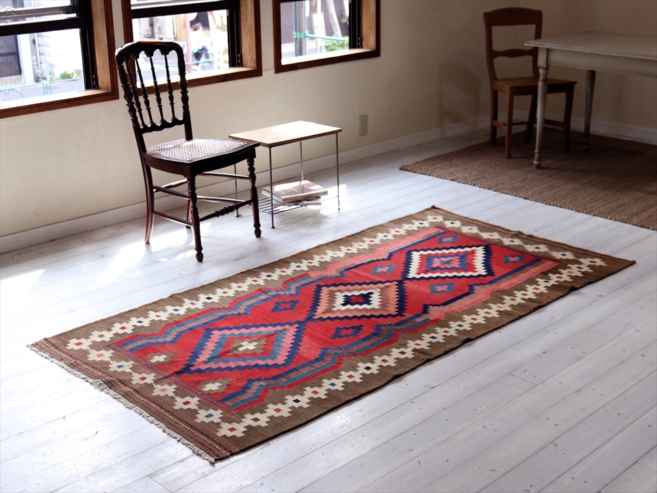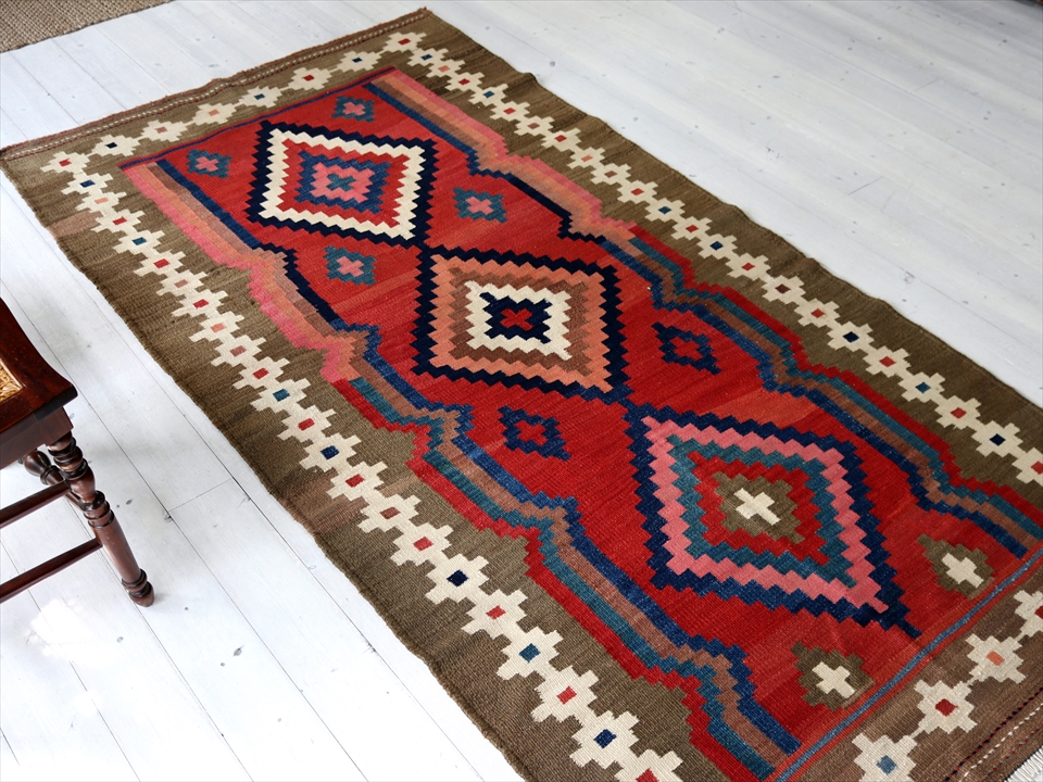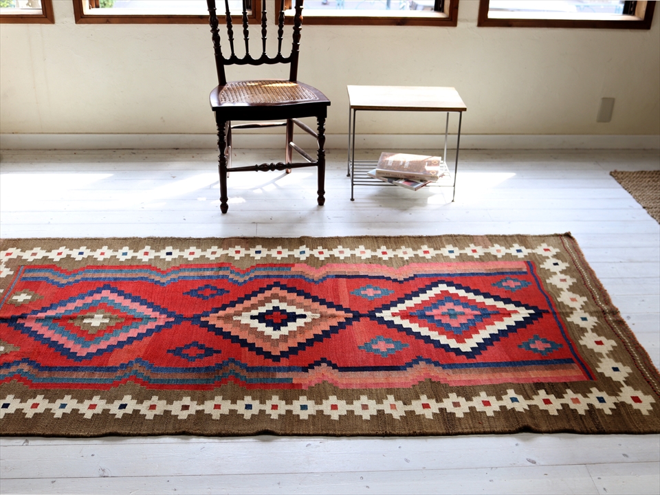 - オールドキリム・シラーズ218×107cm ハムセ連合/ジグザグのひし形 草木染め