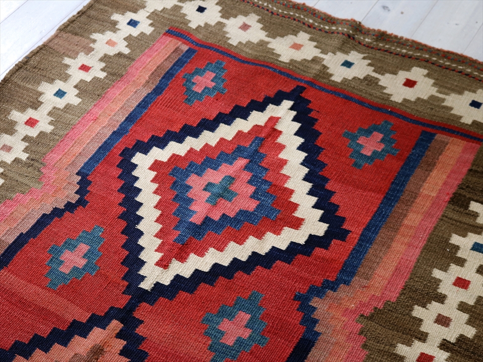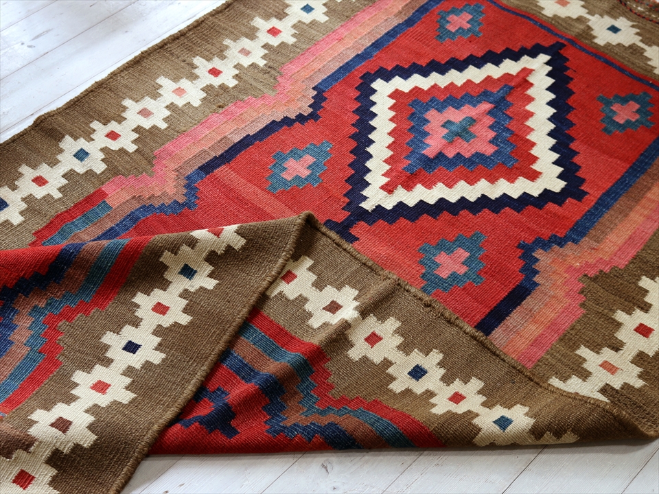 Key:イランキリム,オールドキリム, トライバルラグ, 部族絨毯, 民藝, 平織り, Iranian kilim, Turkish kilim, Tribal rug, Area rug, Handmade, Antique, Collectable, Anatolia, BO-HO, Bohemian, one of kind