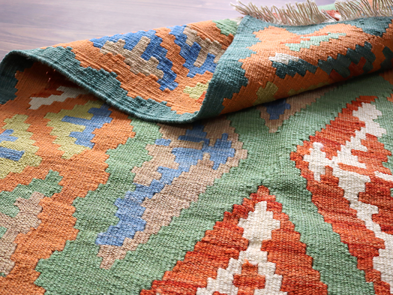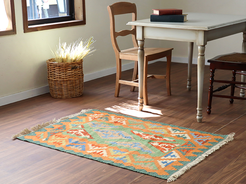 イラン手織りキリム カシュカイキリム117×84cm グリーン&オレンジ