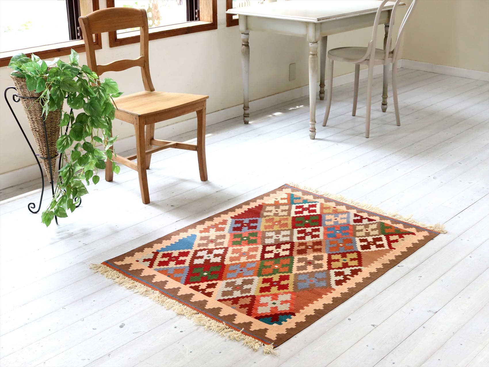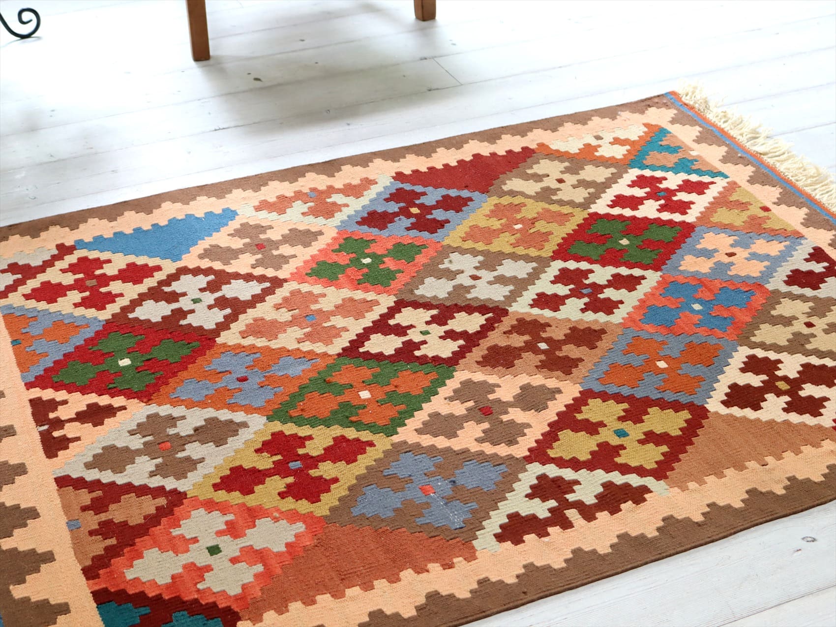 イラン手織りキリム カシュカイキリム115×86cm アクセントラグサイズ
