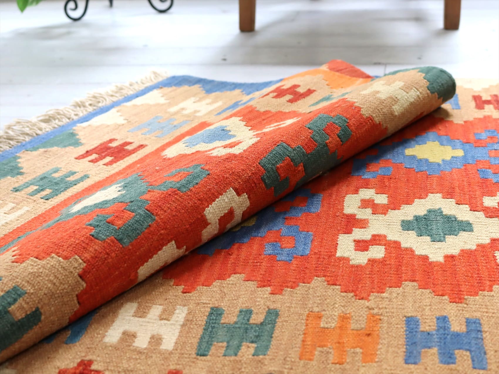 イラン手織りキリム カシュカイキリム125×84cm アクセントラグサイズ