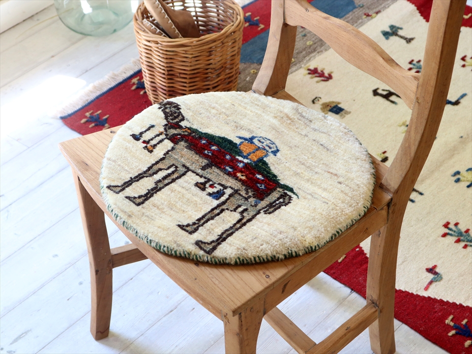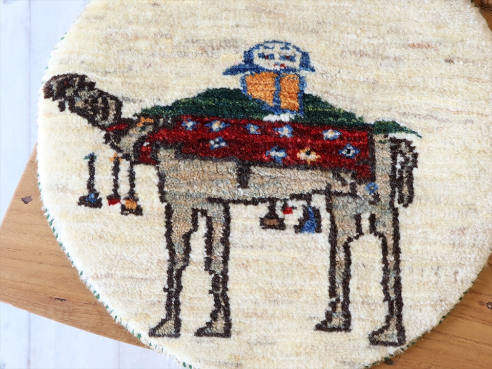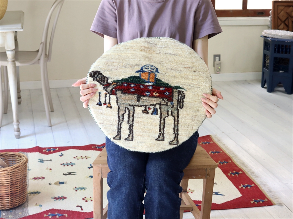 ギャッベ 円形 直径40cm ナチュラルアイボリー ラクダとカシュカイ族