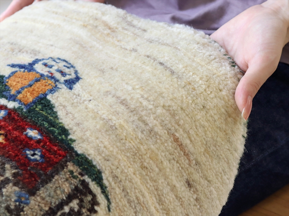 - ギャッベ 円形 直径40cm ナチュラルアイボリー ラクダとカシュカイ族