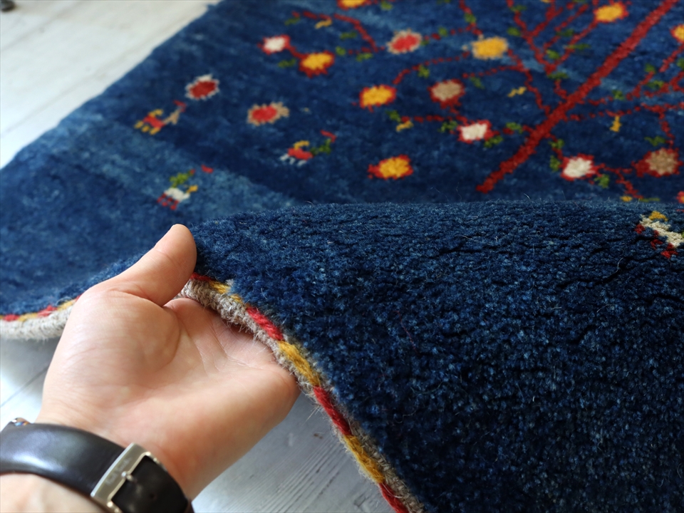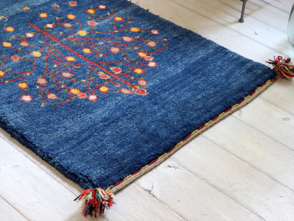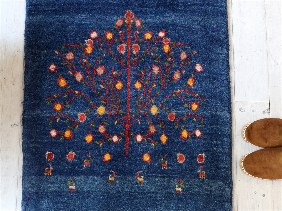 Key:Gabbeh, Shiraz, Carpet, Handmade, Hand weaven, Hand knotted, wool, Natural dye, Shiraz, Quashkai, ギャッベ, ギャベ, カシュカイ族, 細かい, ラグ, 手織り絨毯, ベッドサイド, 玄関マット, タペストリー, 生命の樹, ブルー, ネイビー