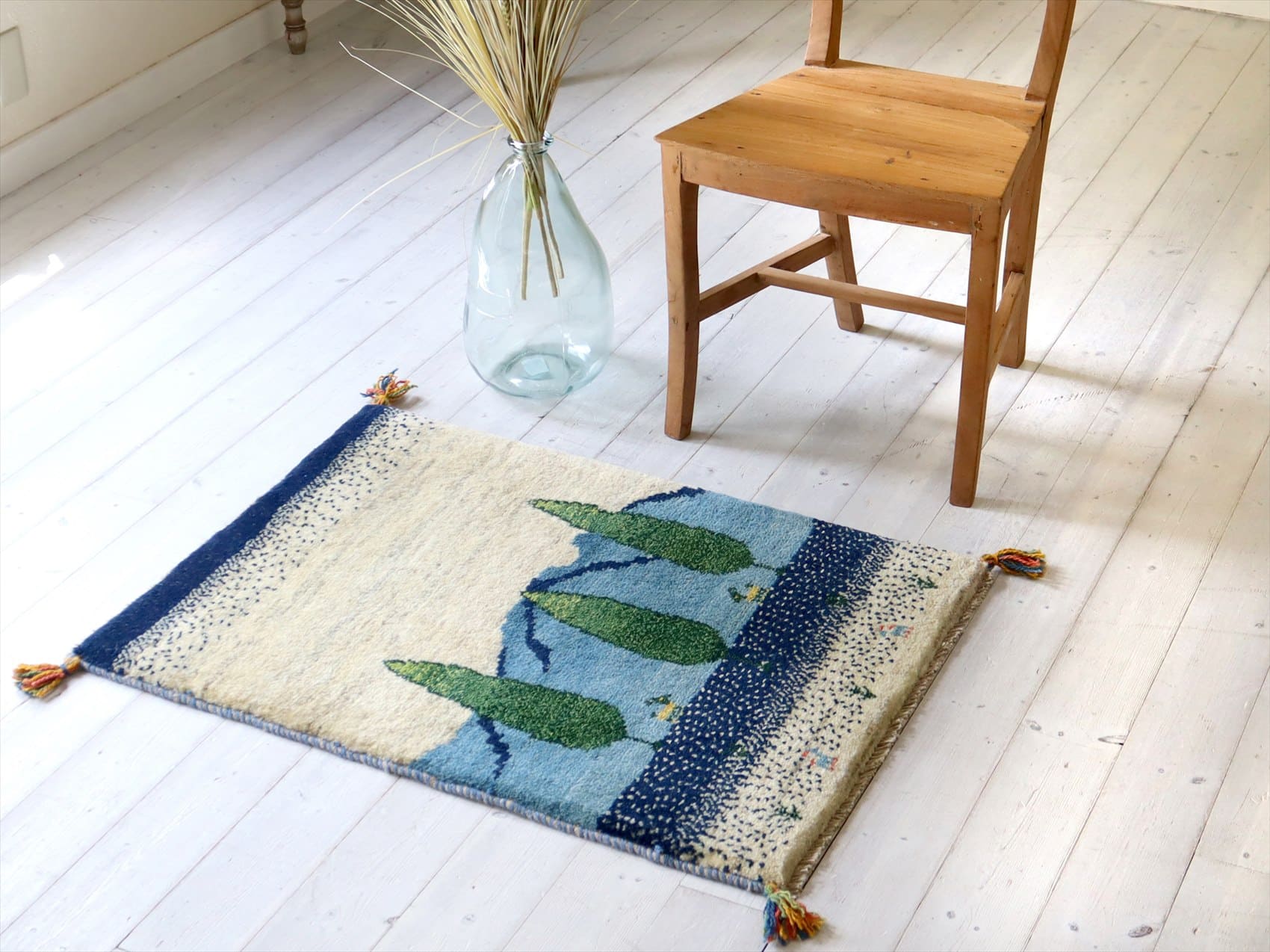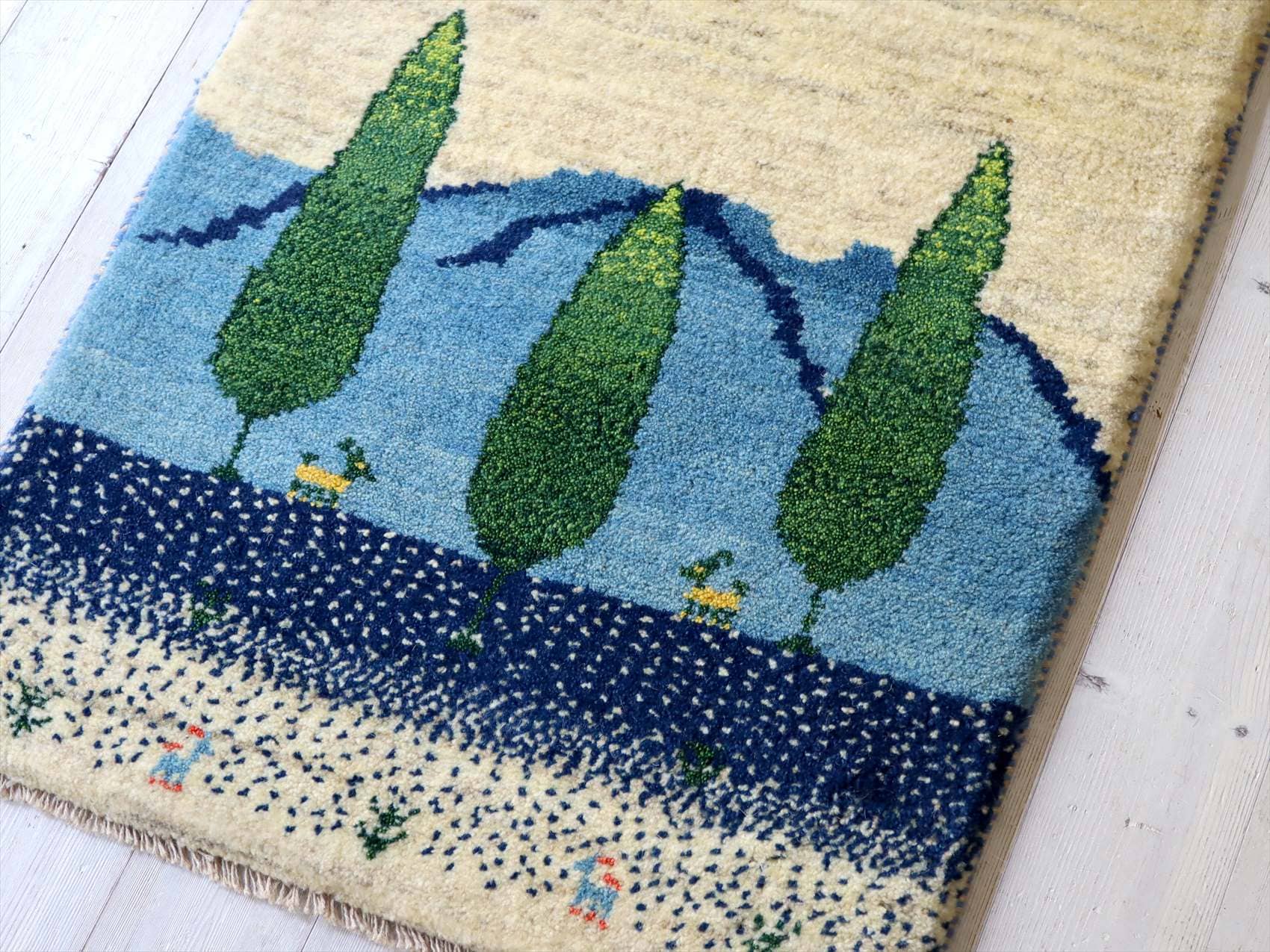 ギャッベ 玄関マット イラン製90×63cm ブルー 自然風景