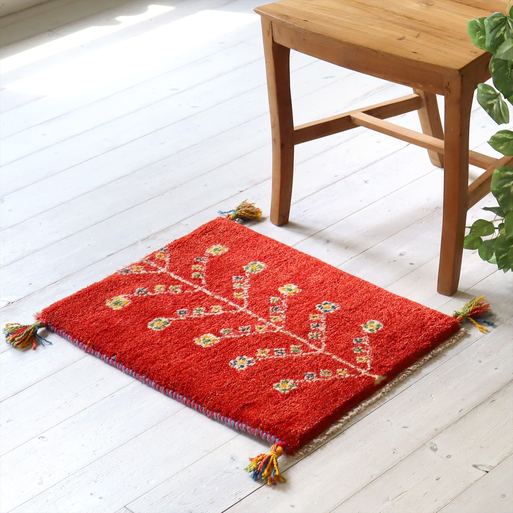 Key:ギャッベ, ギャベ, ラグ, 絨毯, イラン, シラーズ, ペルシャ, バザールギャッベ, ポンポン, 手織り, 一点もの, 玄関マット, レッド