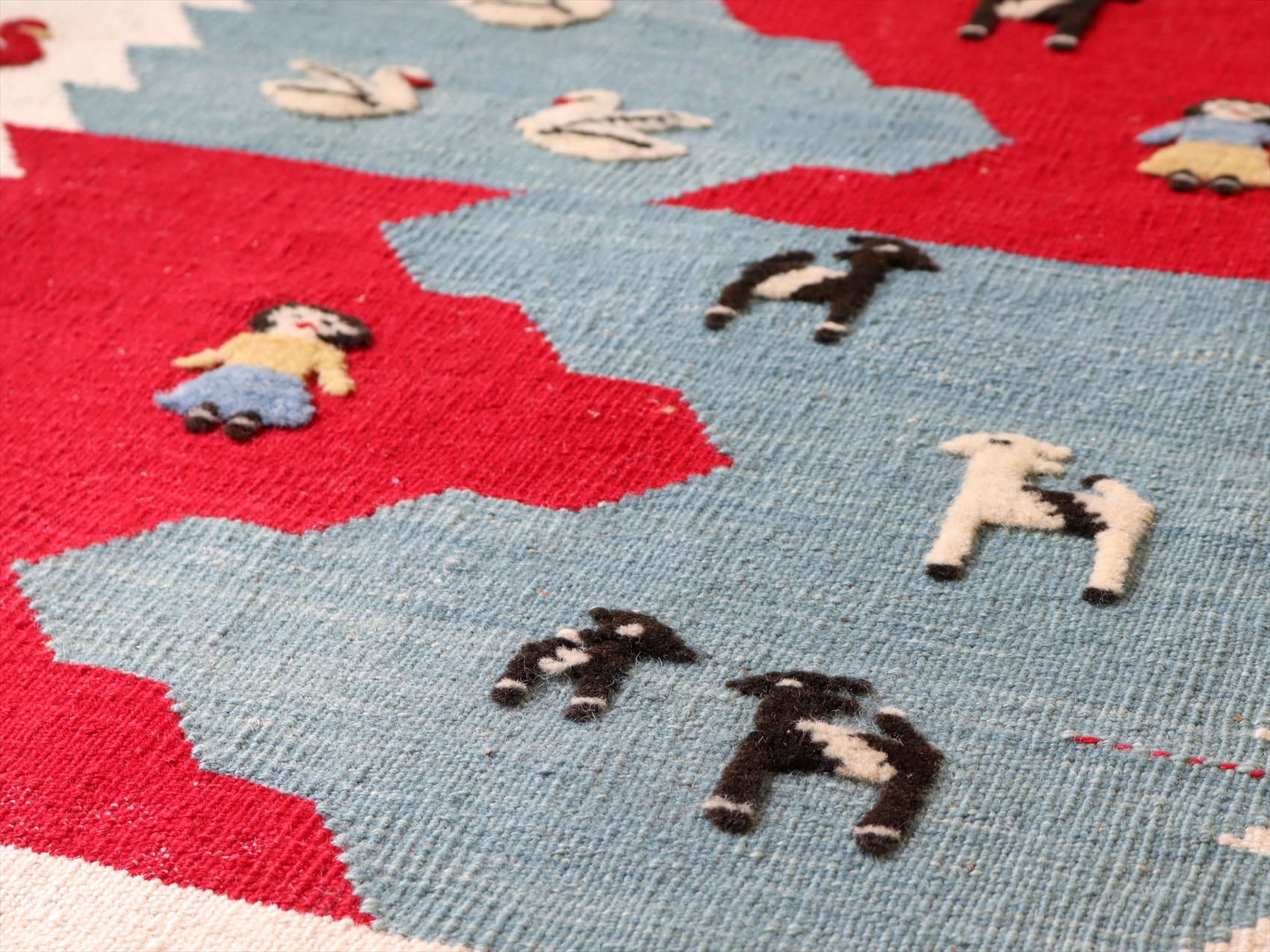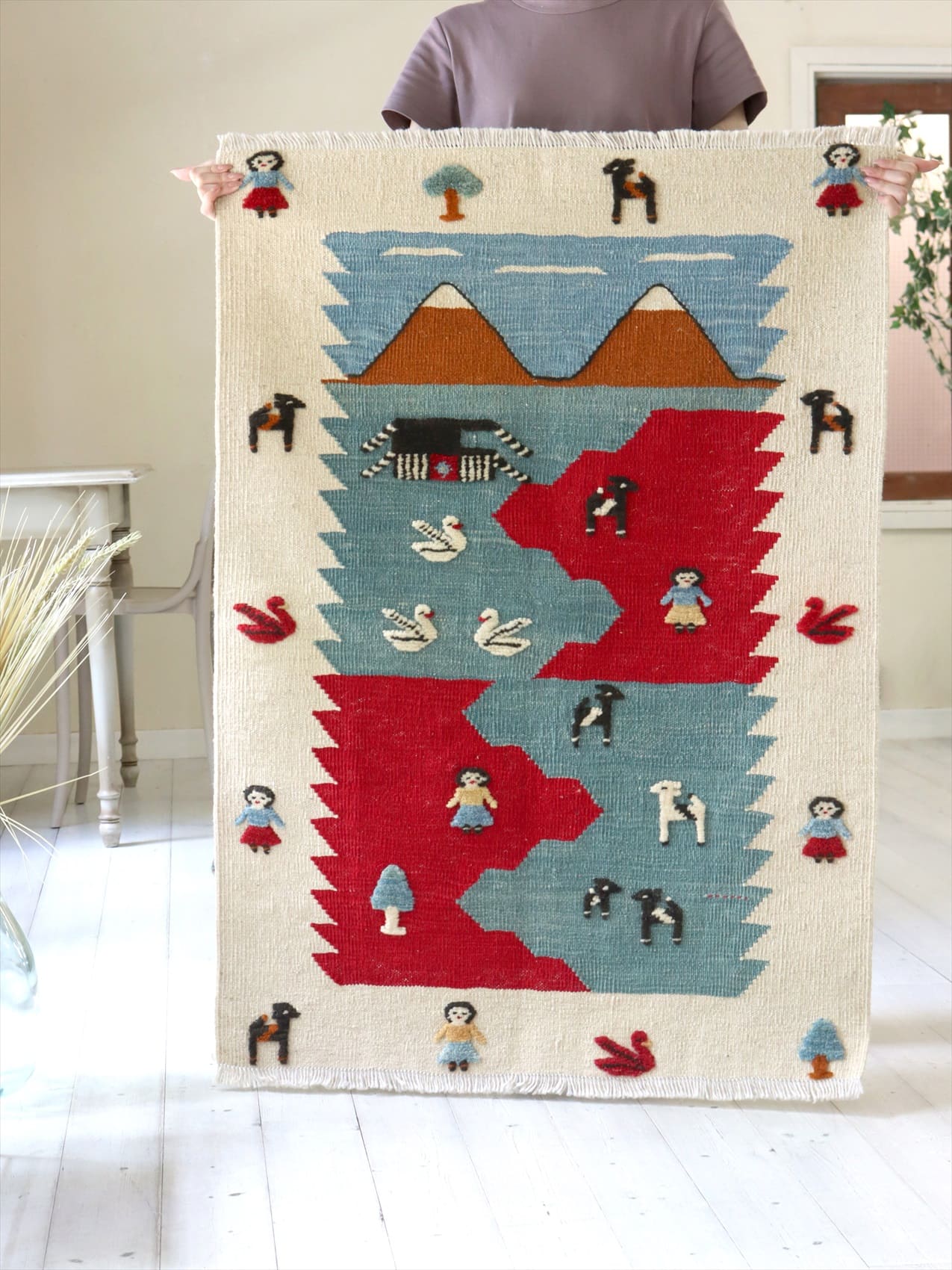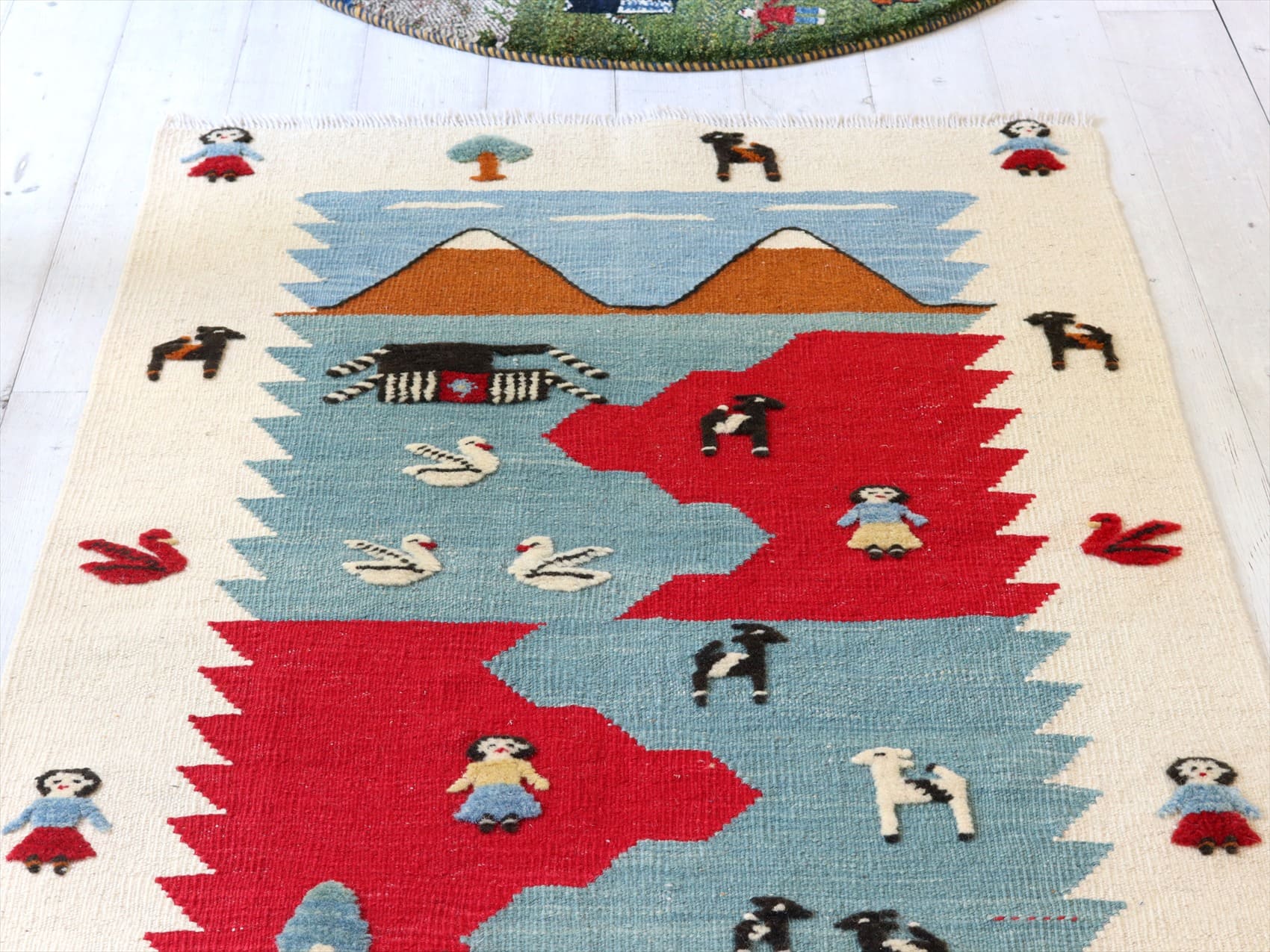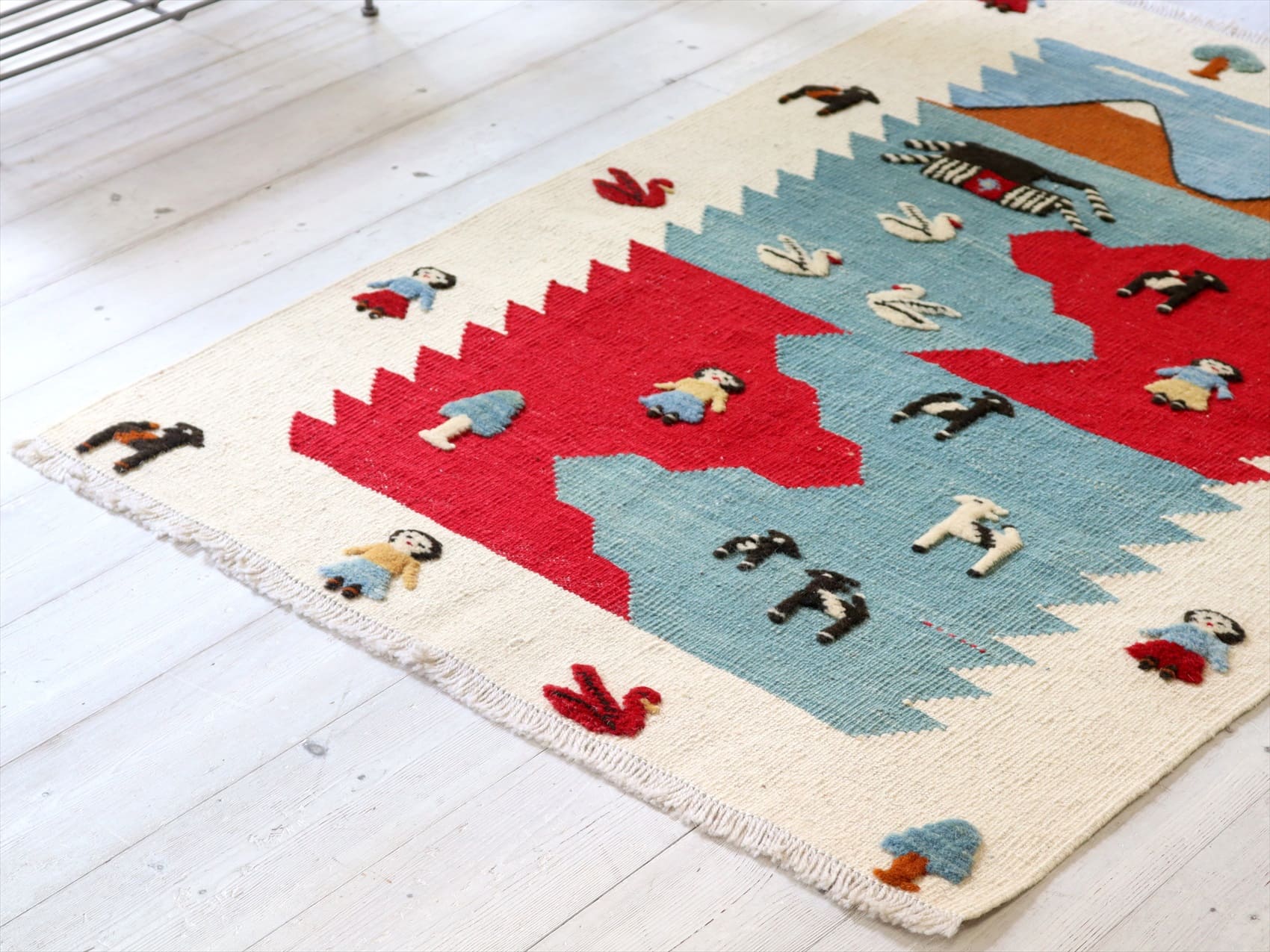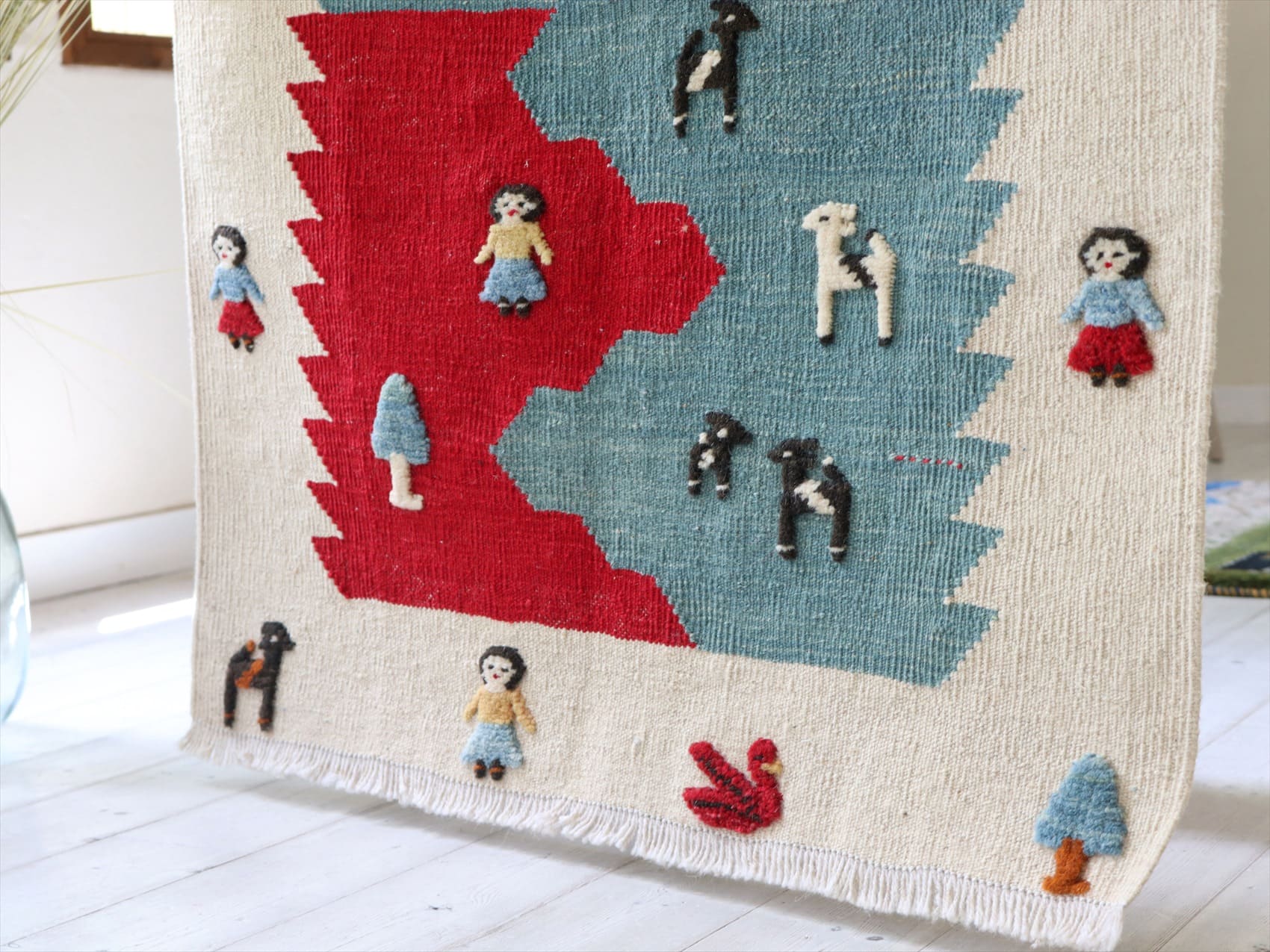ギャッベキリム 遊牧民の織る風景のラグ110×80cm 女の子と動物
