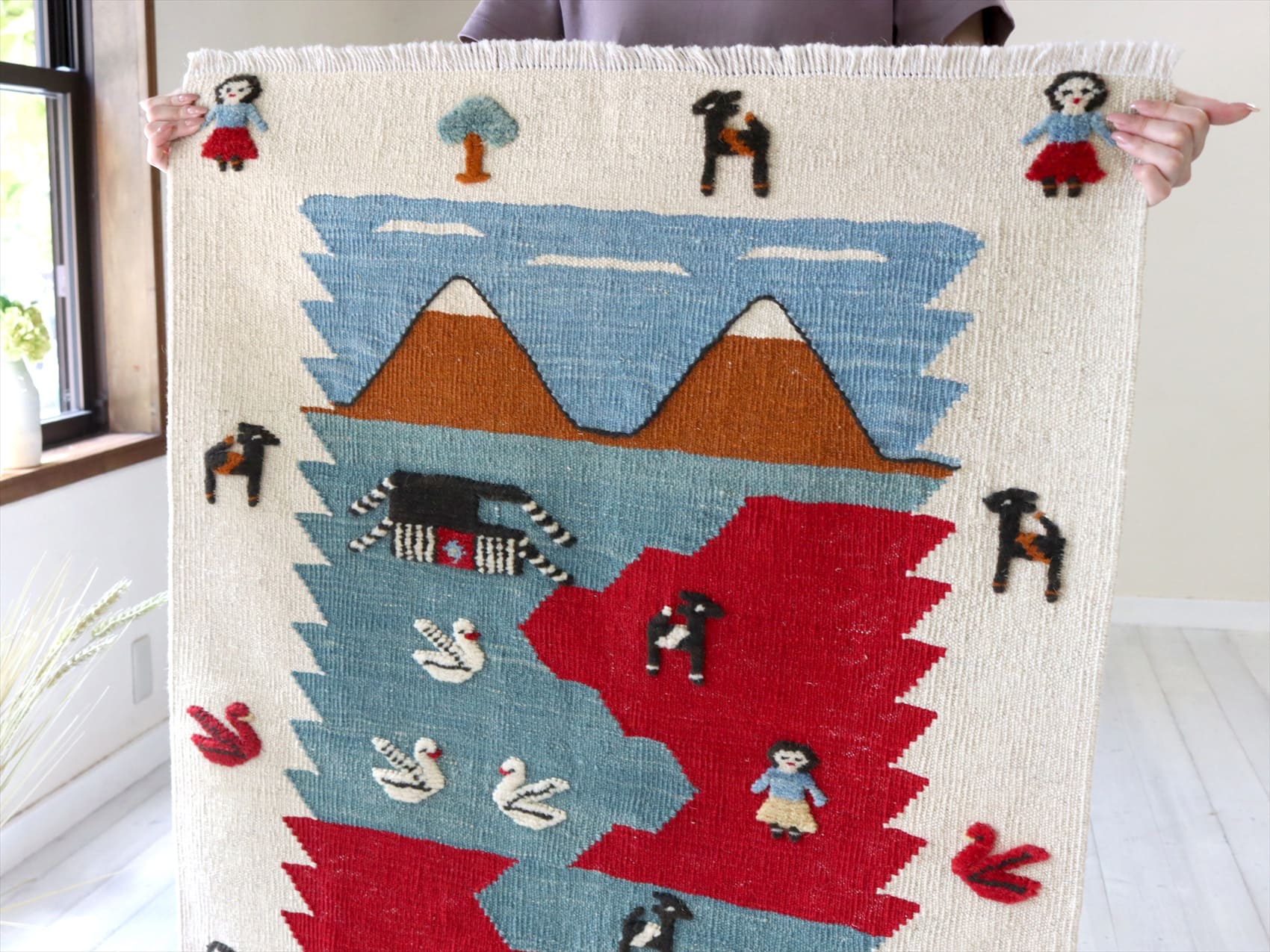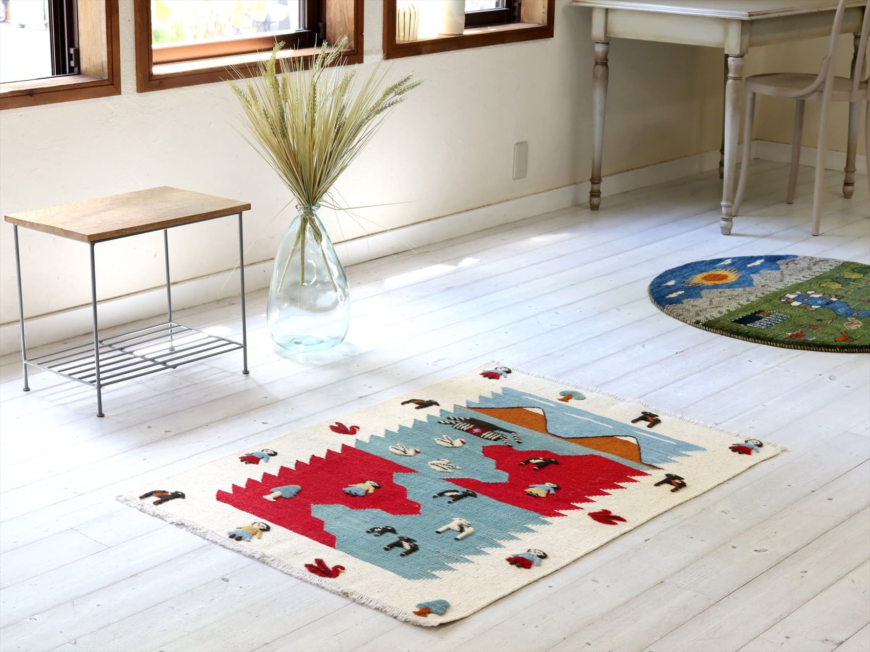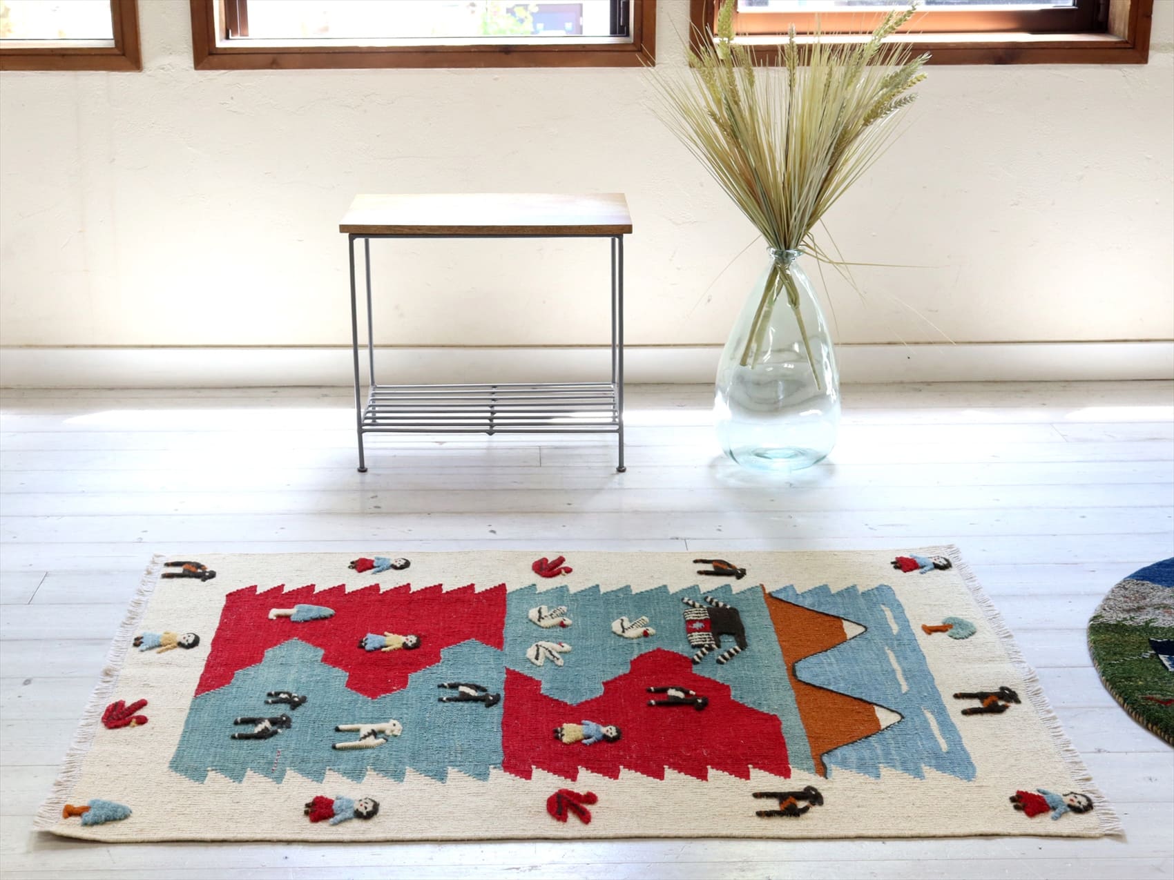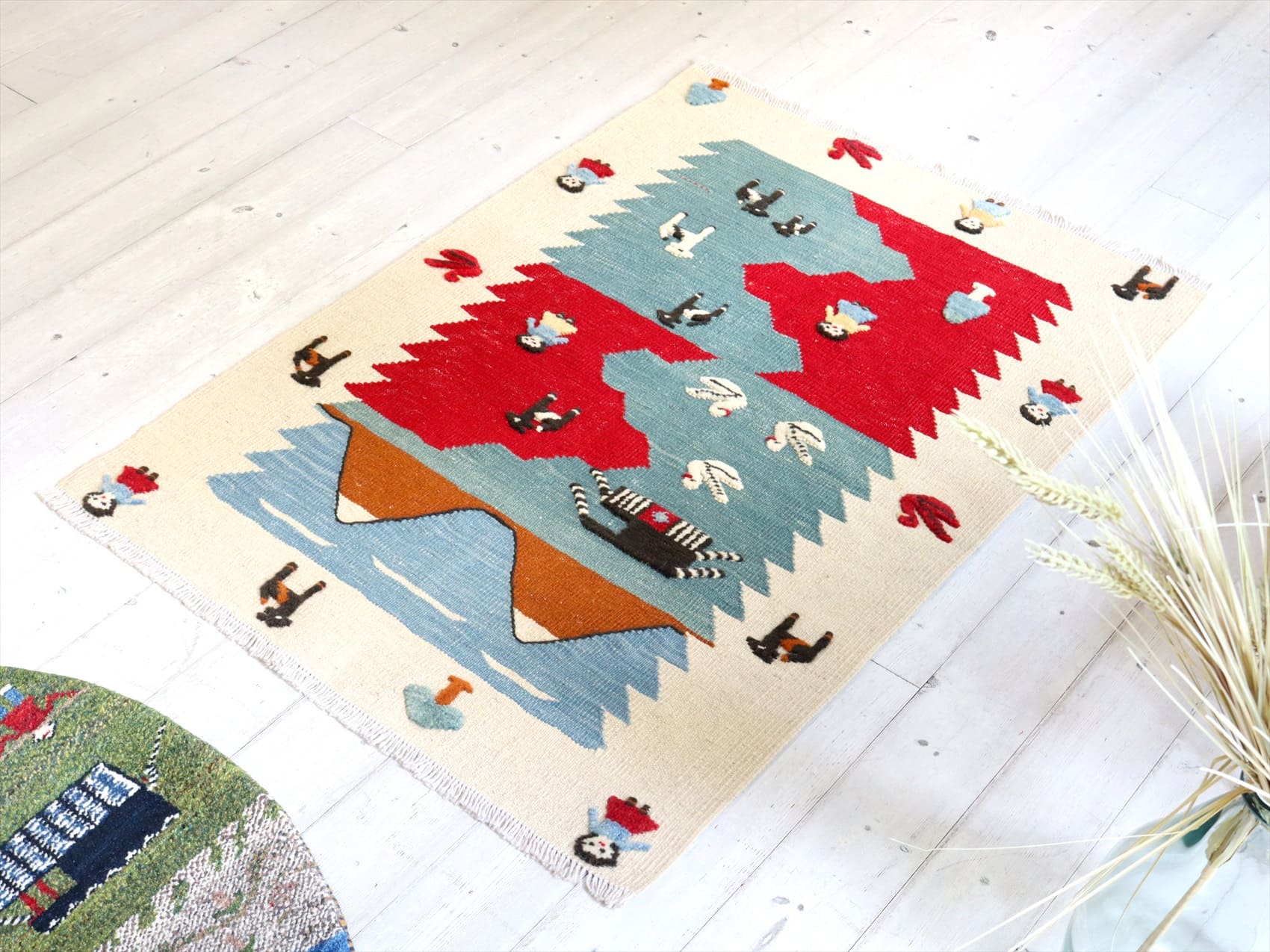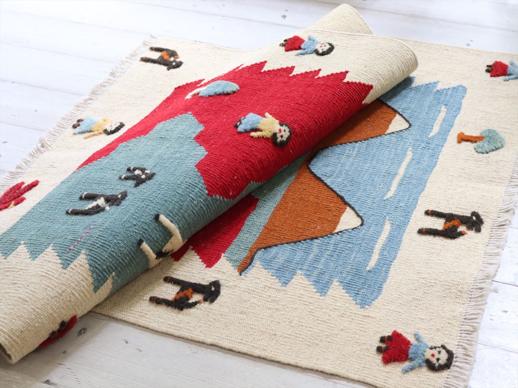 ギャッベキリム 遊牧民の織る風景のラグ110×80cm 女の子と動物