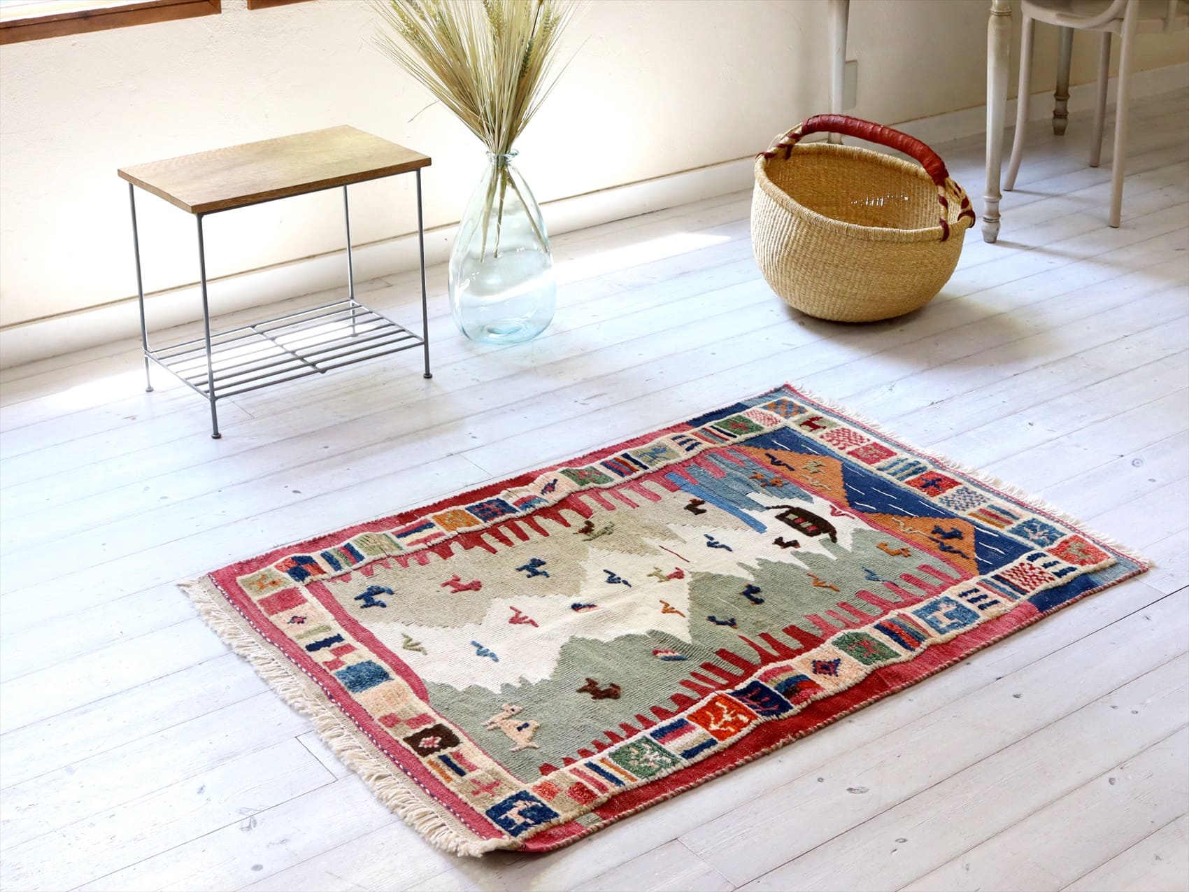 - ギャッベキリム 遊牧民の織る風景のラグ116×81cm ザクロス山麓の草原