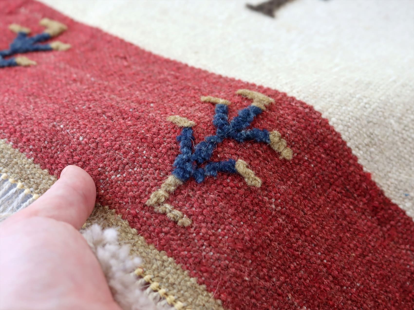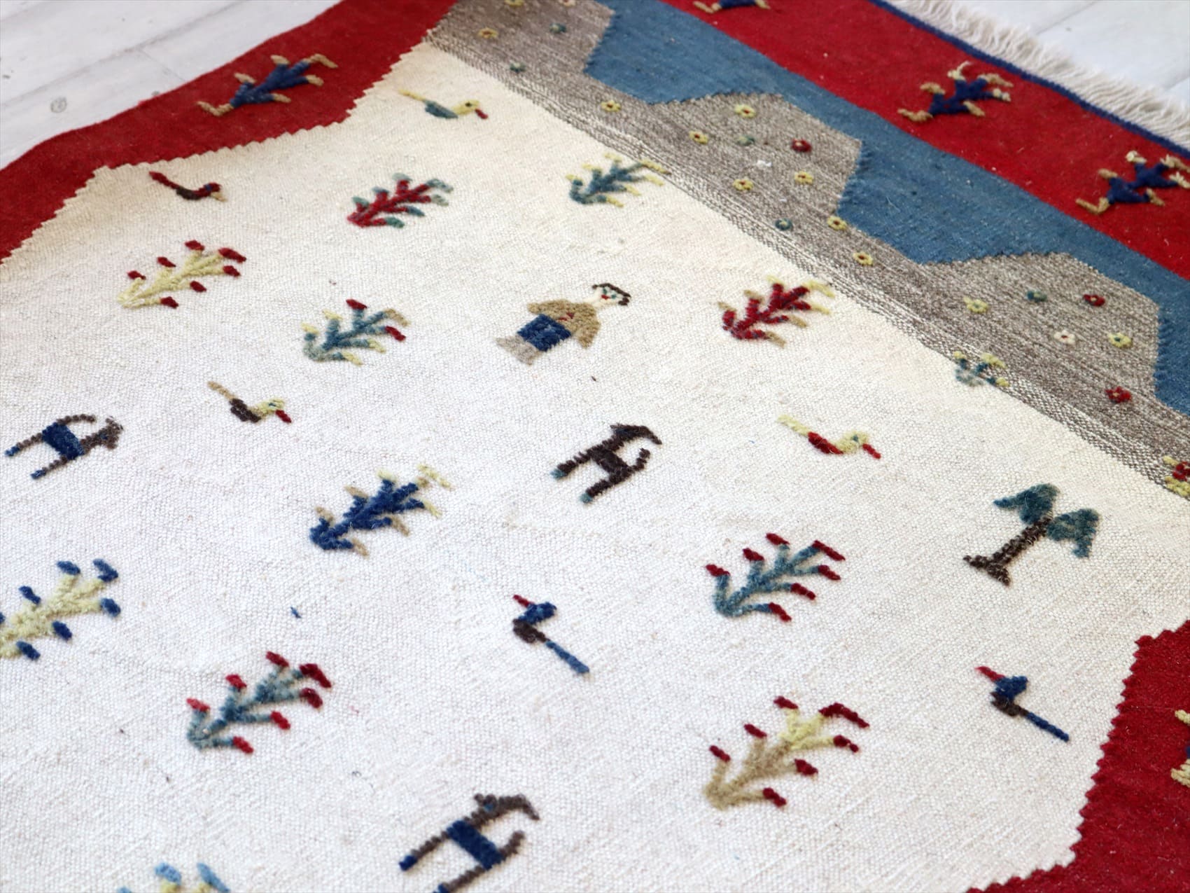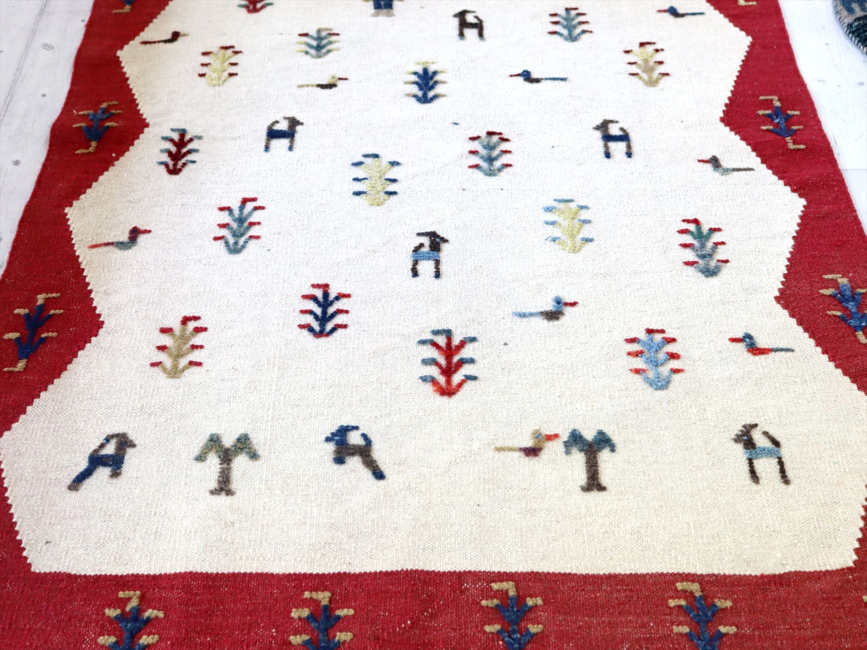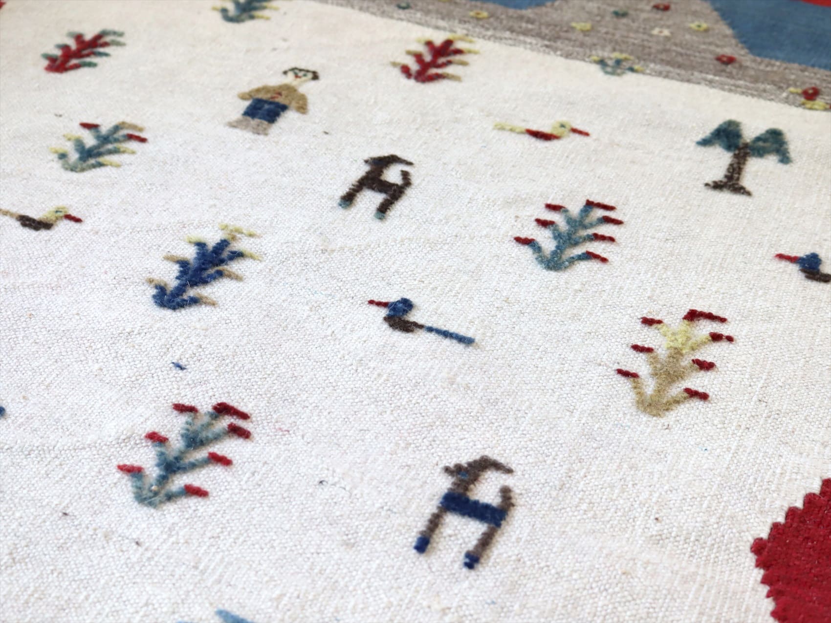 - ギャッベキリム 遊牧民の織る風景のラグ144×95cm 樹々と動物